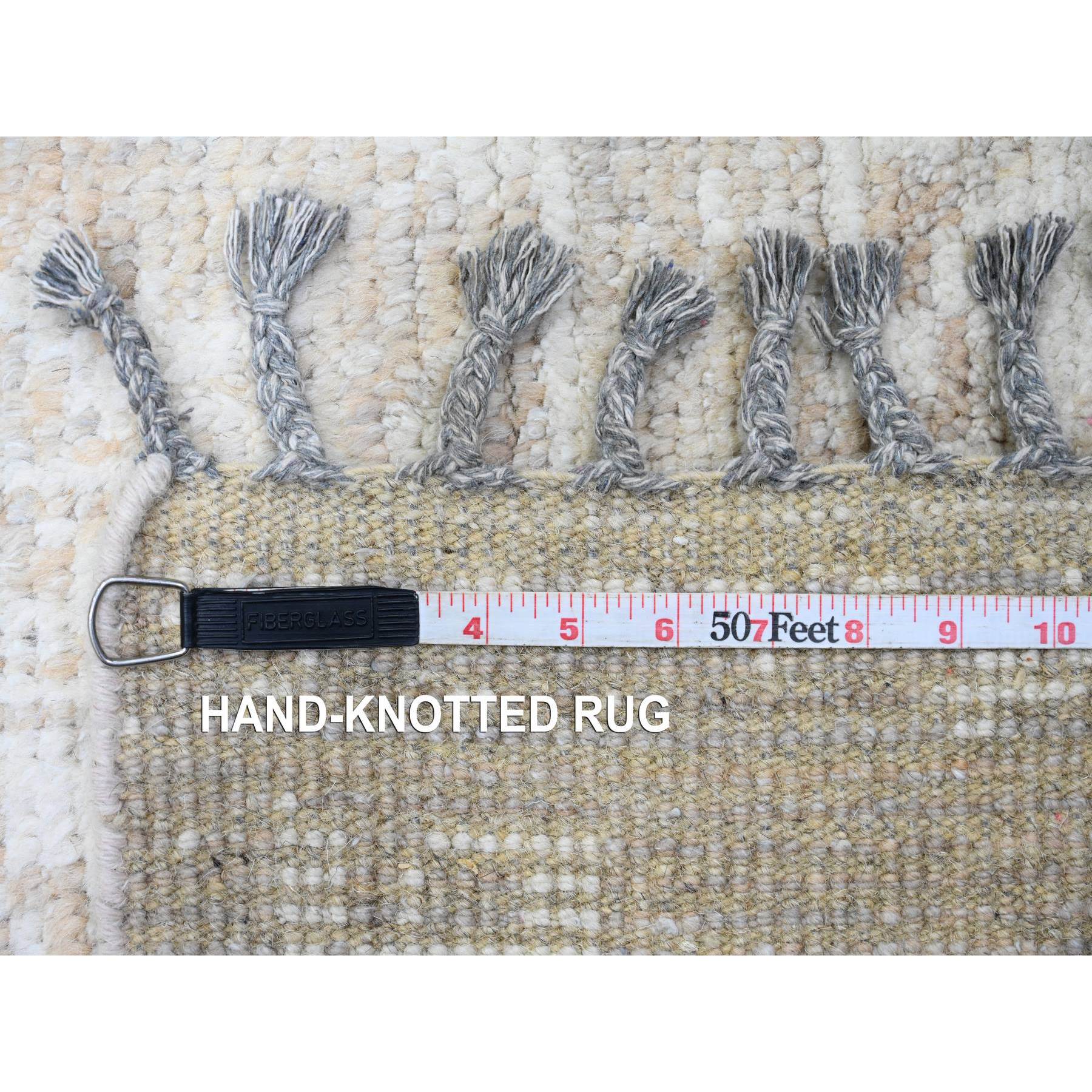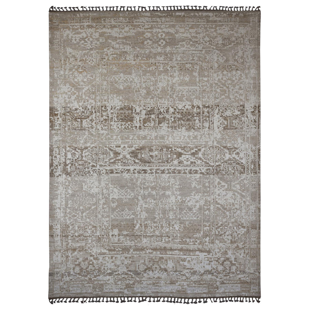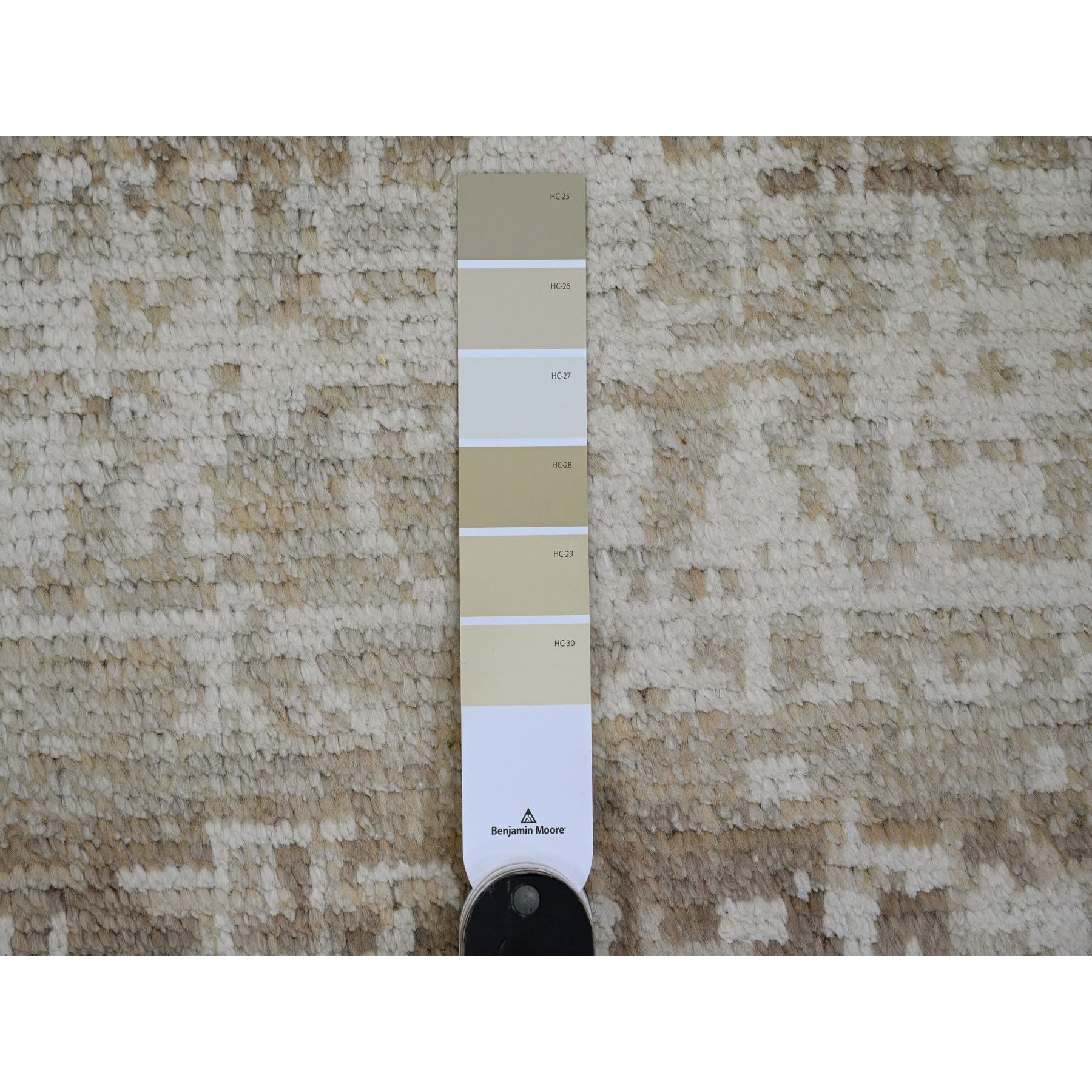 9'1"x12'5" Dark Vanilla Brown, Moroccan Weave With Erased And Broken Pattern, Abrash, Hand Knotted, Pure Wool, Oriental Rug FWR120474