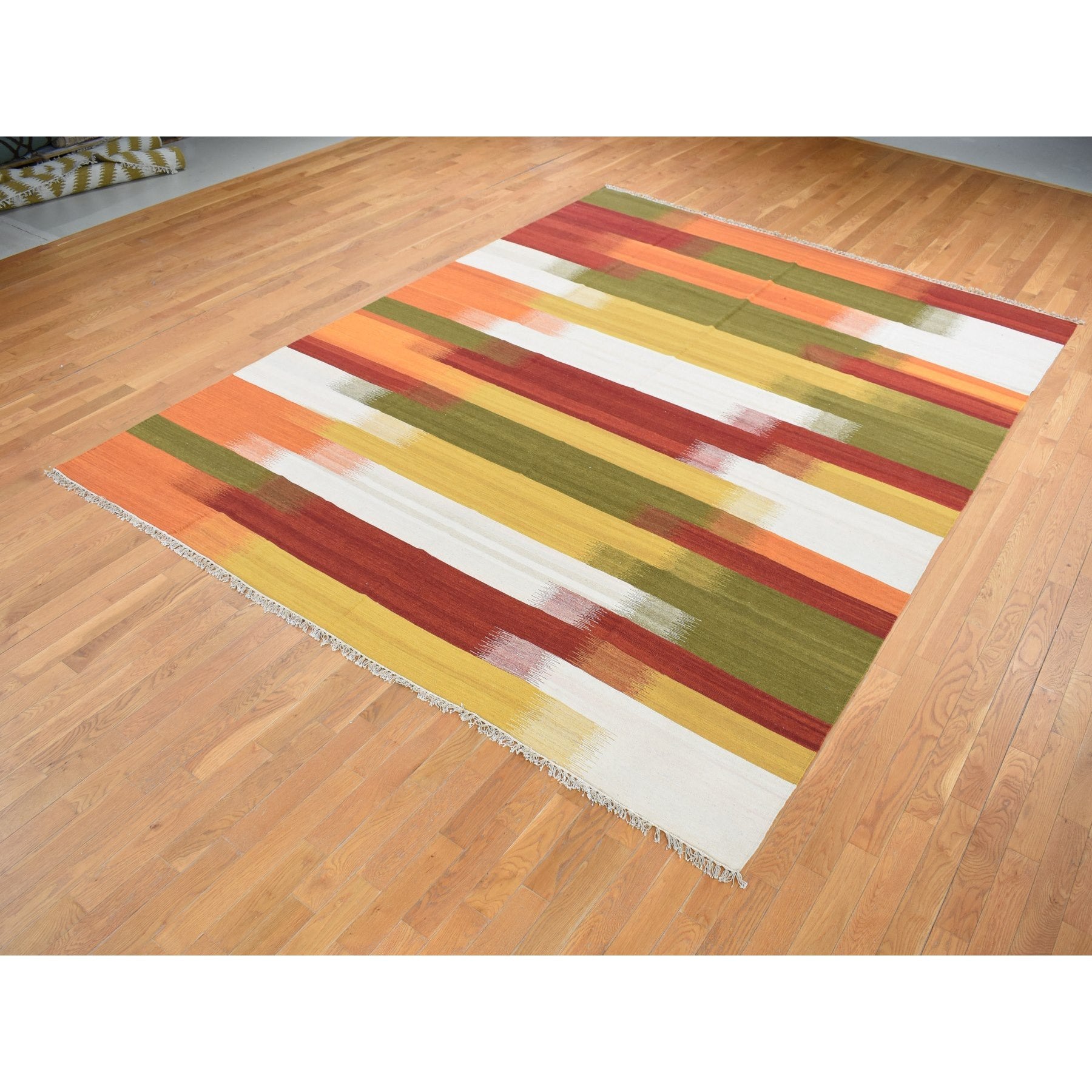 9'1"x12'6" Ivory, Hand Woven, Flat Weave Durie Kilim, Dazzling Design, 100% Wool, Oriental Rug FWR527268