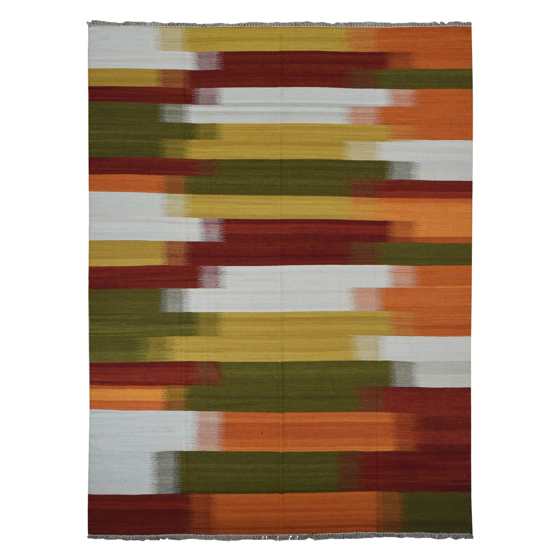 9'1"x12'6" Ivory, Hand Woven, Flat Weave Durie Kilim, Dazzling Design, 100% Wool, Oriental Rug FWR527454