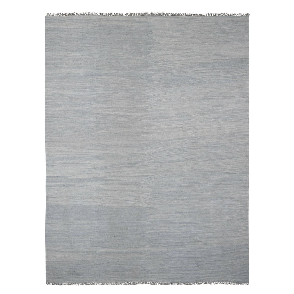 9'1"x12' Beau Blue, Flat Weave, Solid Design, Hand Woven, Afghan Kilim, Hand Spun Wool, Vegetable Dyes, Oriental Rug FWR125706
