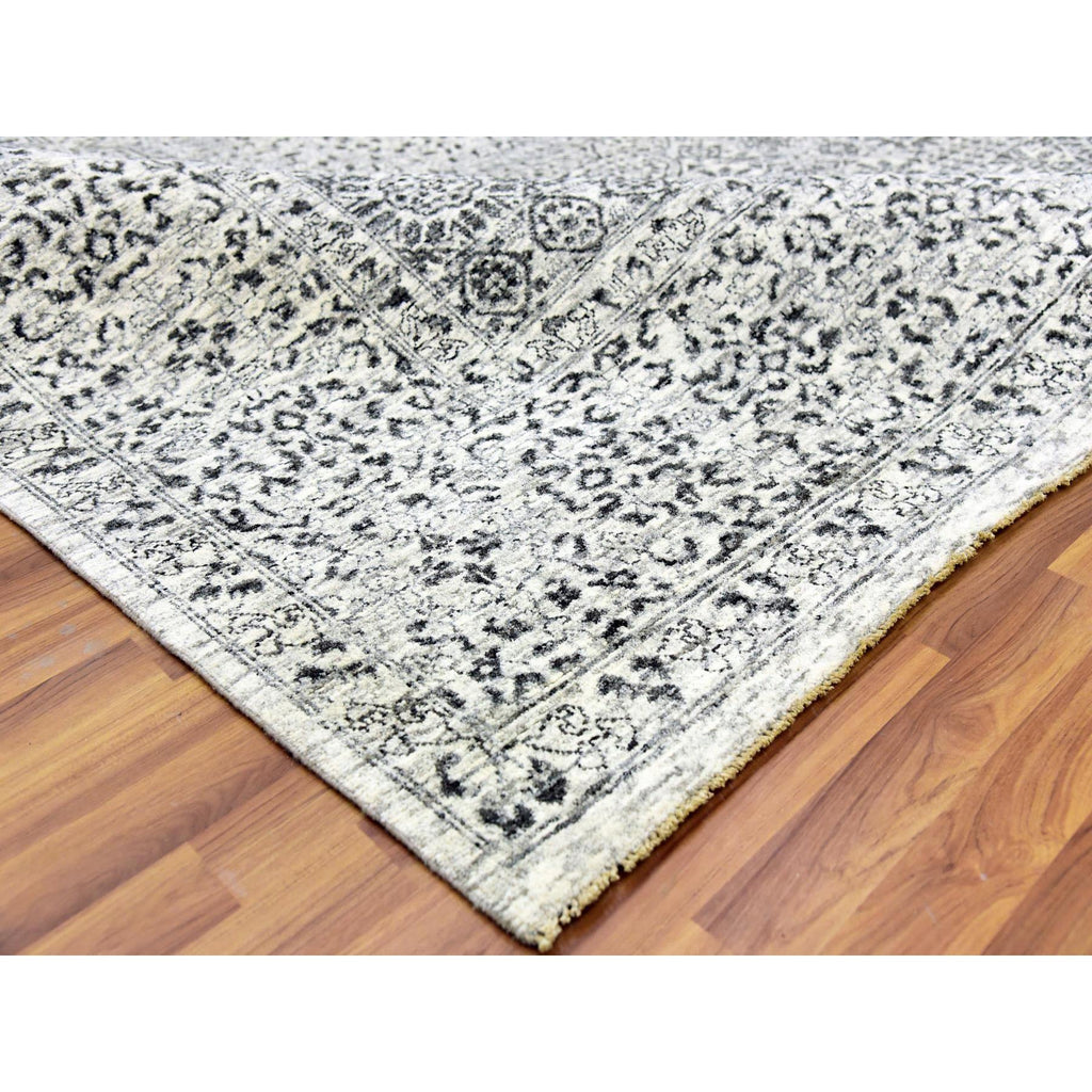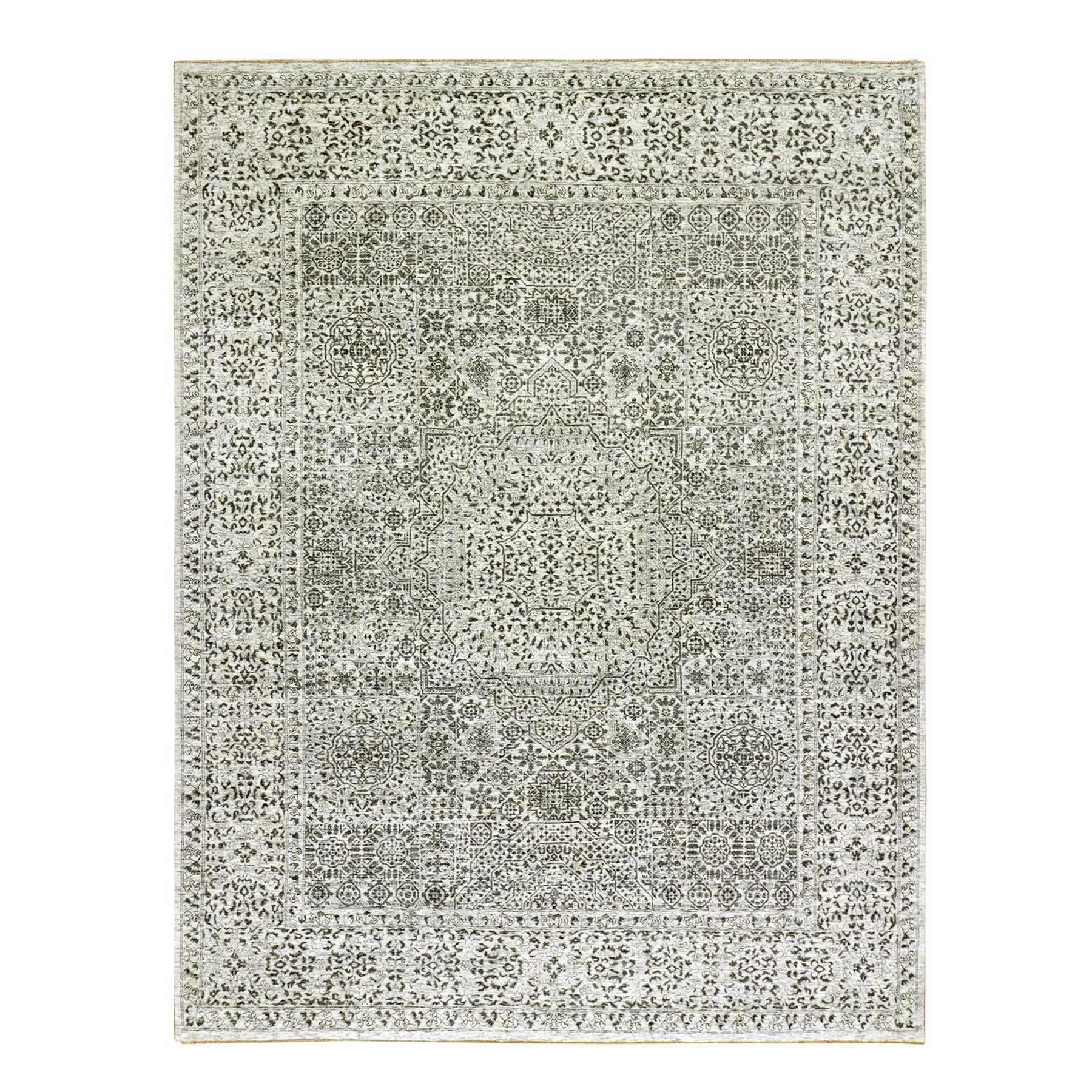 9'1"x12' Egg Shell White, Mamluk Dynasty, Tone On Tone Design, Undyed Shiny Wool, Hand Knotted, Oriental Rug FWR478074