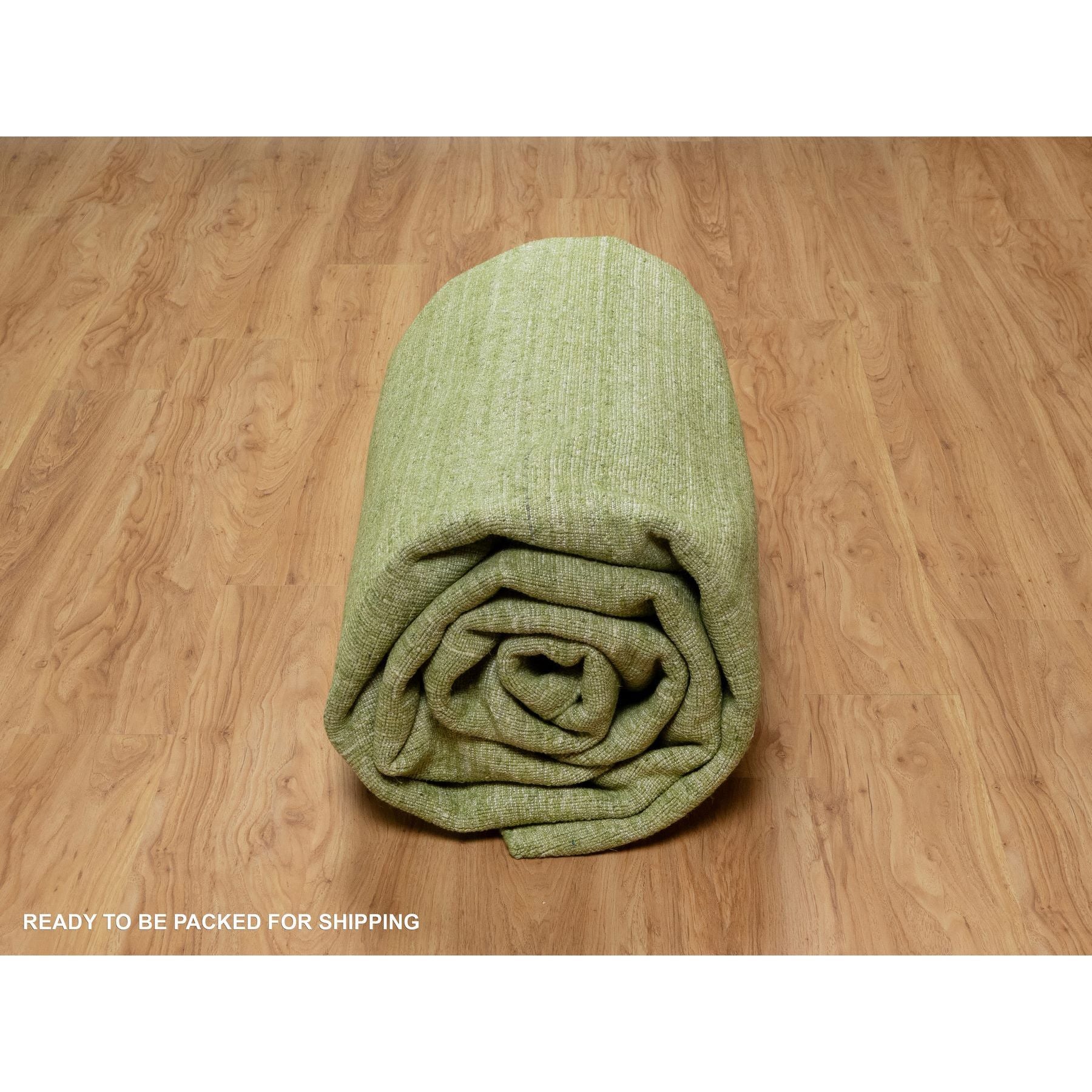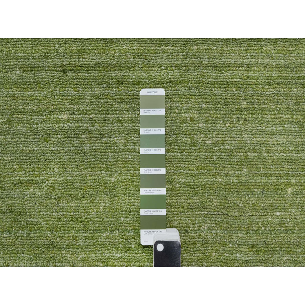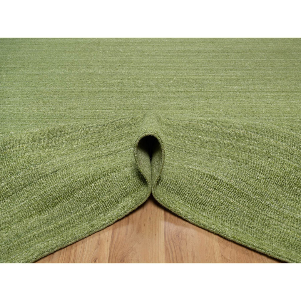 9'1"x12' Grasshopper Green, Soft Pile, Plain Modern Striae Design, Tone On Tone, Pure Wool, Hand Loomed, Oriental Rug FWR547134