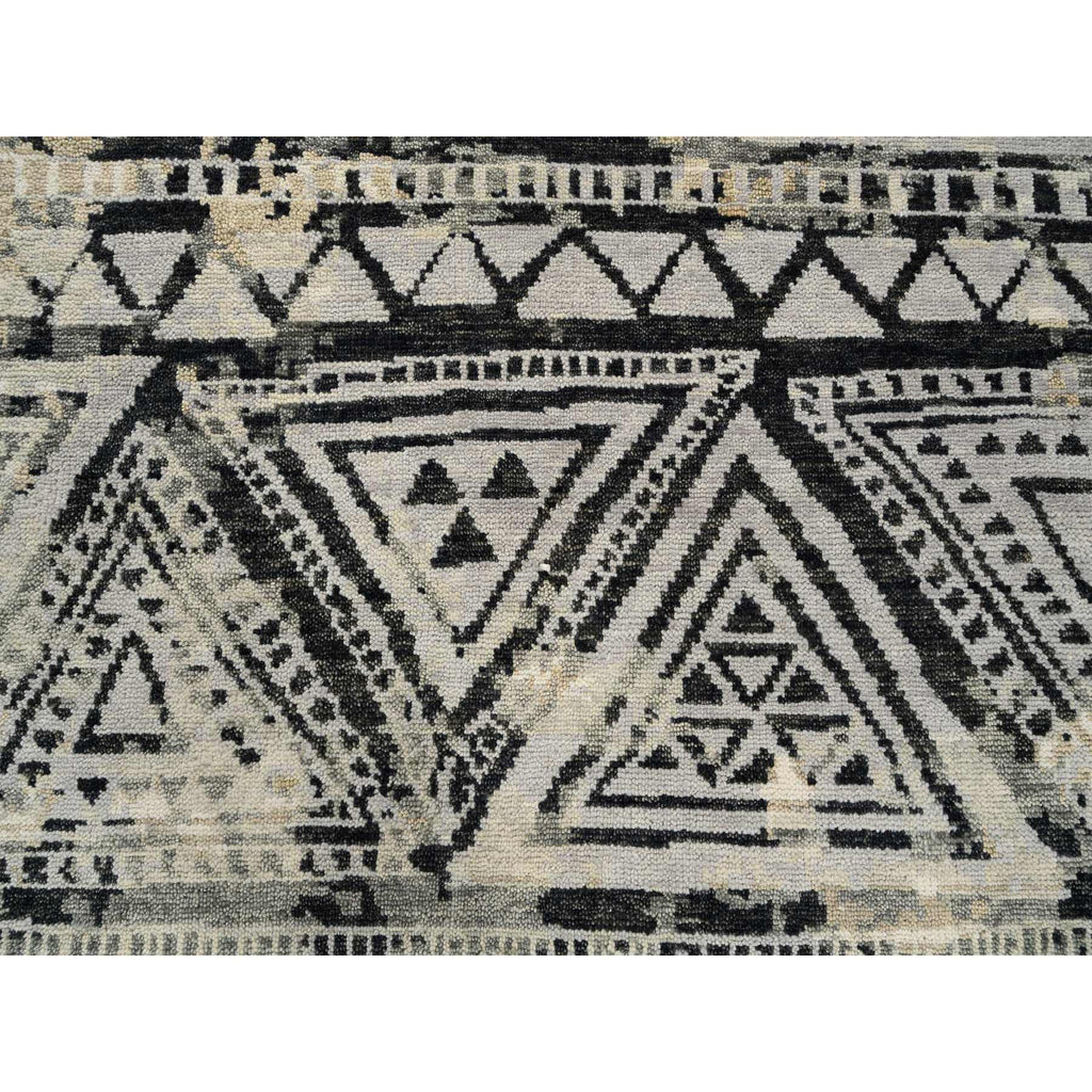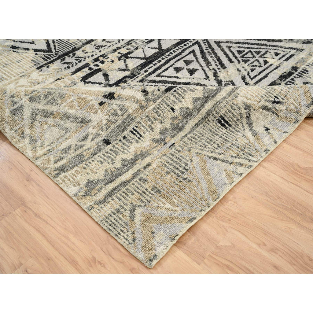 9'1"x12' Gray, Supple Collection Erased Ethnic Geometric Design, Pure Wool Thick And Plush Hand Knotted, Oriental Rug FWR383250