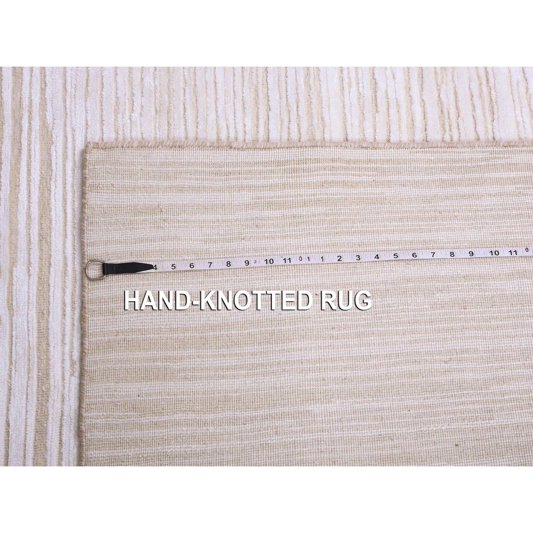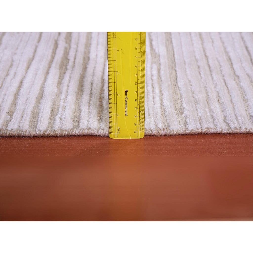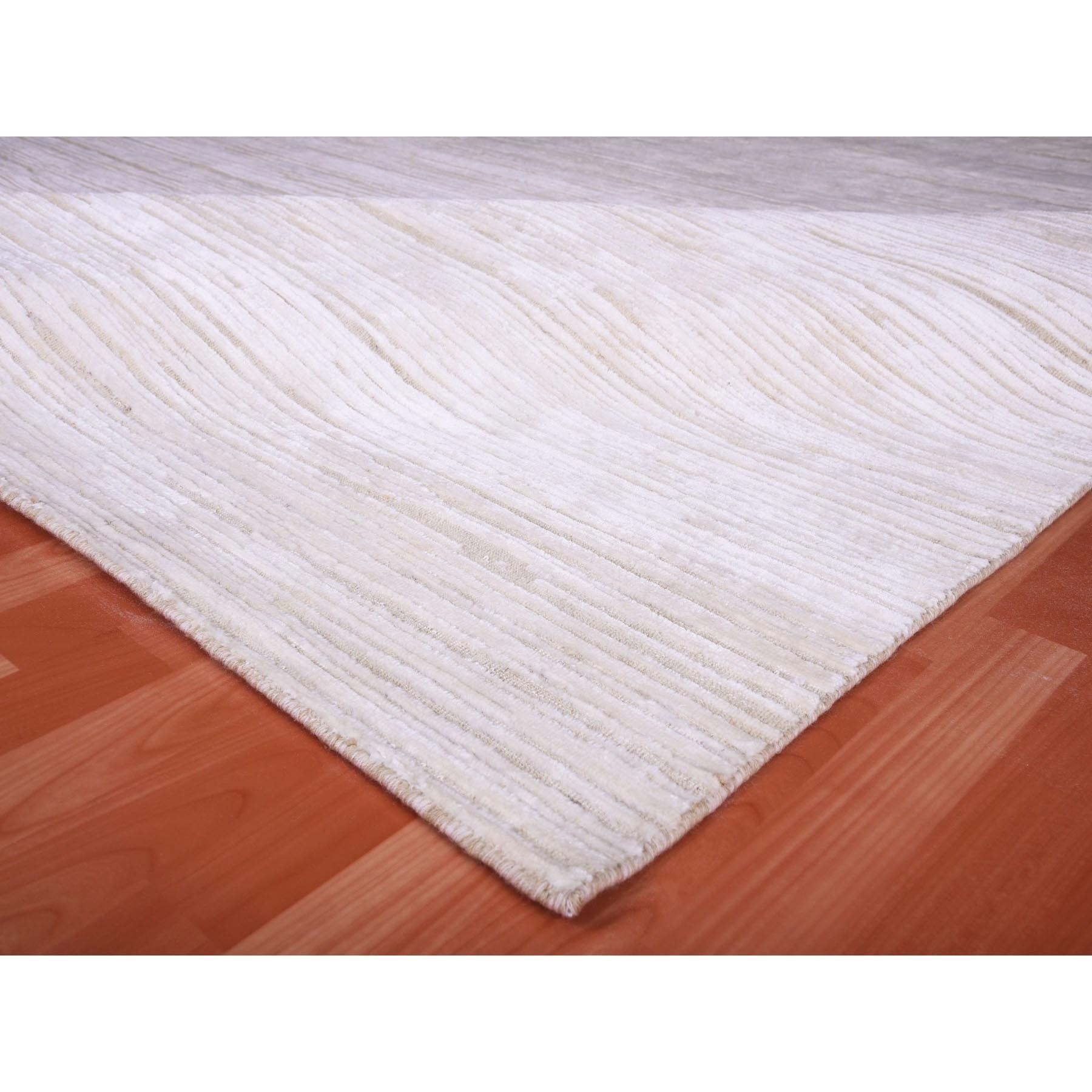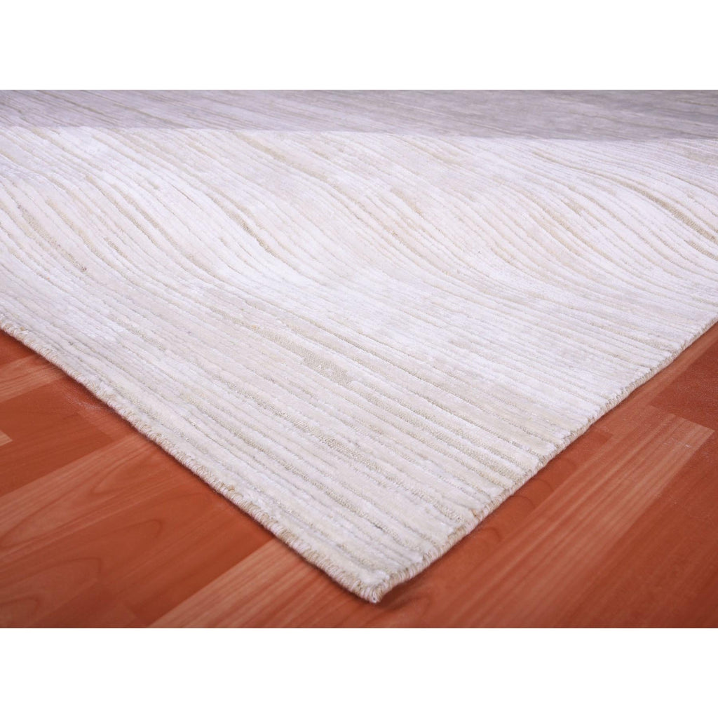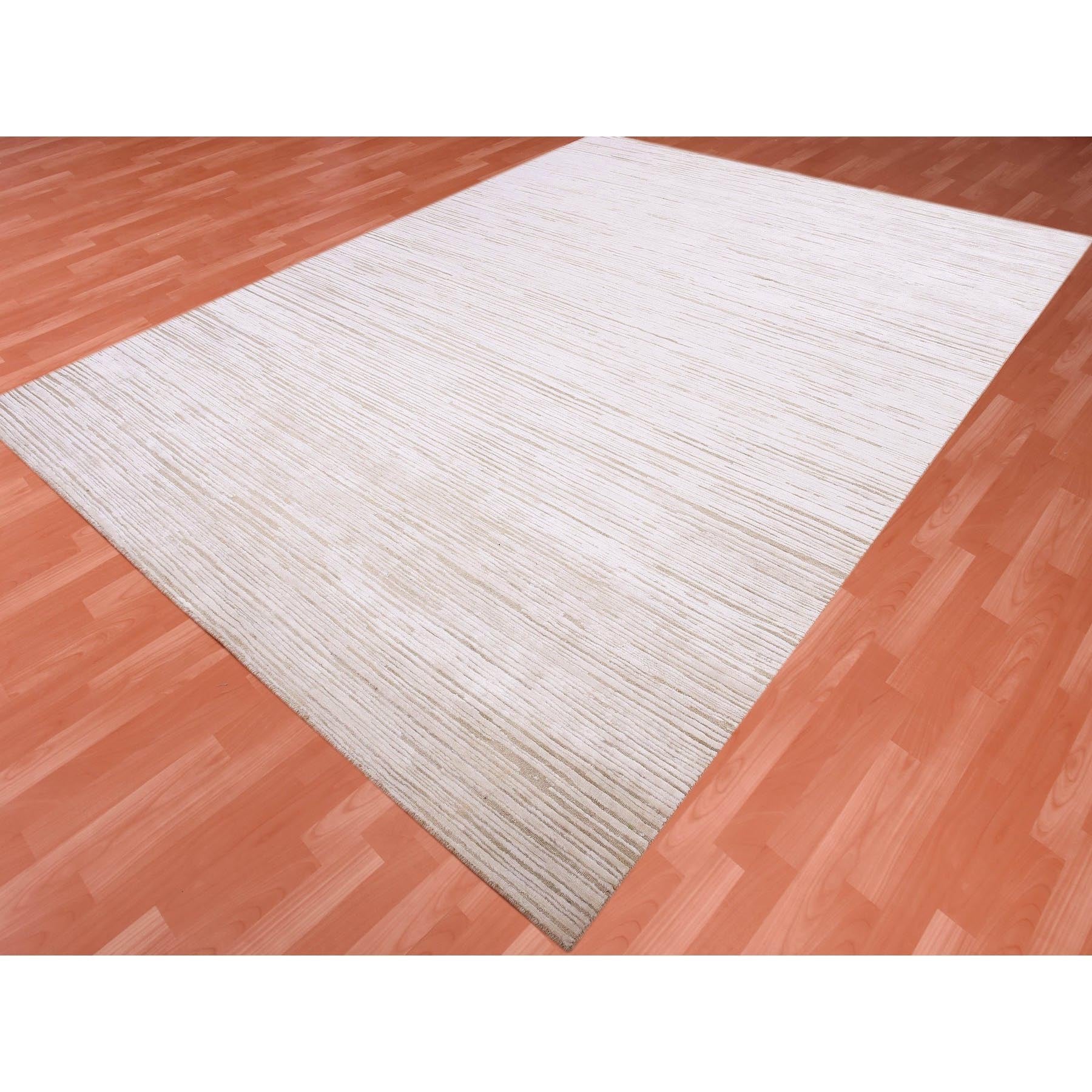 9'1"x12' Ivory, Striae Design Hi-low Pile, Tone On Tone Silk With Textured Wool Hand Knotted, Oriental Rug FWR450228