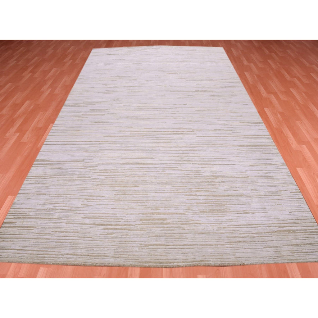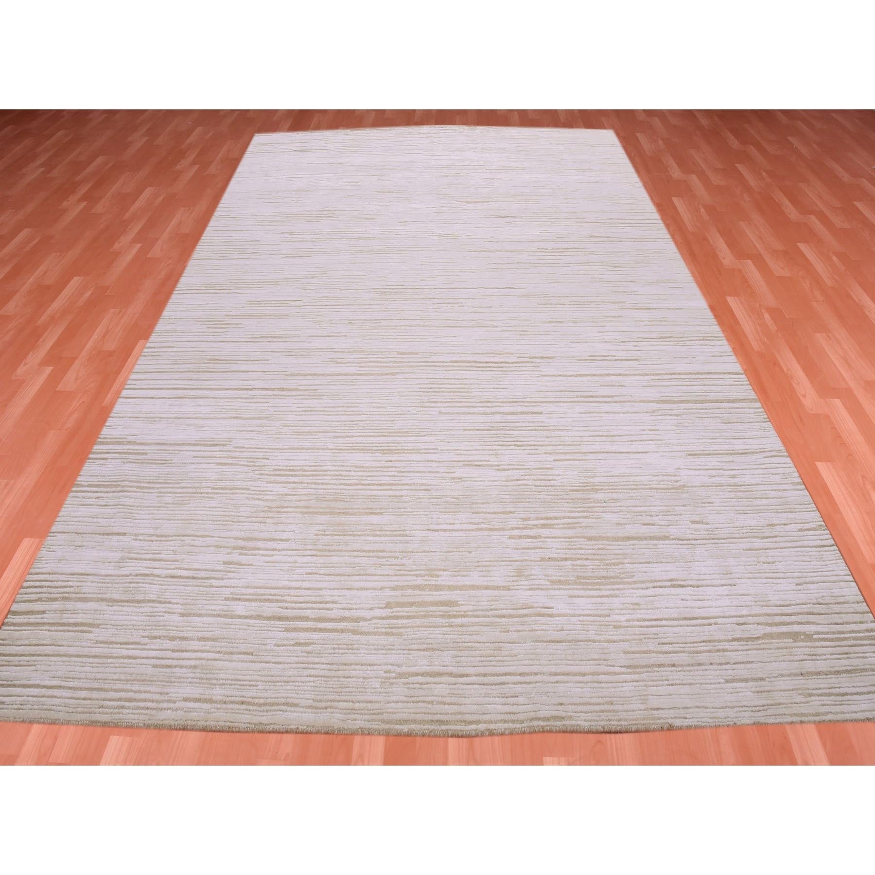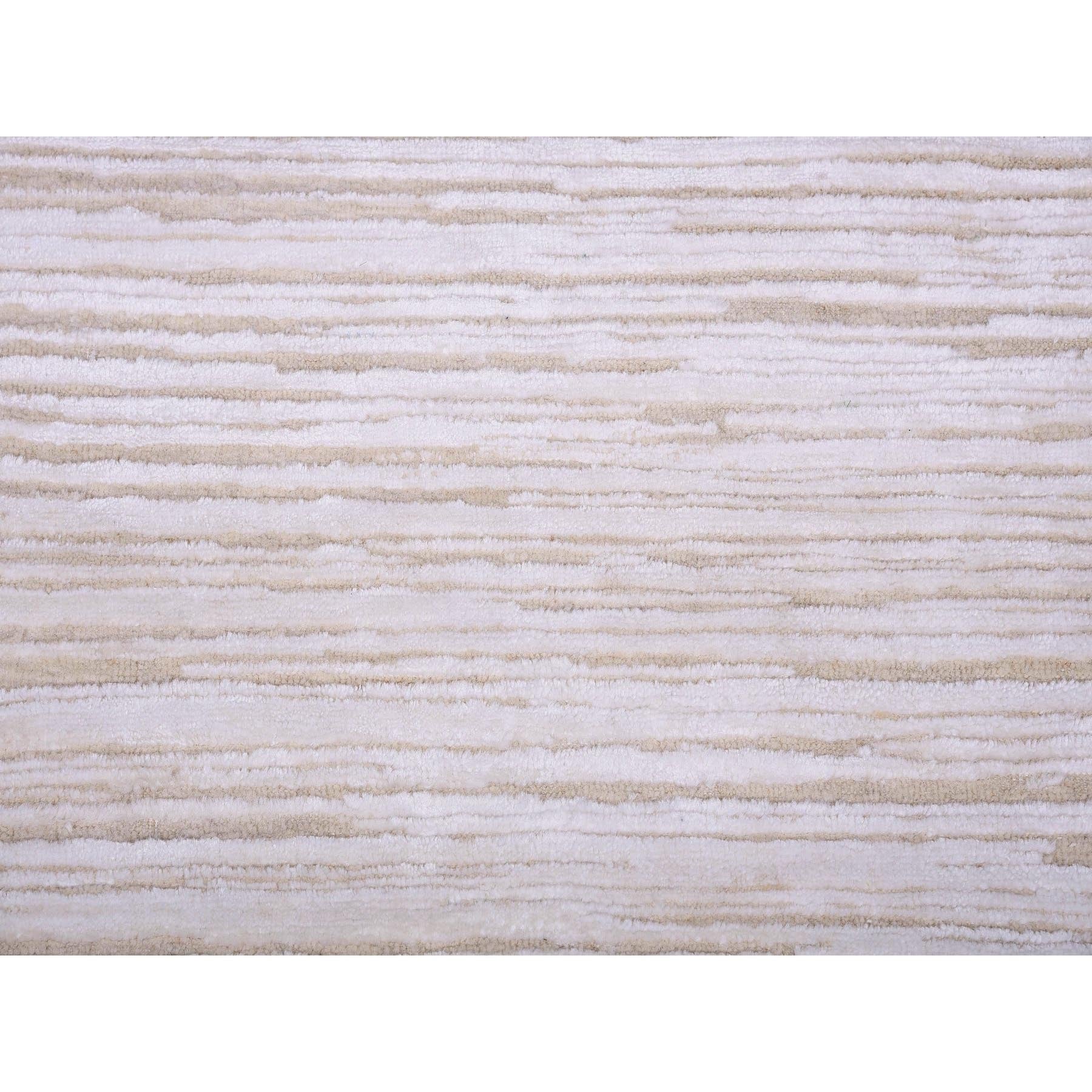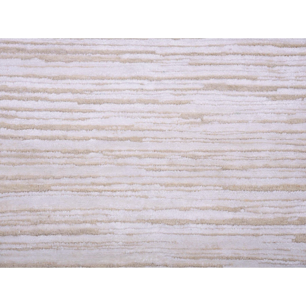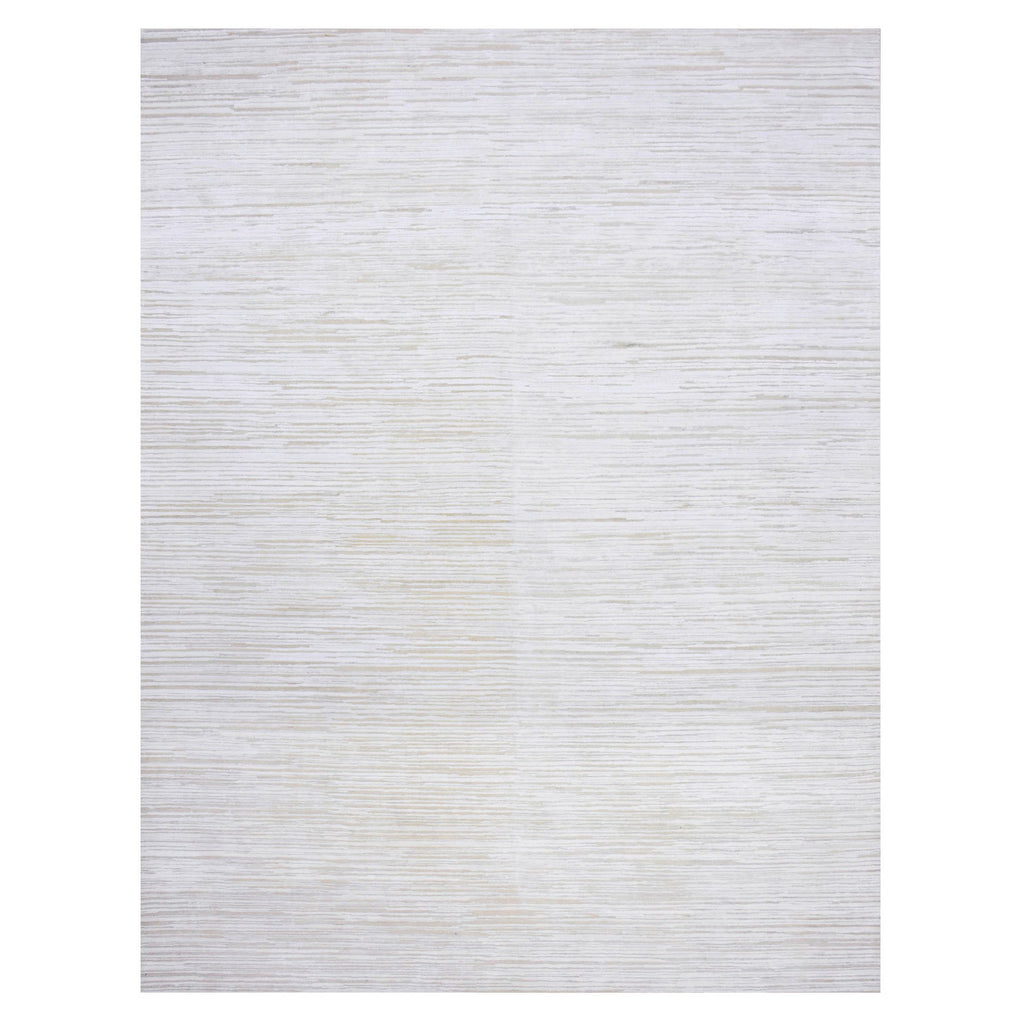 9'1"x12' Ivory, Striae Design Hi-low Pile, Tone On Tone Silk With Textured Wool Hand Knotted, Oriental Rug FWR450228