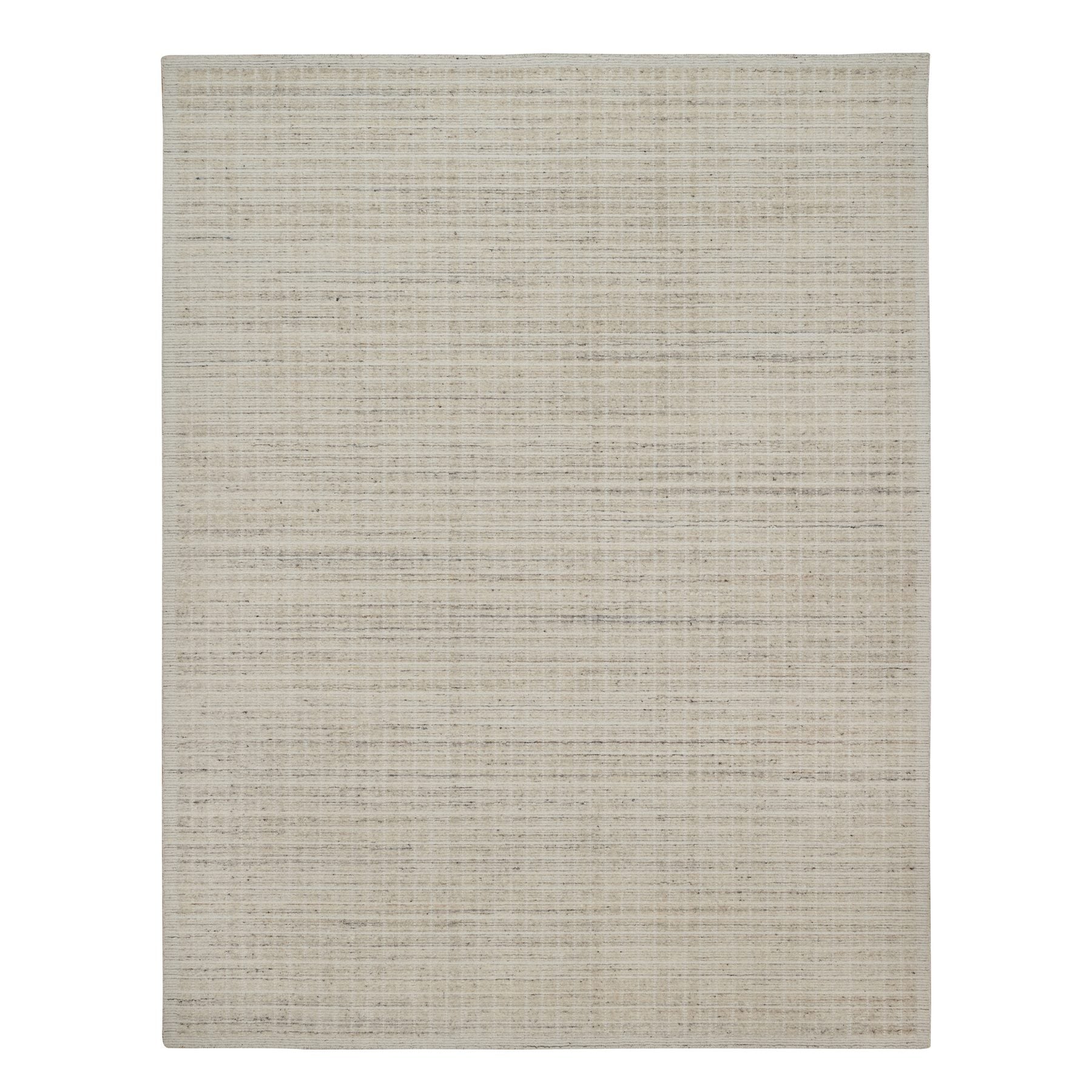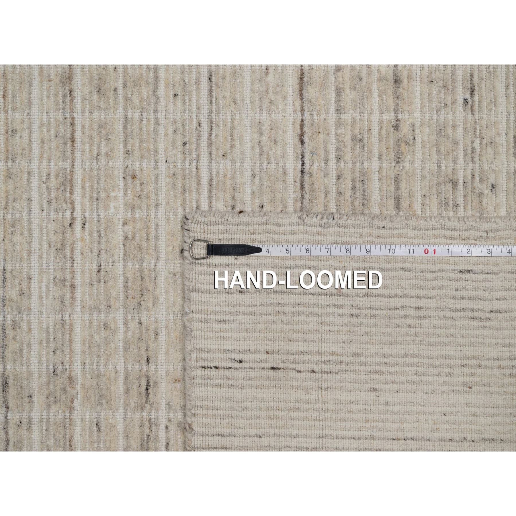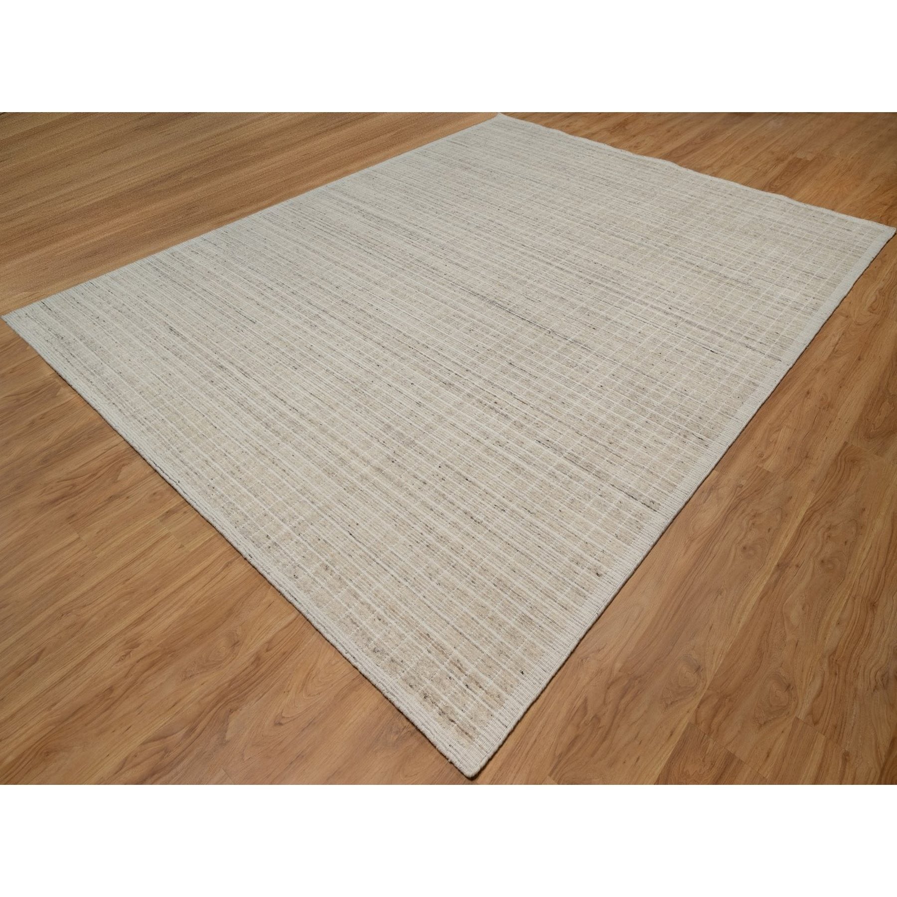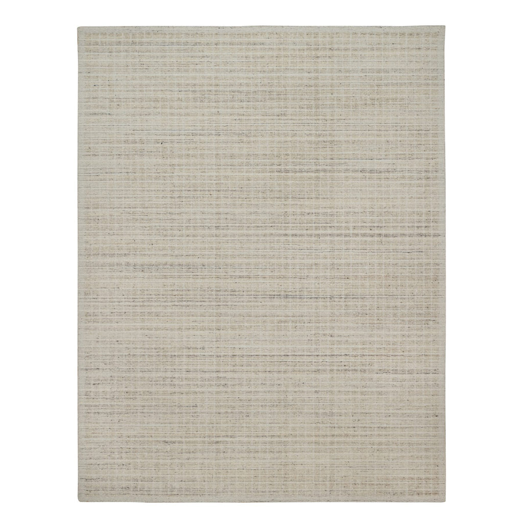 9'1"x12' Linen White, Modern Plain Decor Box Design, Pure Wool, Soft To The Touch, Loomed Knotted, Oriental Rug FWR550110