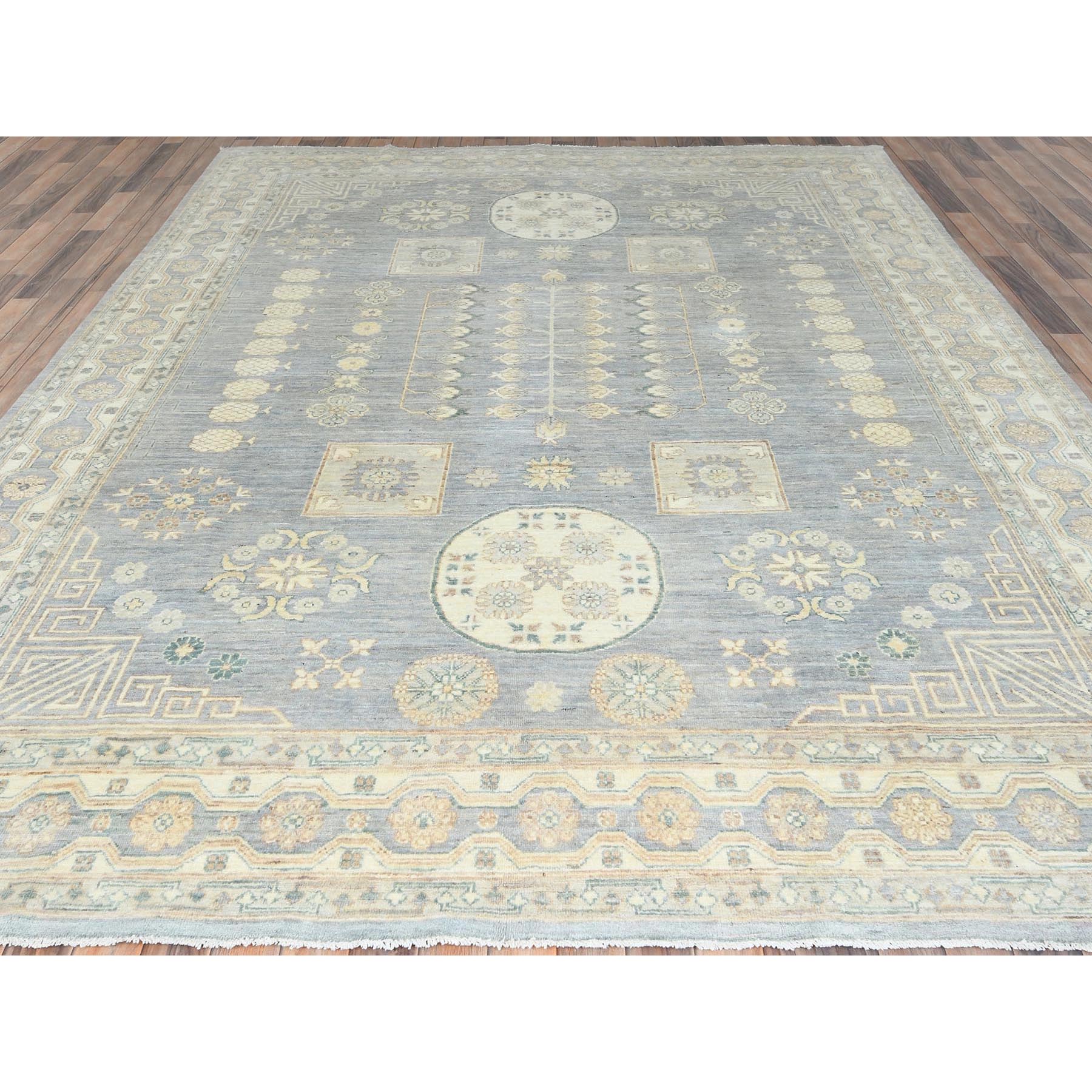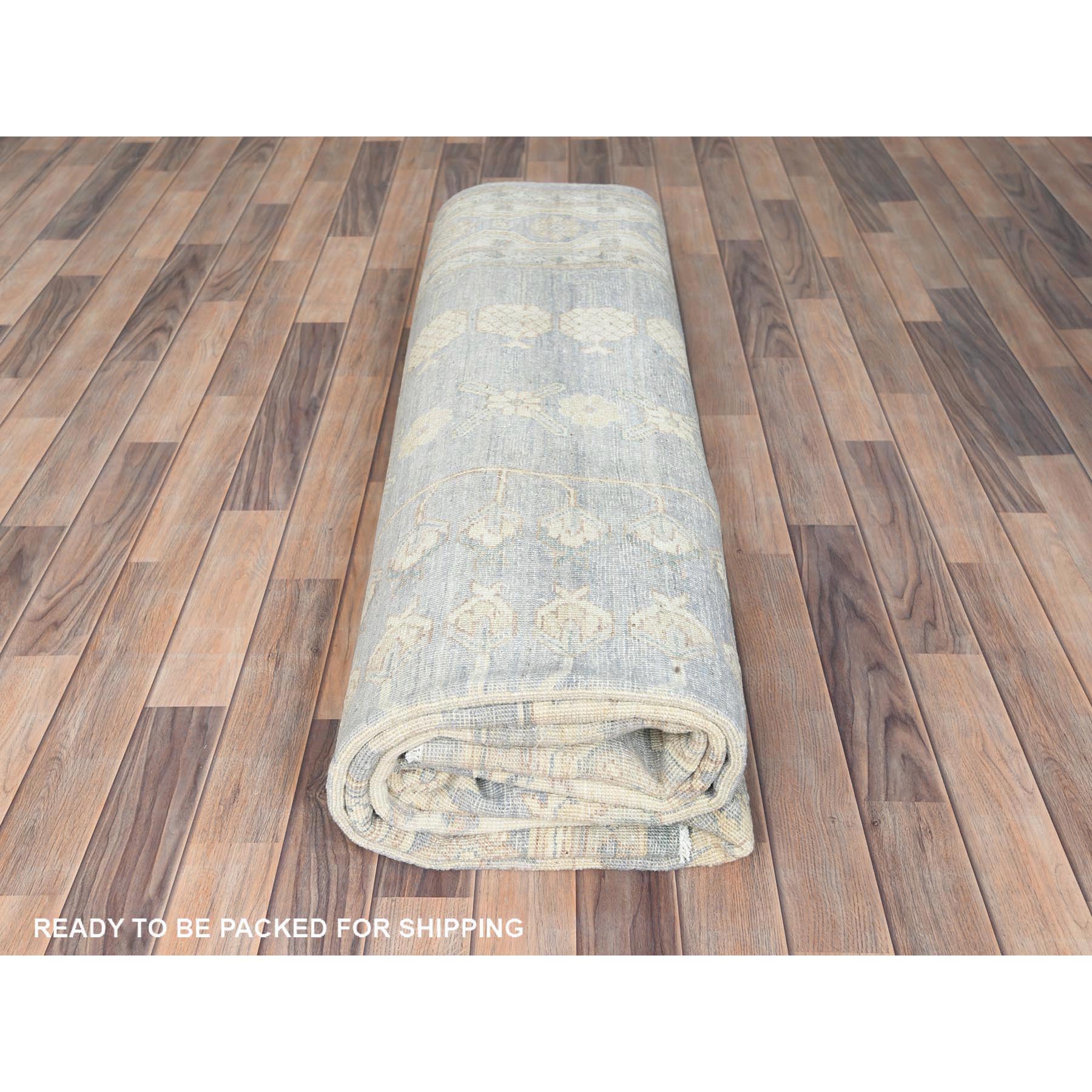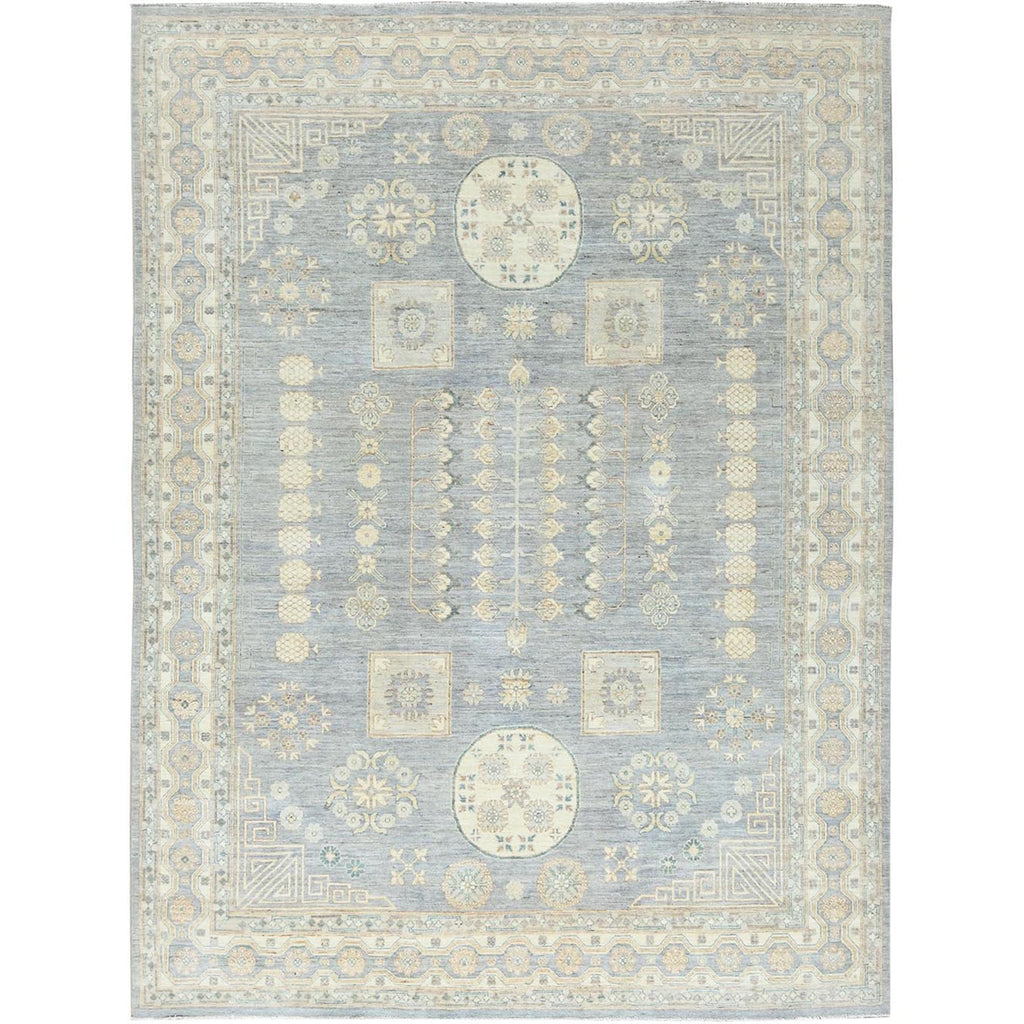 9'1"x12' Misty Gray, Afghan Peshawar With Khotan Design, Stone Washed, Soft Wool, Hand Knotted, Oriental Rug FWR496212