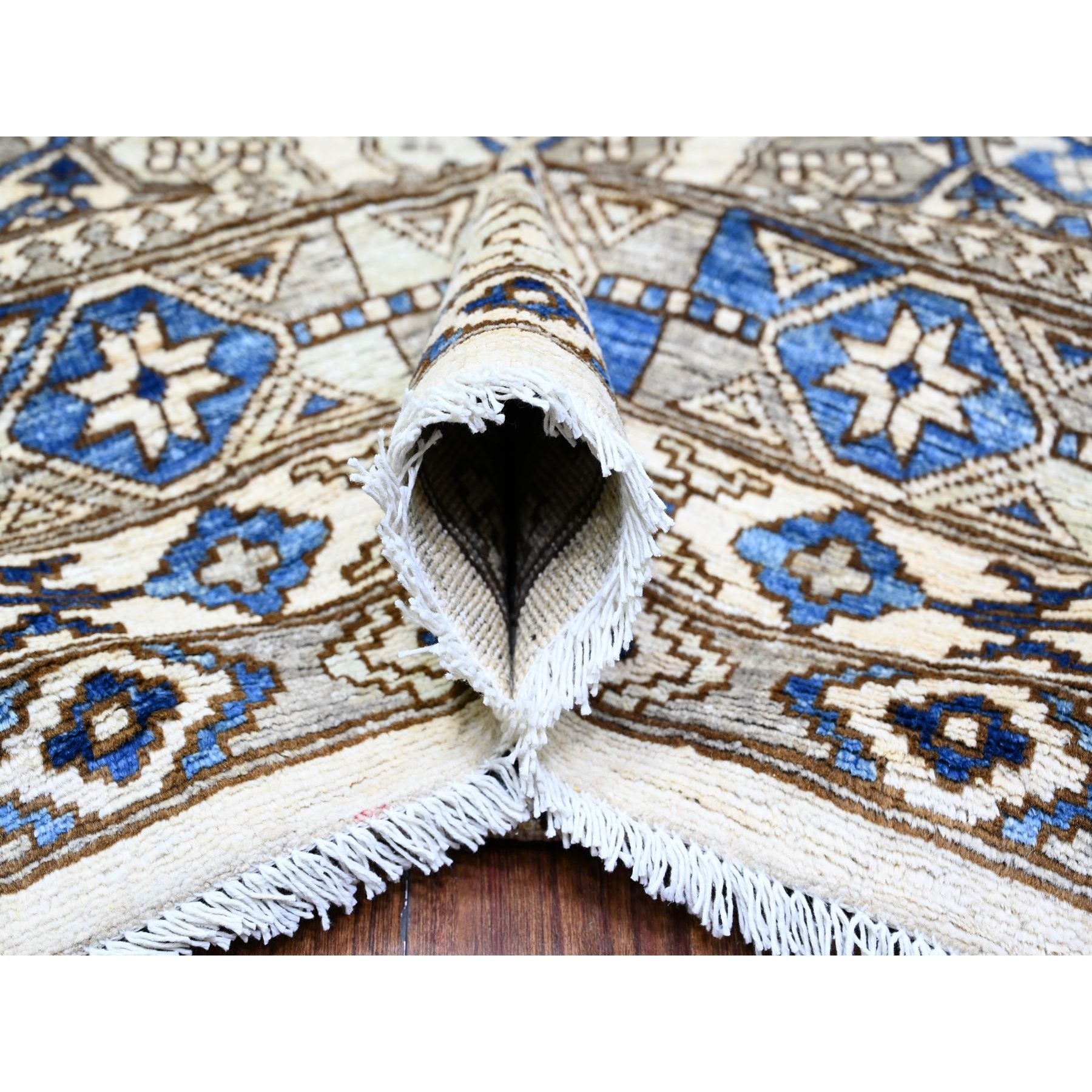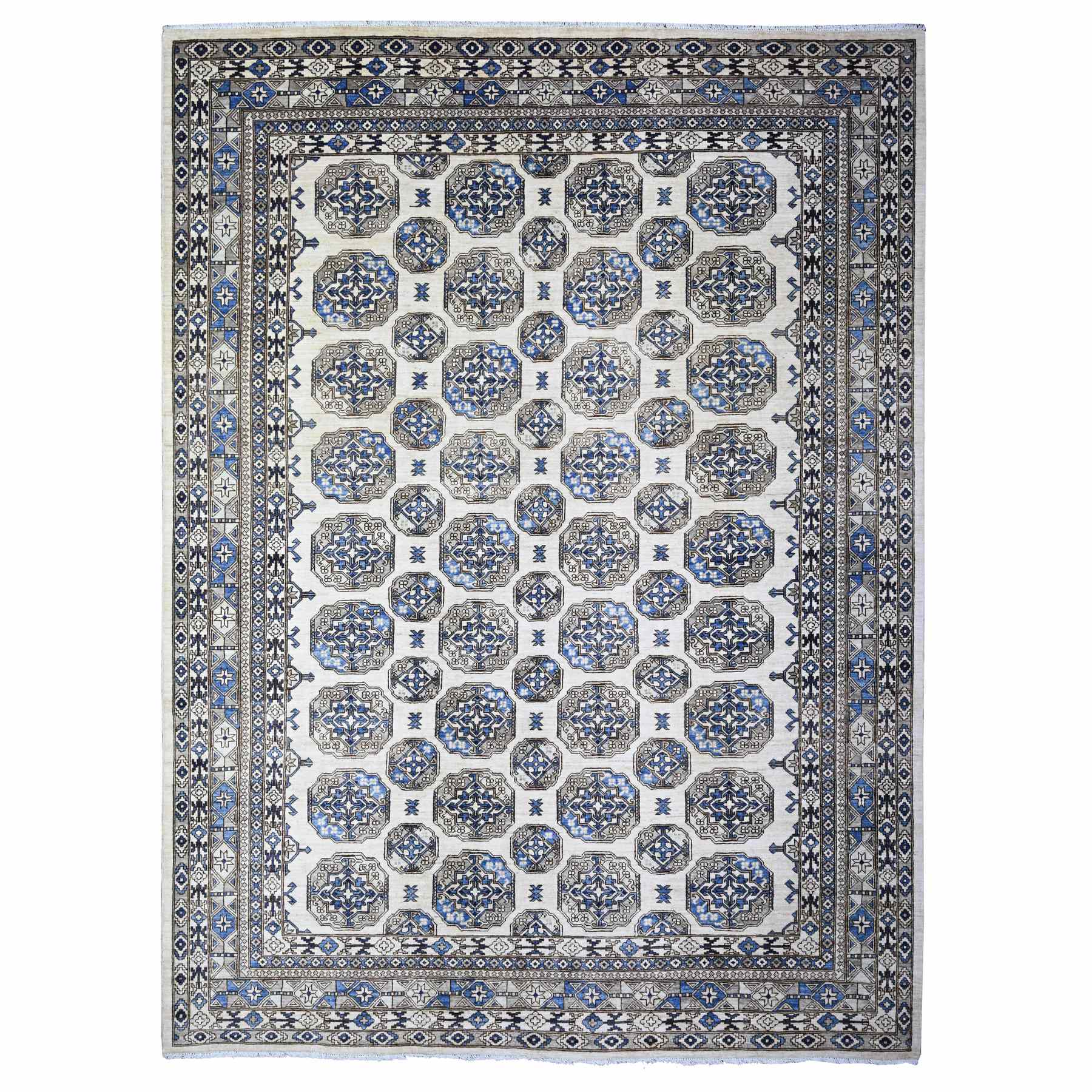 9'1"x12' Porcelain Ivory, Afghan Ersari With Elephant Feet Design, Hand Knotted, Natural Dyes, Natural Wool, Oriental Rug FWR448566