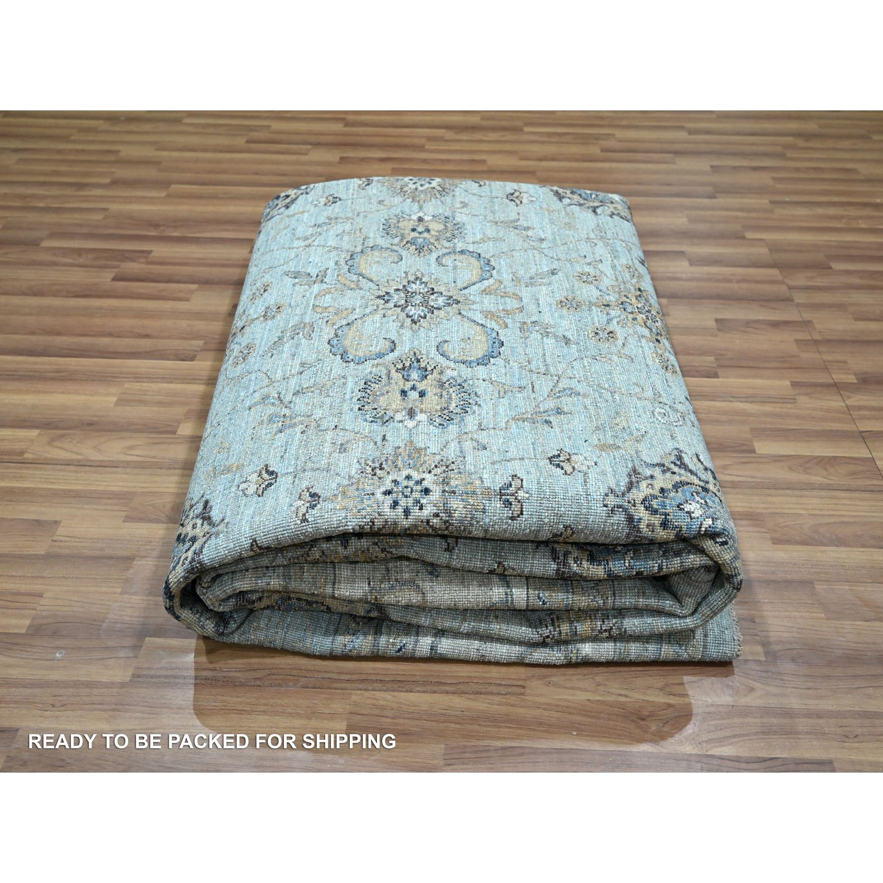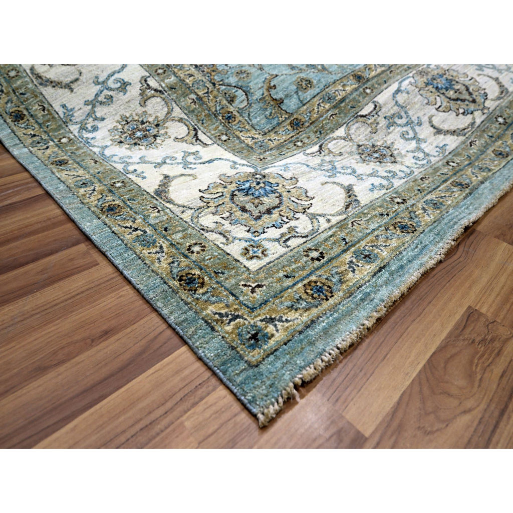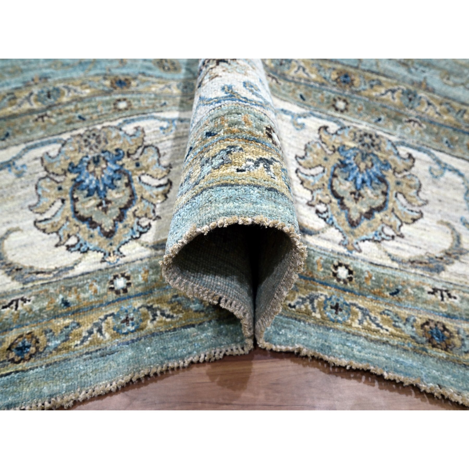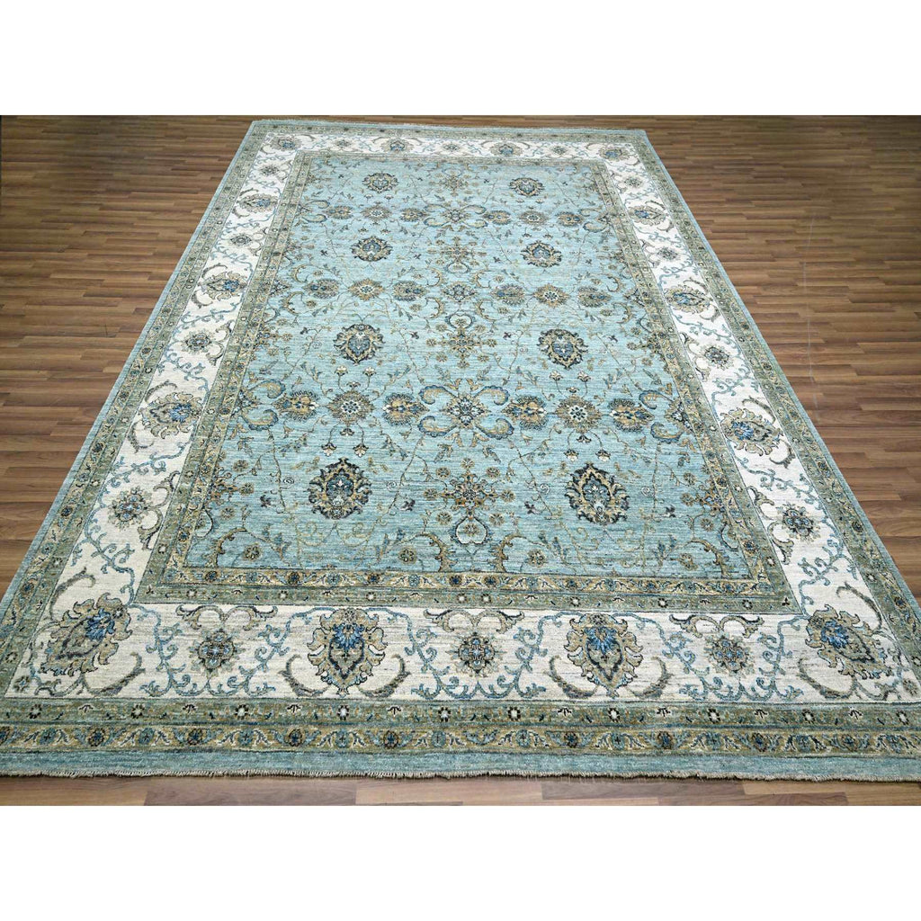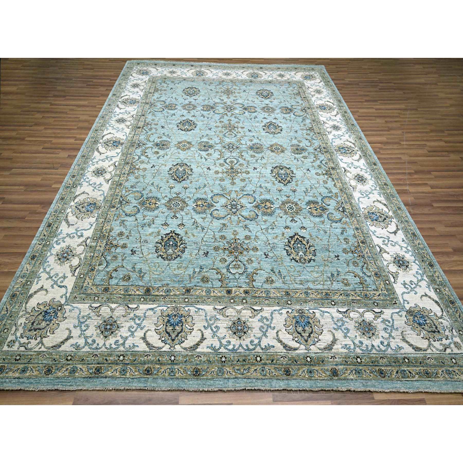 9'1"x12' Sapphire Blue, Hand Knotted, Agra, Shah Abbas Flower Vines Design, Natural Dyes, Pure Wool, Denser Weave, Oriental Rug FWR456792