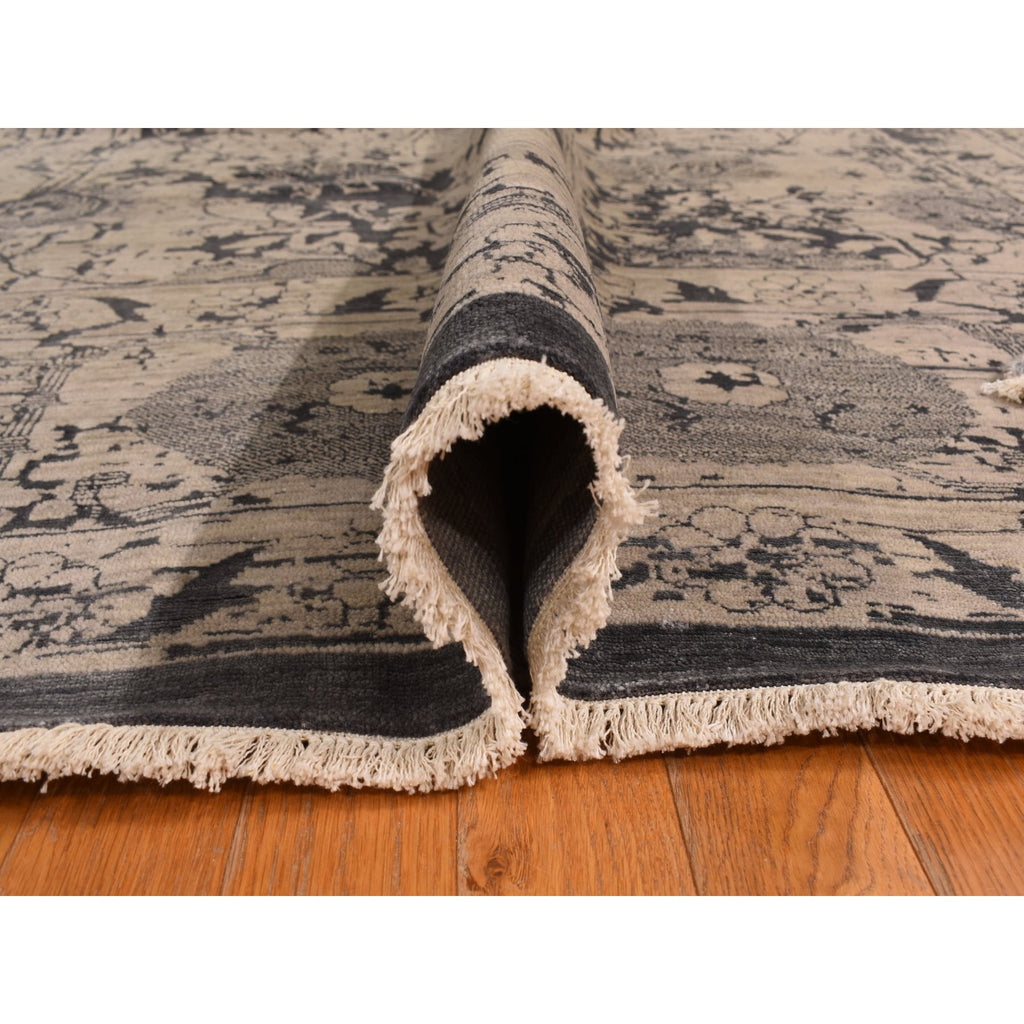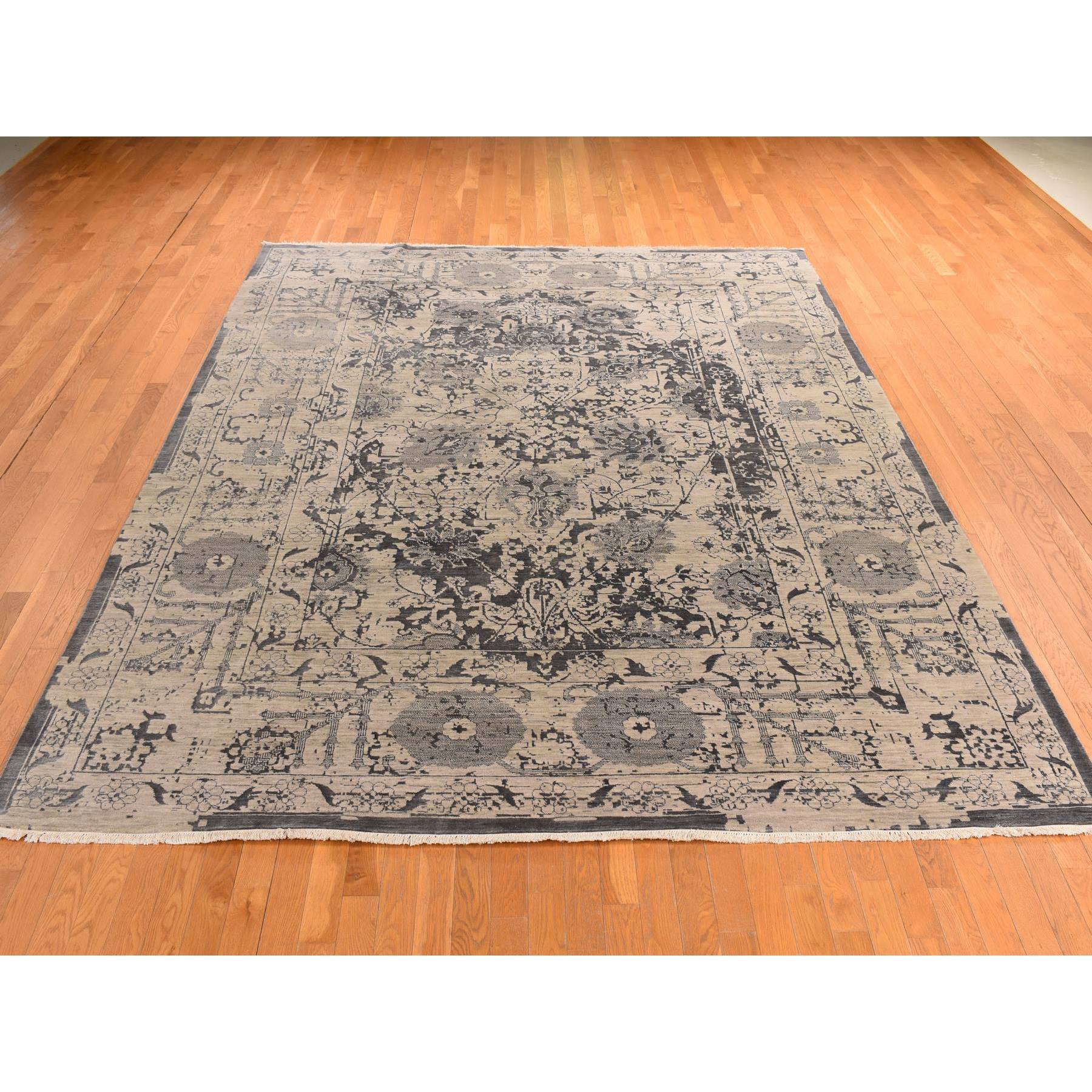 9'1"x12' Tan Color, Broken And Erased Persian Design, Wool And Silk, Transitional, Hand Knotted, Oriental Rug FWR469728