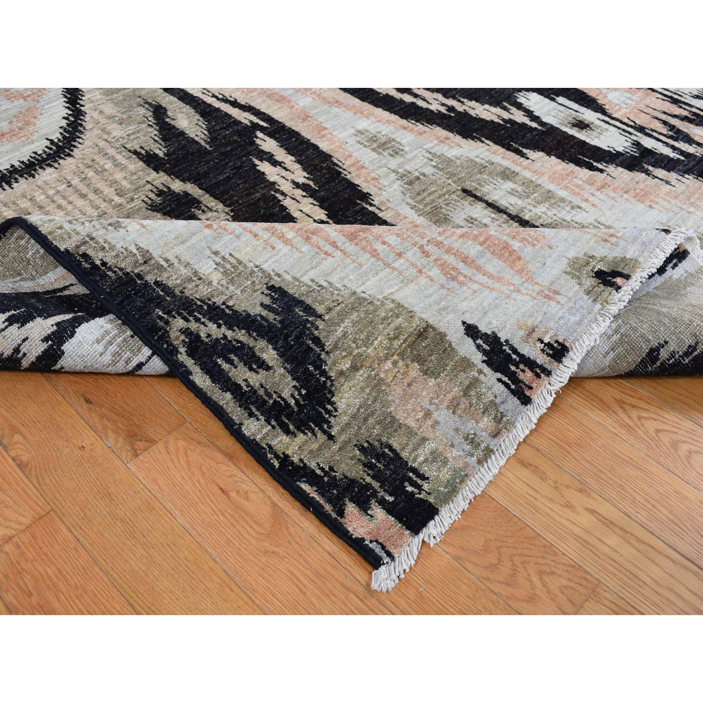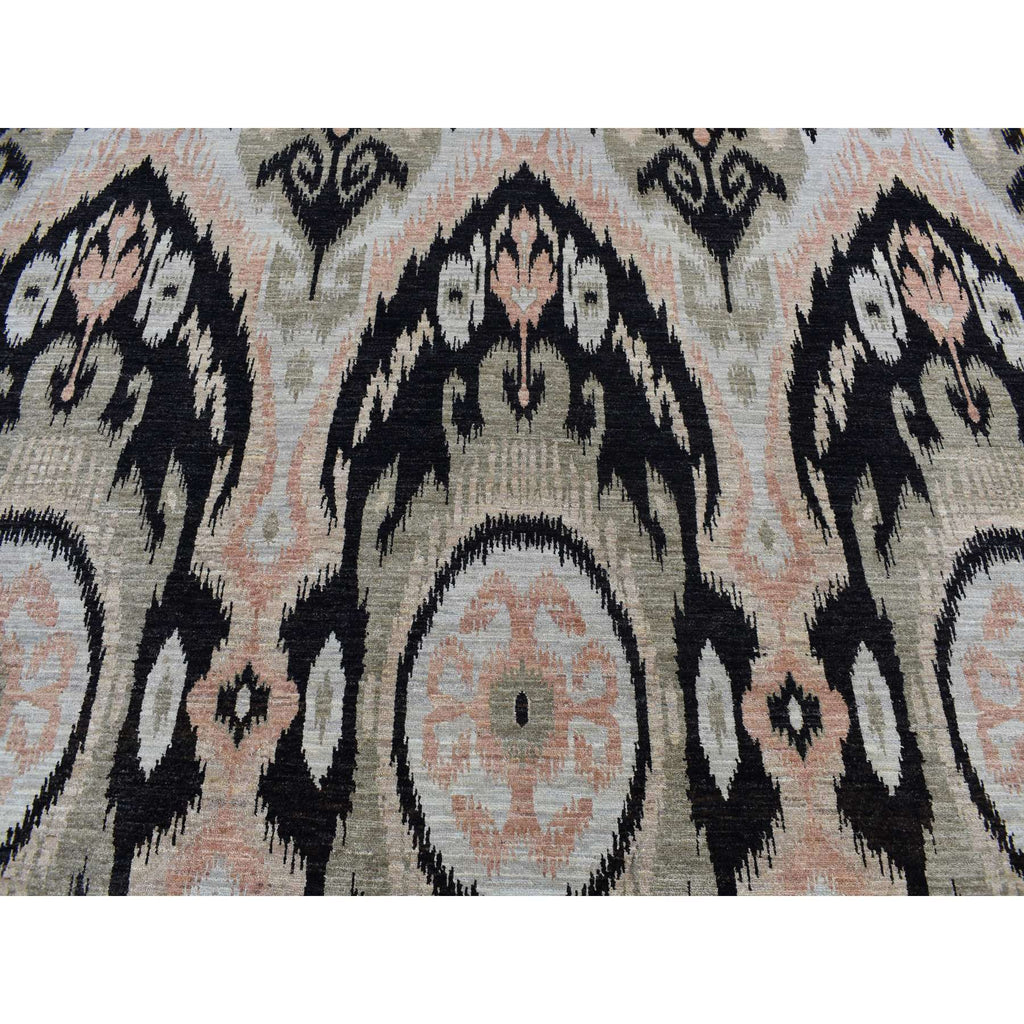 9'1"x13' Eerie Black, 100% Wool, Ikat Uzbek Design, Hand Knotted, Oriental Rug FWR525078