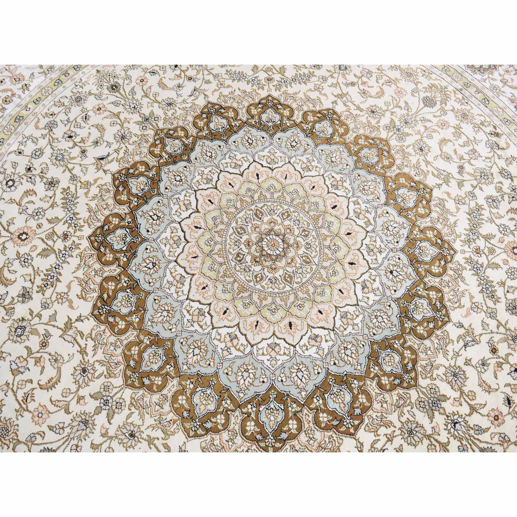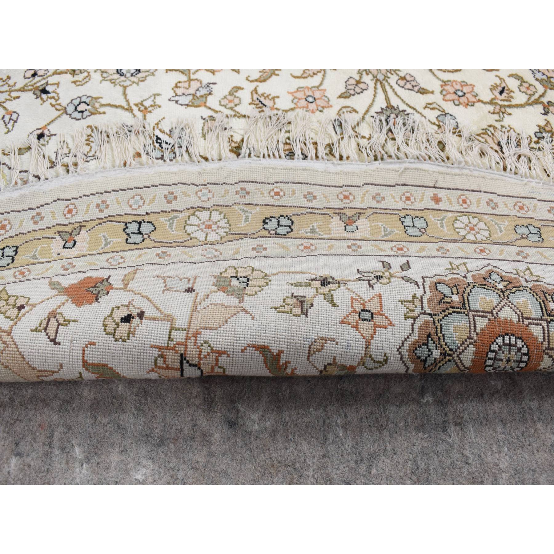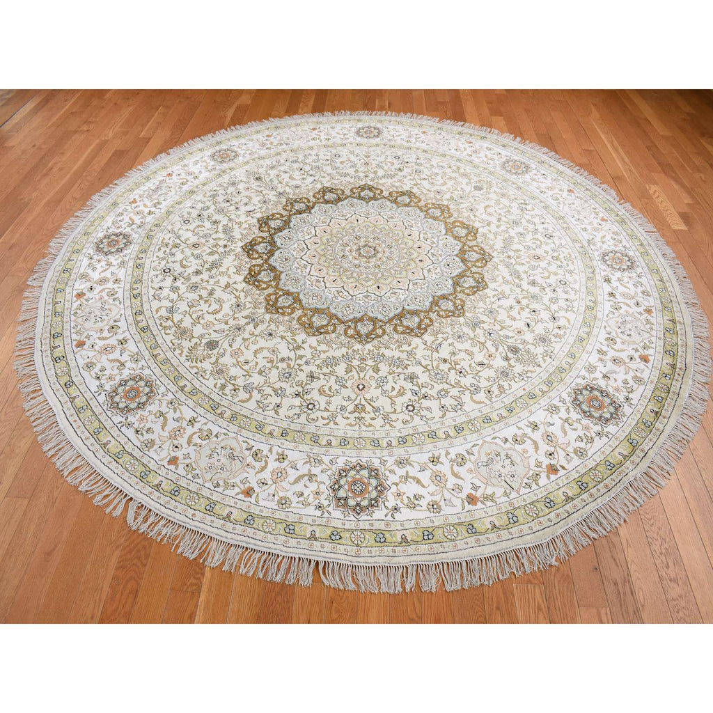 9'1"x9'1" Ivory, Silken, Tabriz Design, 300 Kpsi, Hand Knotted, Round Oriental Rug FWR526530