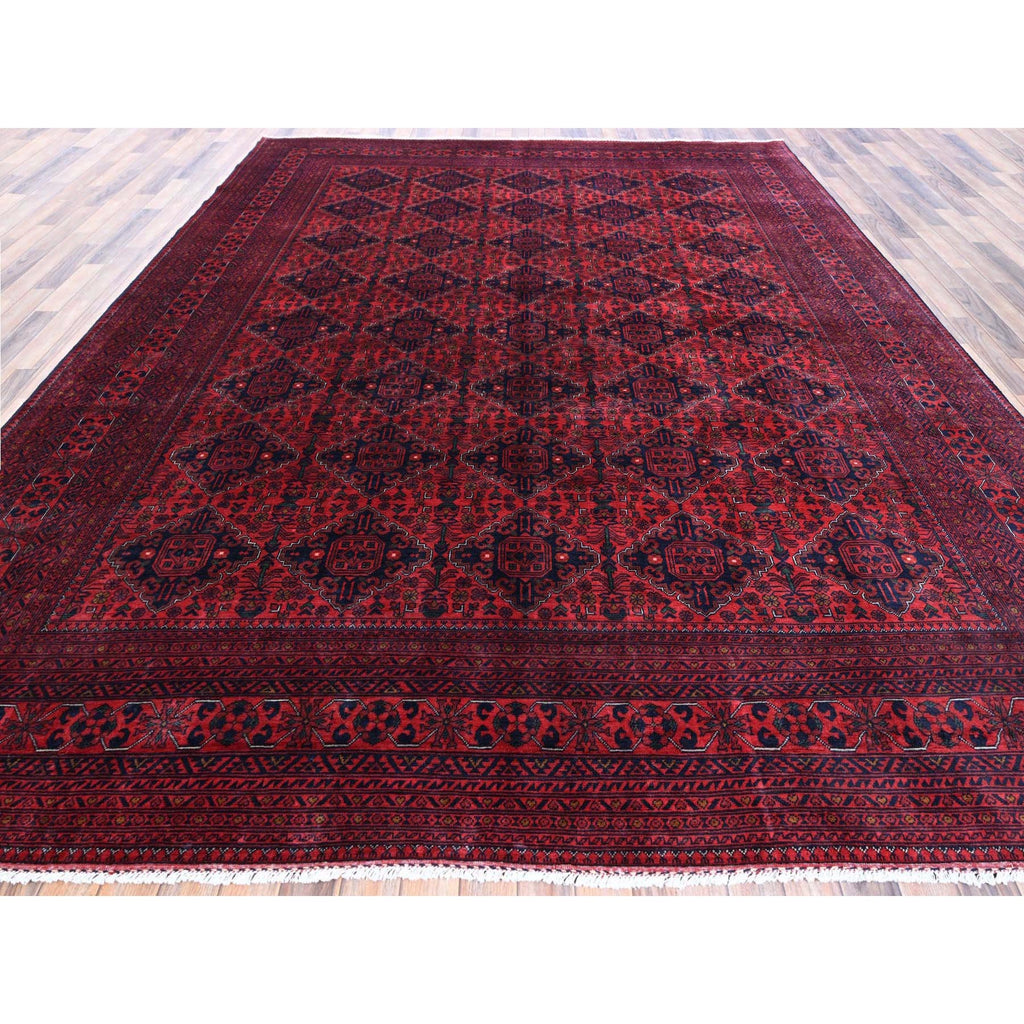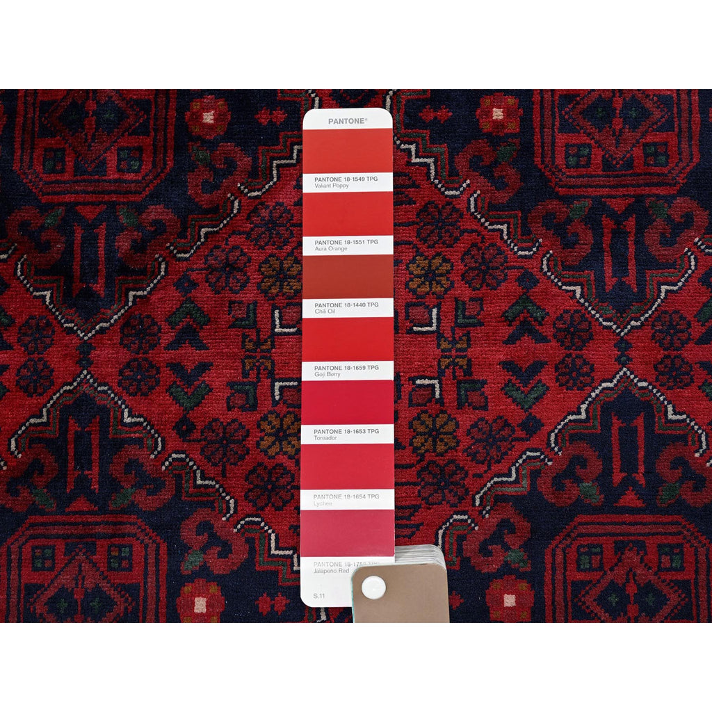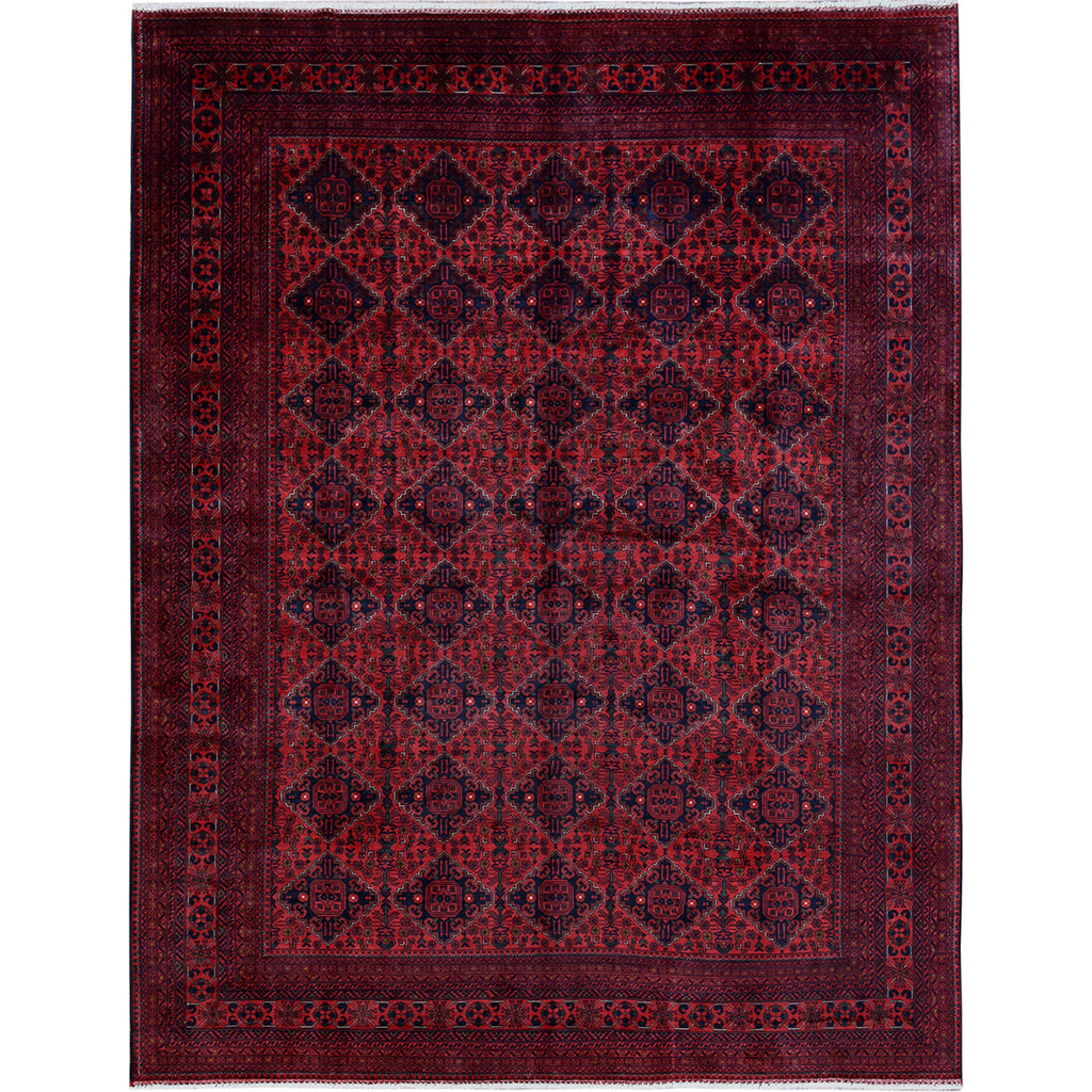 9'10"x12'10" Chili Red, Afghan Khamyab With Geometric Pattern, Hand Knotted, Soft And Velvety Wool, Vegetable Dyes, Oriental Rug FWR4602