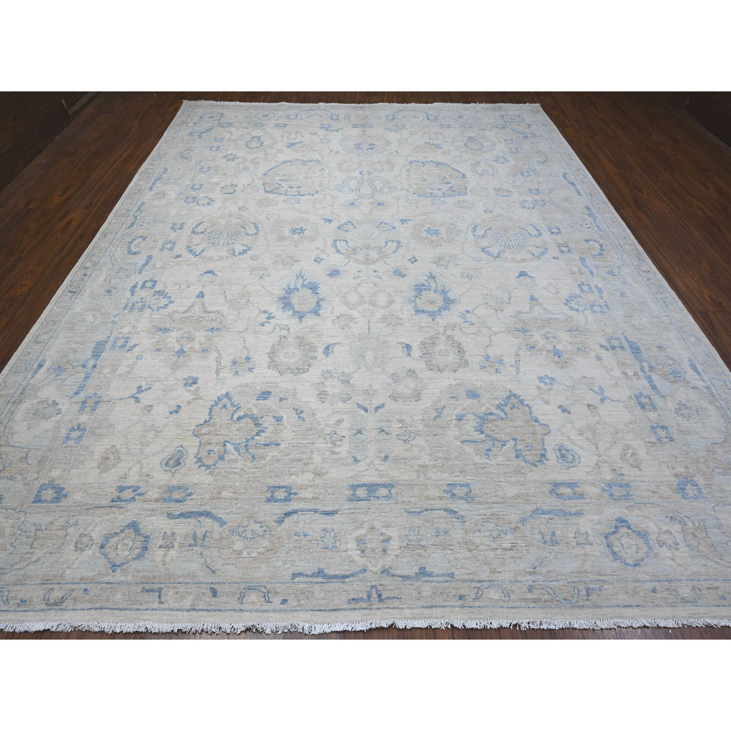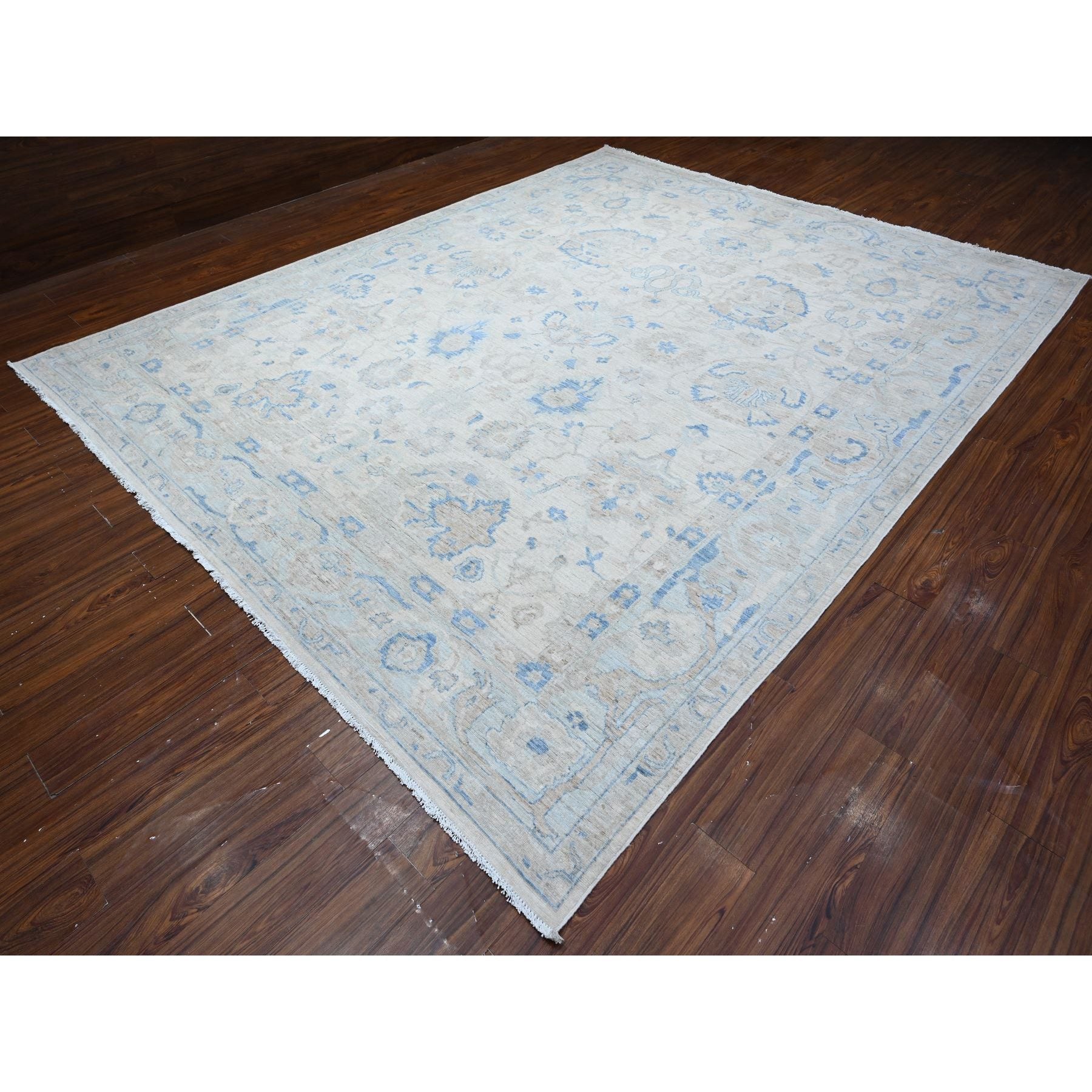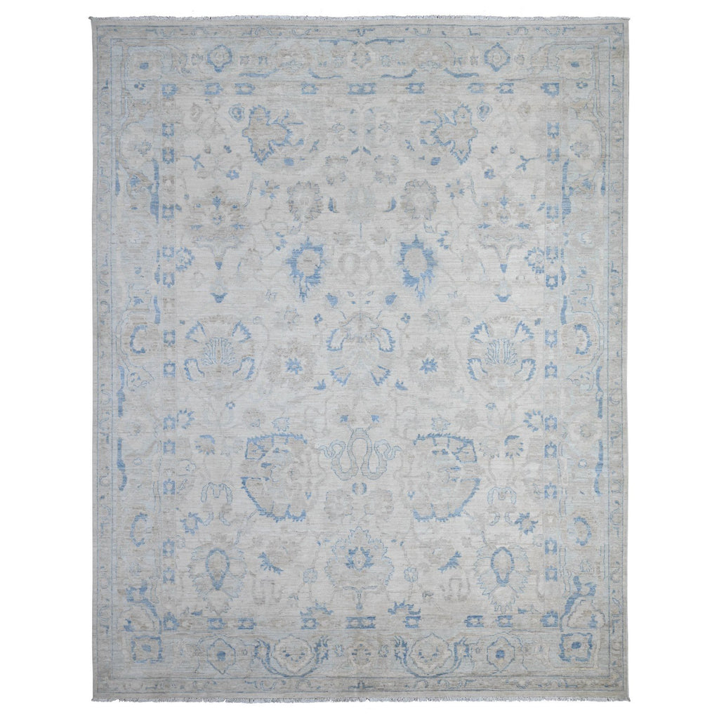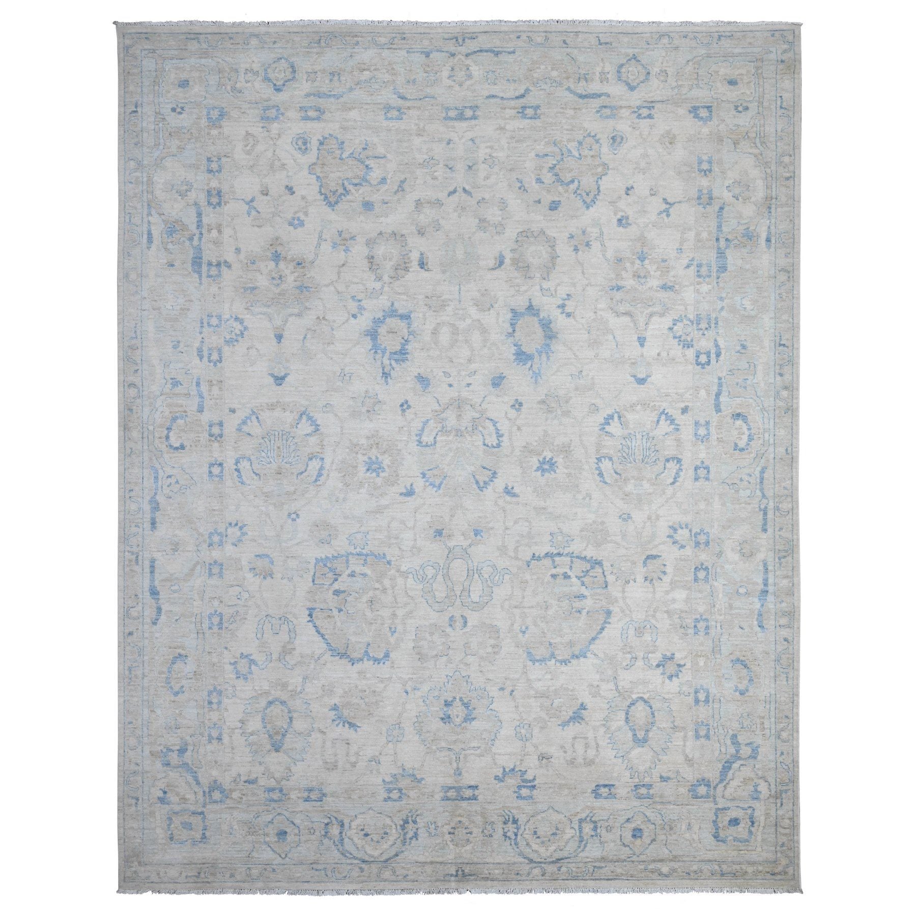 9'10"x12'4" Heron White With Blue Border, Fine Peshawar With All Over Mahal Design, Touches Of Blue, Hand Knotted, Squarish Pure Wool Oriental Rug FWR534012