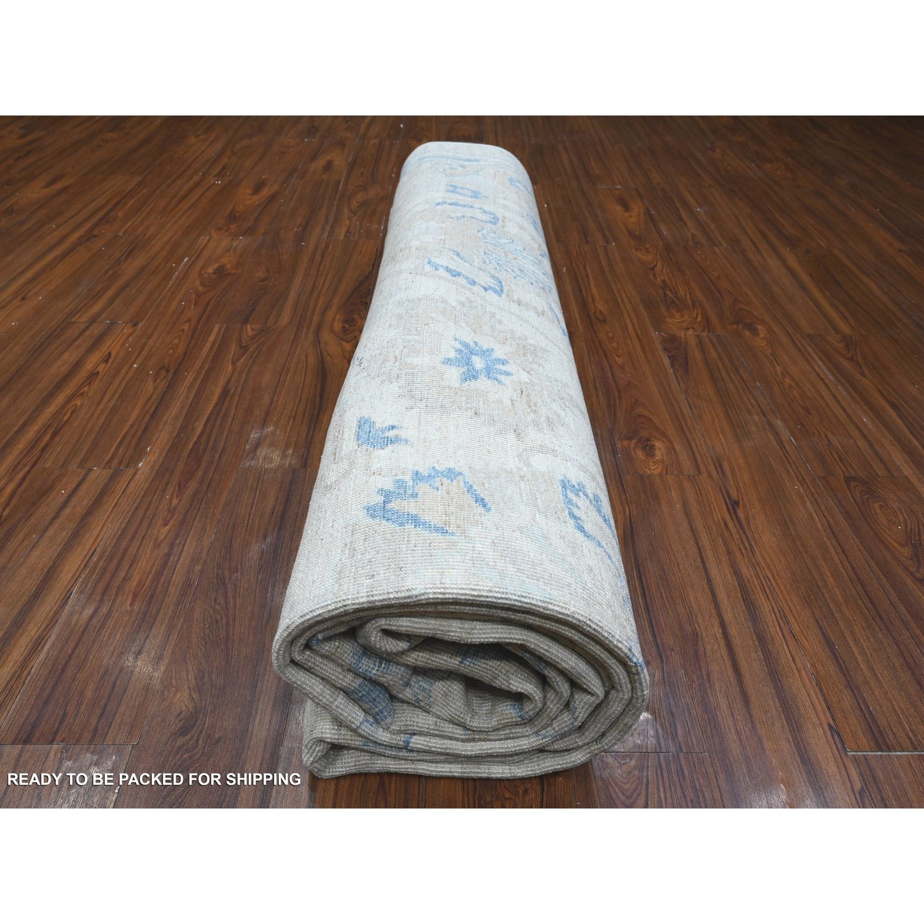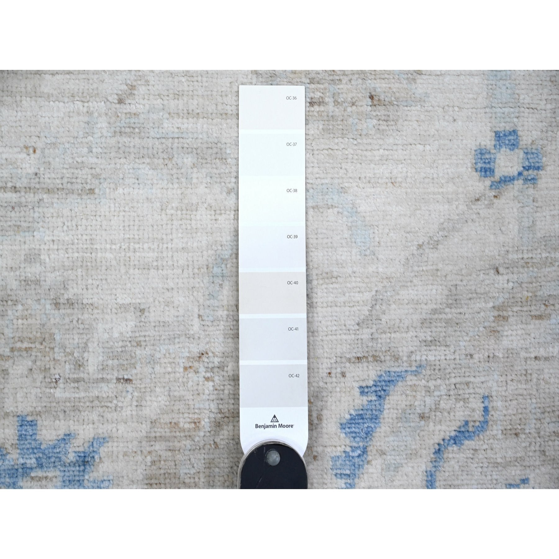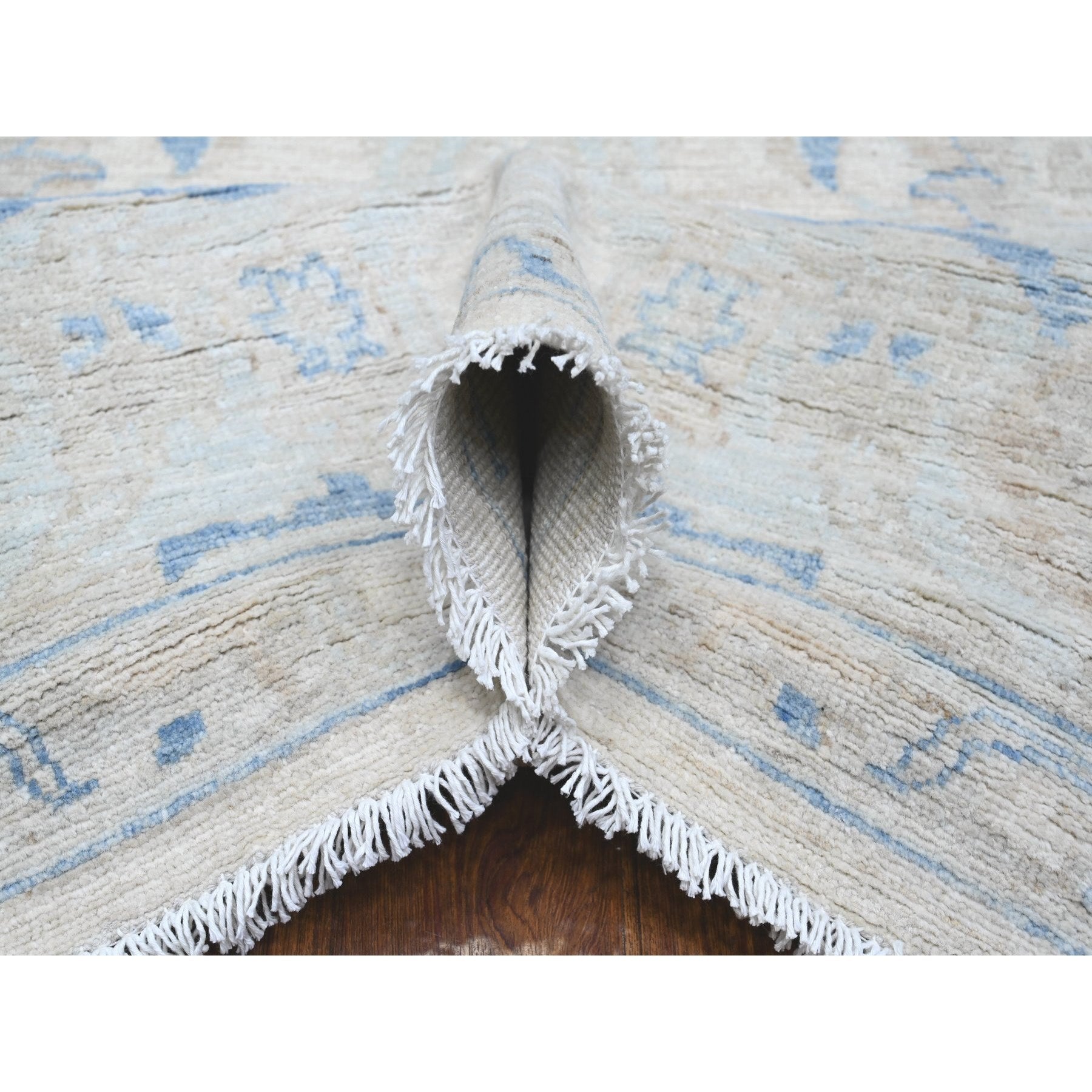 9'10"x12'4" Heron White With Blue Border, Fine Peshawar With All Over Mahal Design, Touches Of Blue, Hand Knotted, Squarish Pure Wool Oriental Rug FWR534012