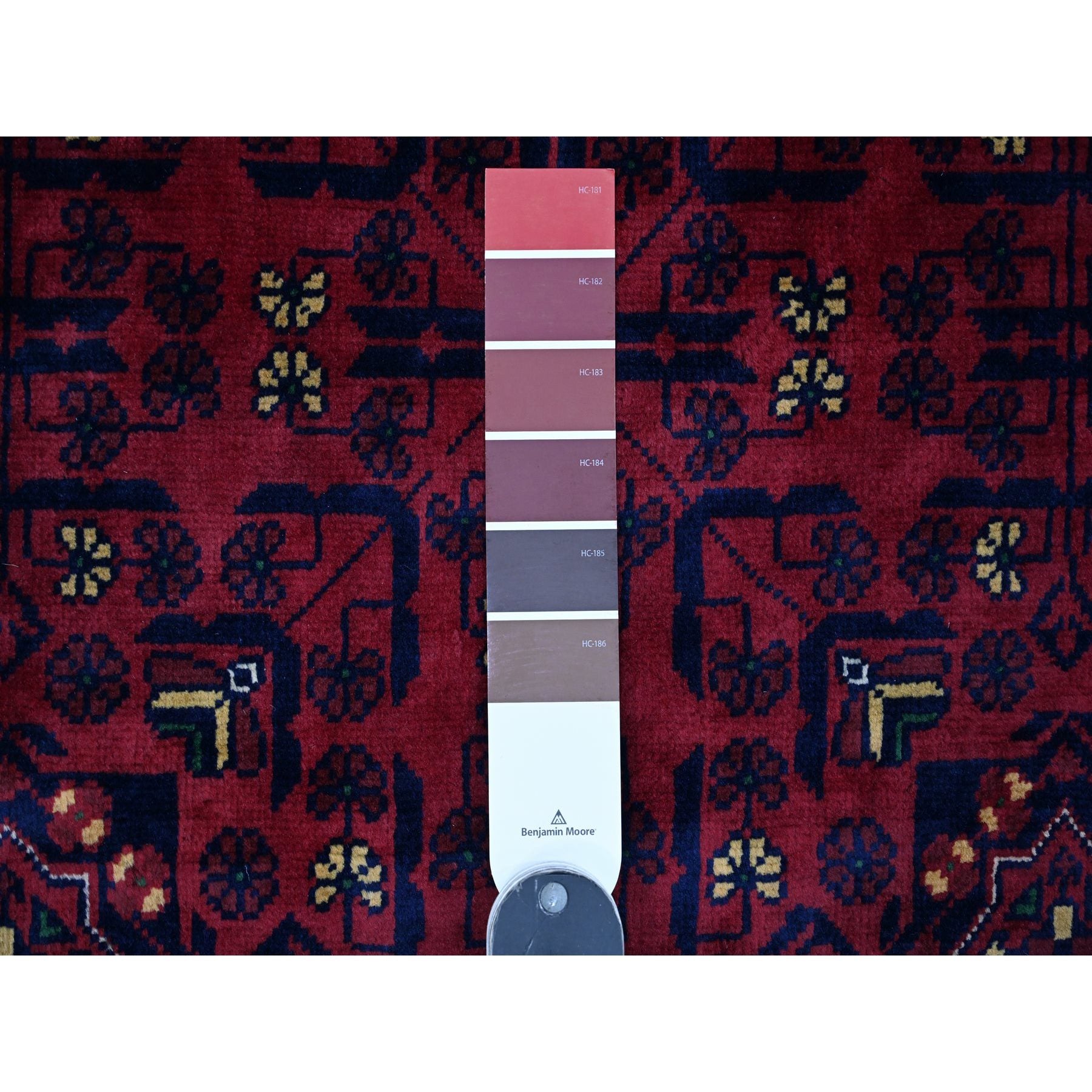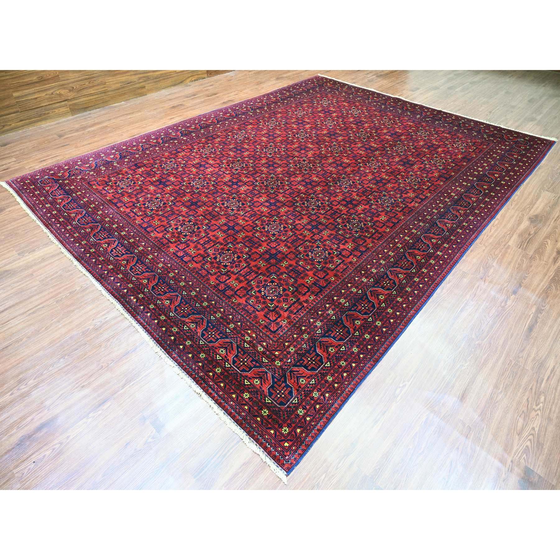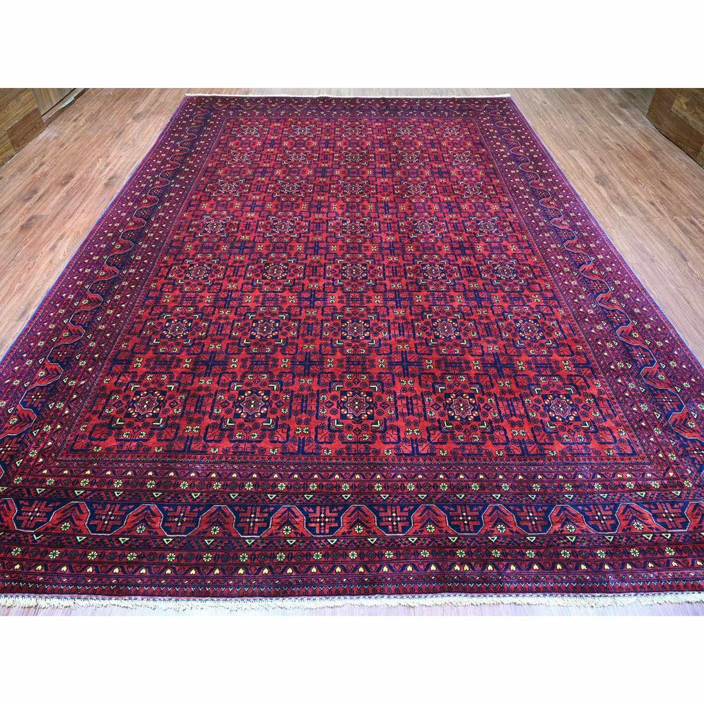 9'10"x13'1" Deep And Saturated Red, Afghan Khamyab With Geometric Design, Soft Wool, Vegetable Dyes, Hand Knotted, Oriental Rug FWR122334