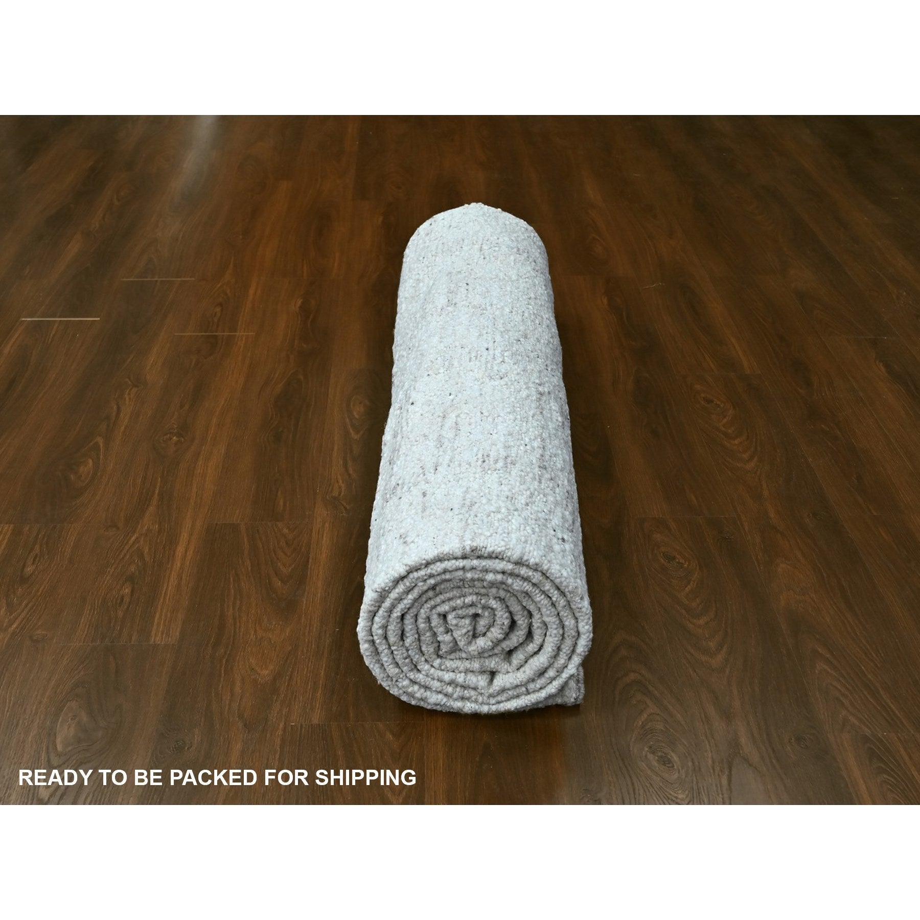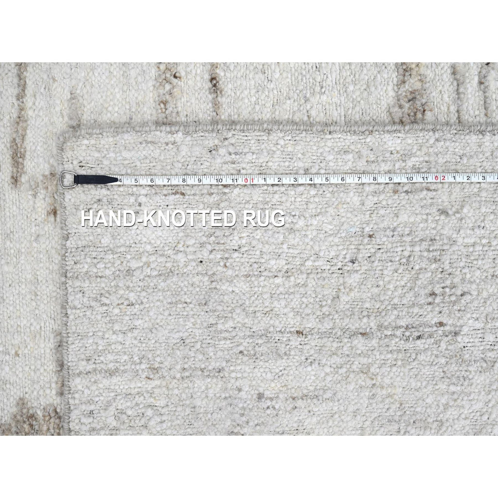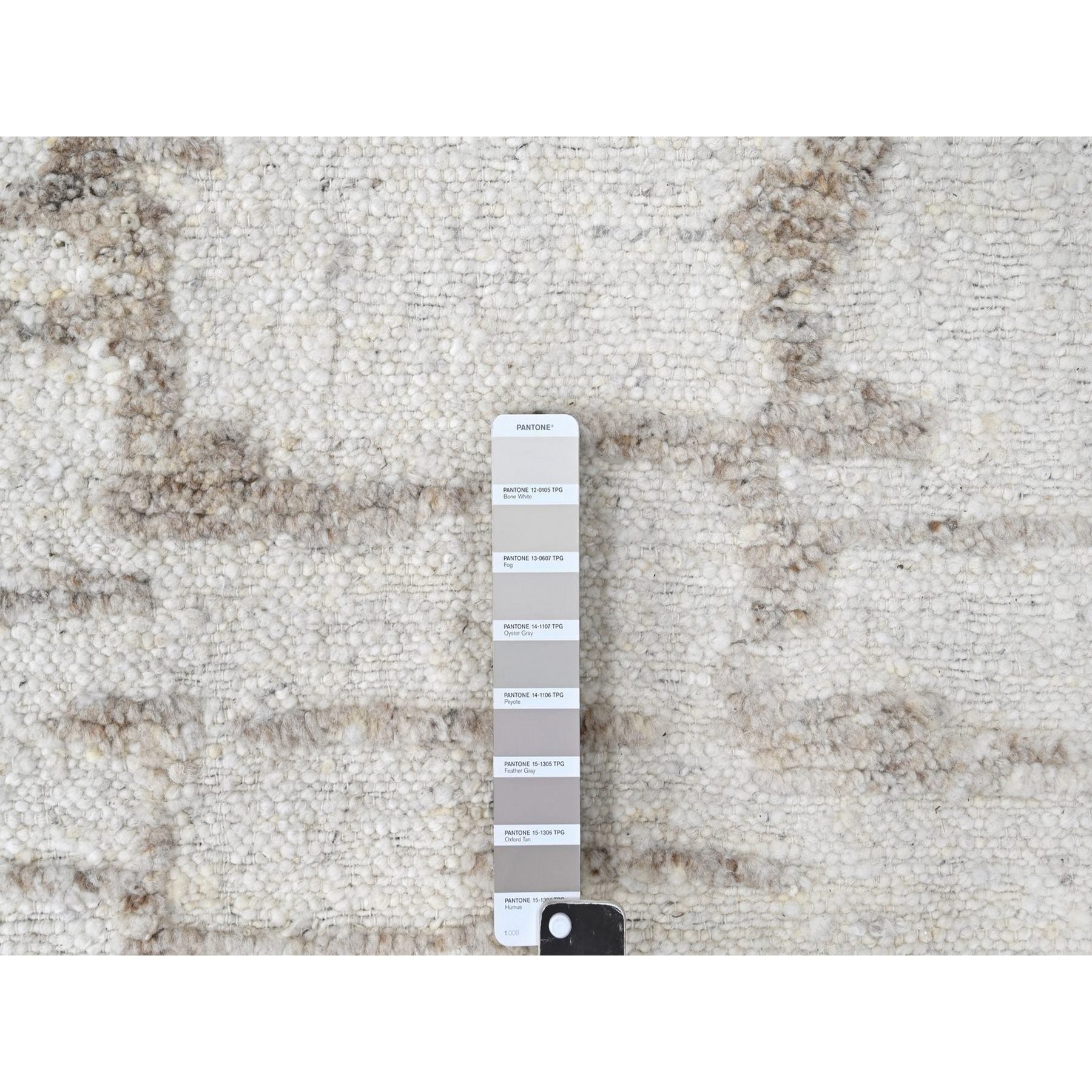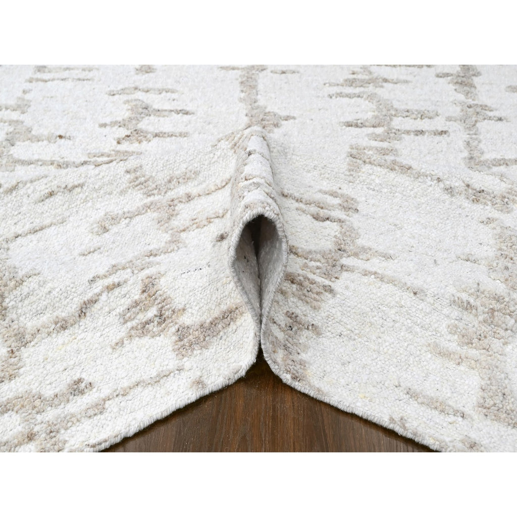 9'10"x13'10" Bone White, Flat Weave With Pile, Modern Design, Hand Knotted, 100% Wool, Oriental Rug FWR61752