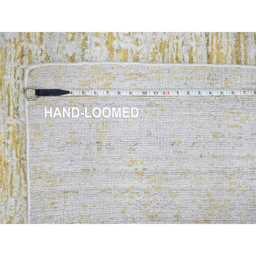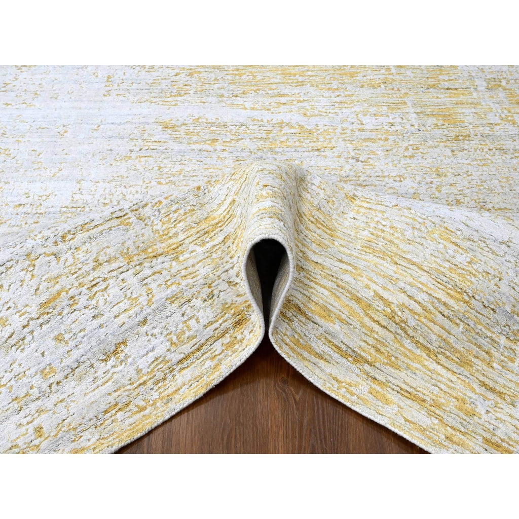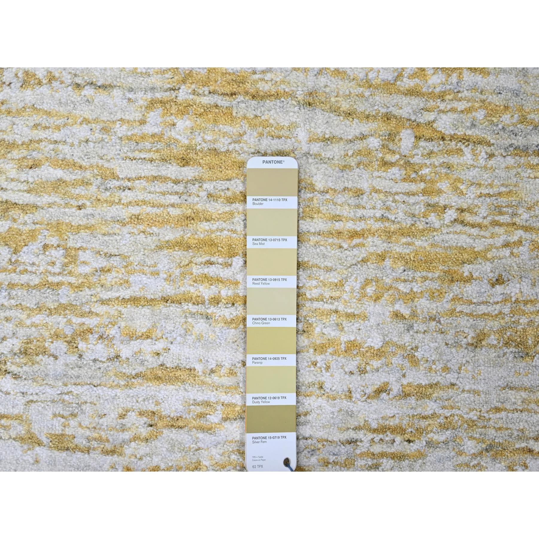 9'10"x13'10" Macaroon Yellow, Hand Loomed, Wool And Plant Based Silk, Textured Pile, Modern Design, Oriental Rug FWR61746