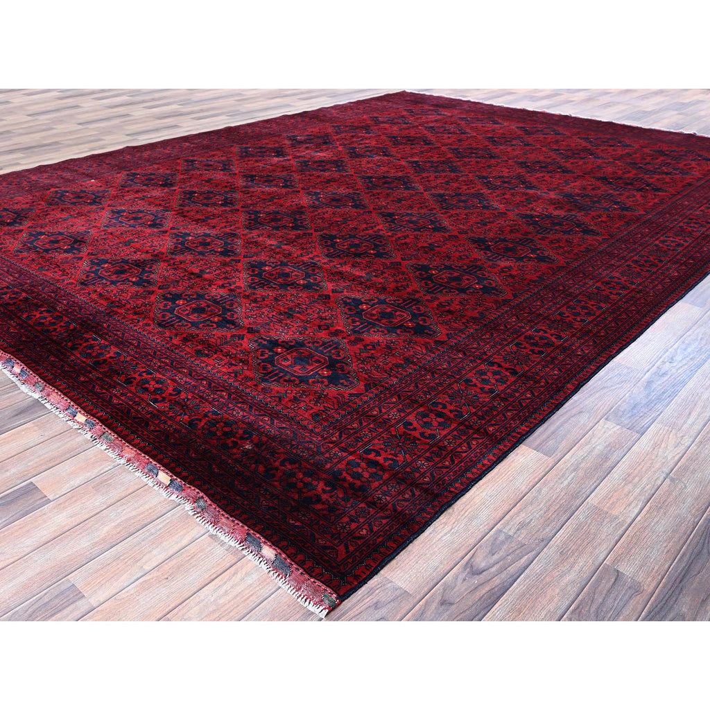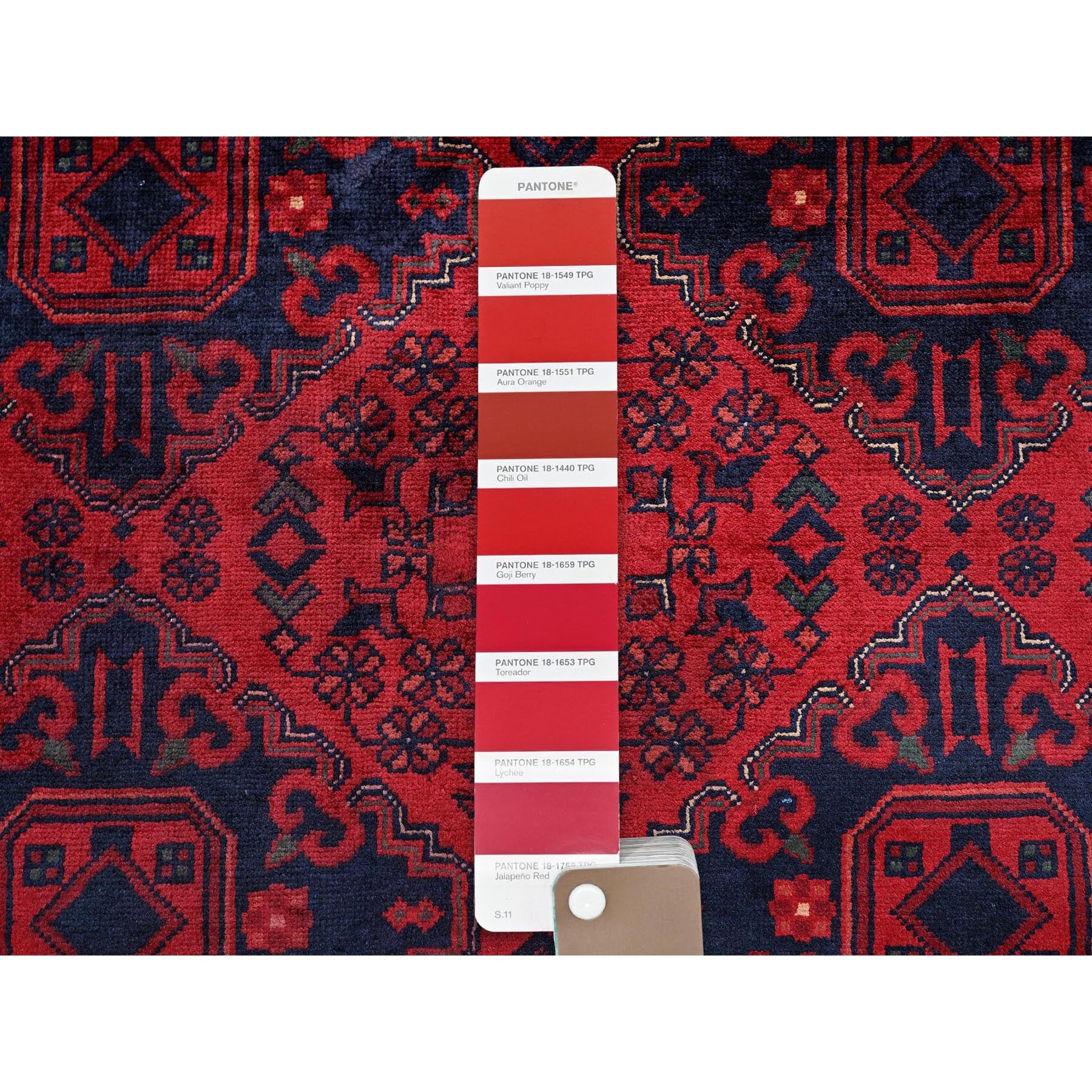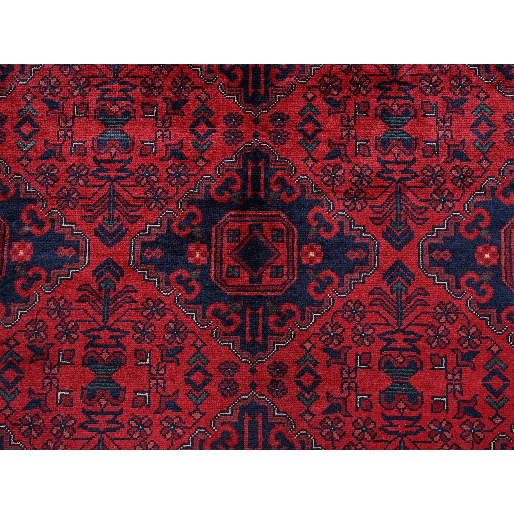 9'10"x13'2" Chili Red, Afghan Khamyab With Geometric Design, Soft And Shiny Wool, Hand Knotted, Vegetable Dyes, Oriental Rug FWR4608