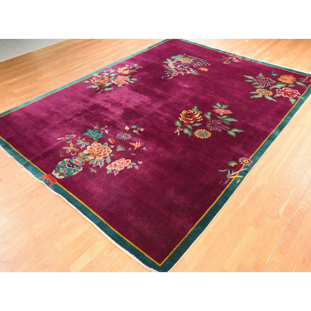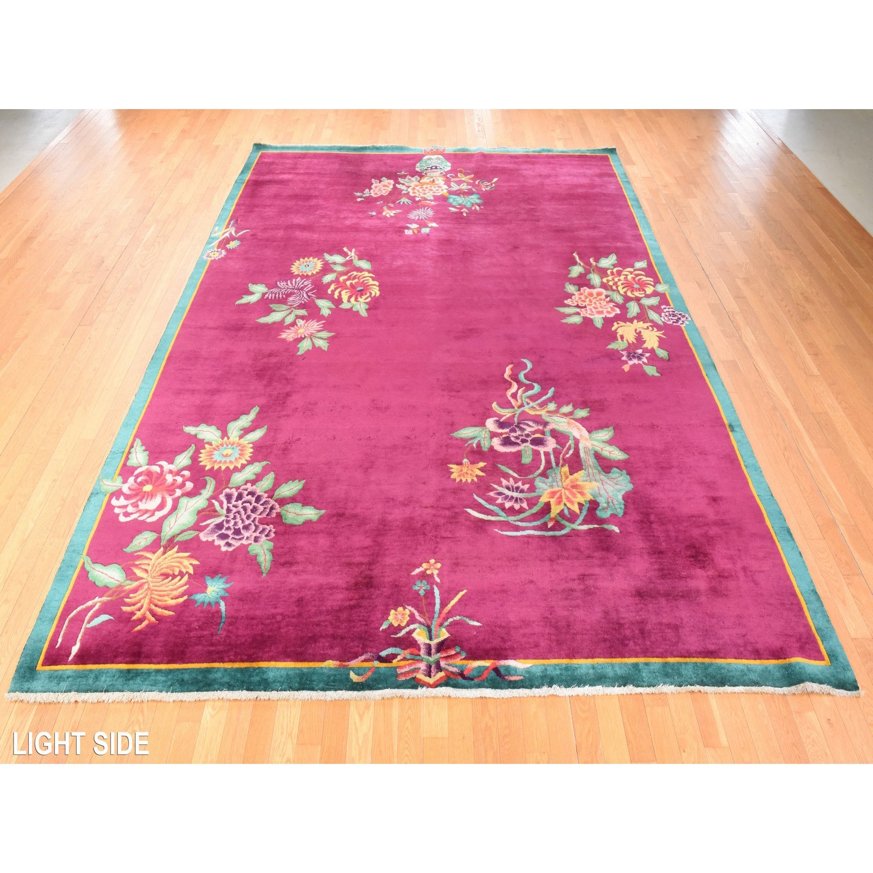 9'10"x13'5" Magenta Purple, Antique Nichols, Chinese Art Deco, Hand Knotted, 100% Wool, Clean, Sides And Ends Professionally Redone And Secured, Slight Wear, Oriental Rug FWR470886