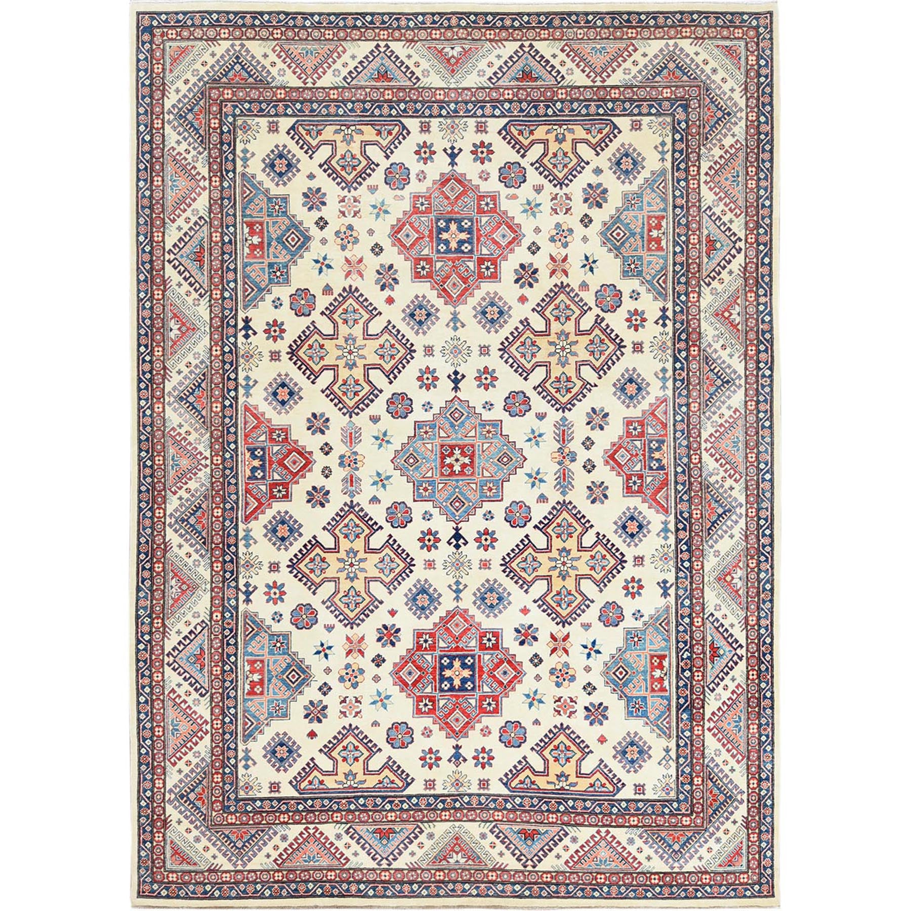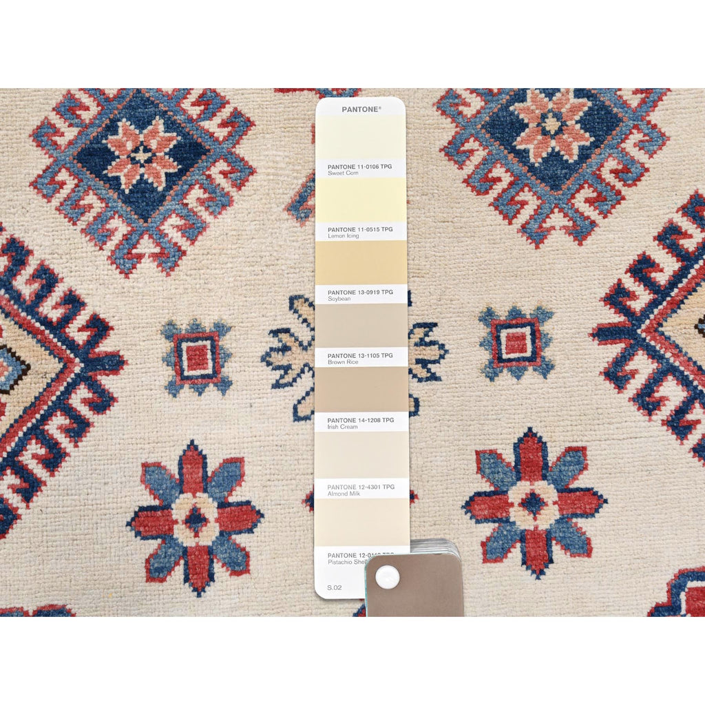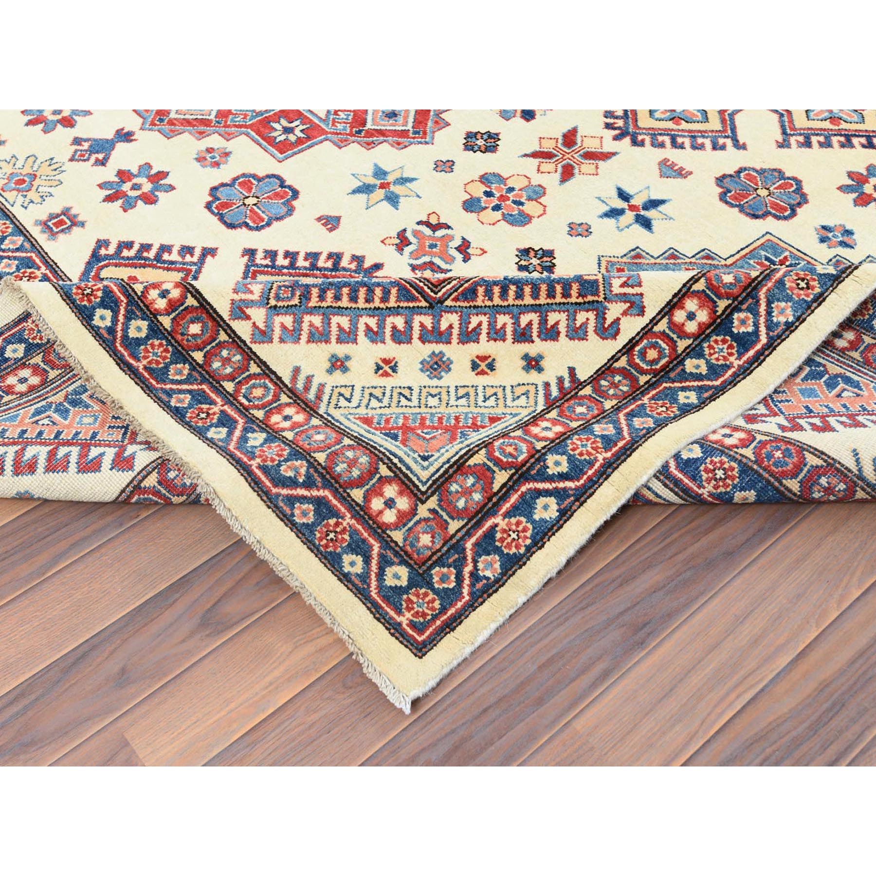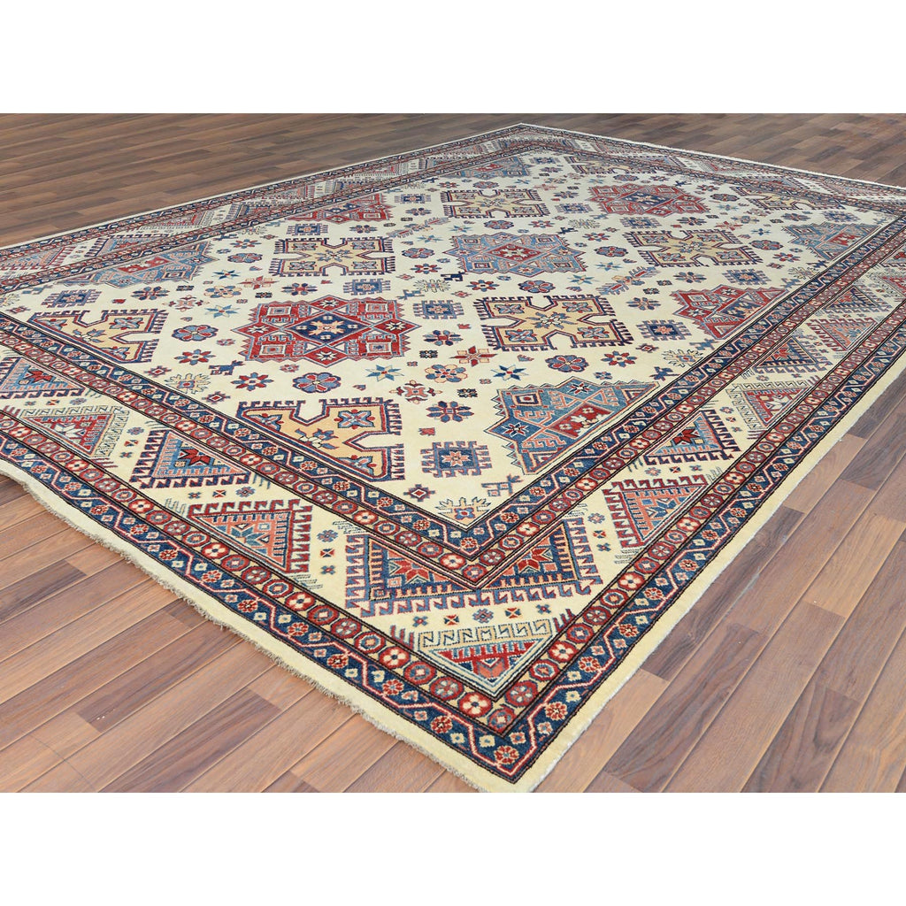 9'10"x13'8" Ivory, Afghan Special Kazak With Geometric Caucasian Design, Extra Soft Wool, Hand Knotted, Oriental Rug FWR369216
