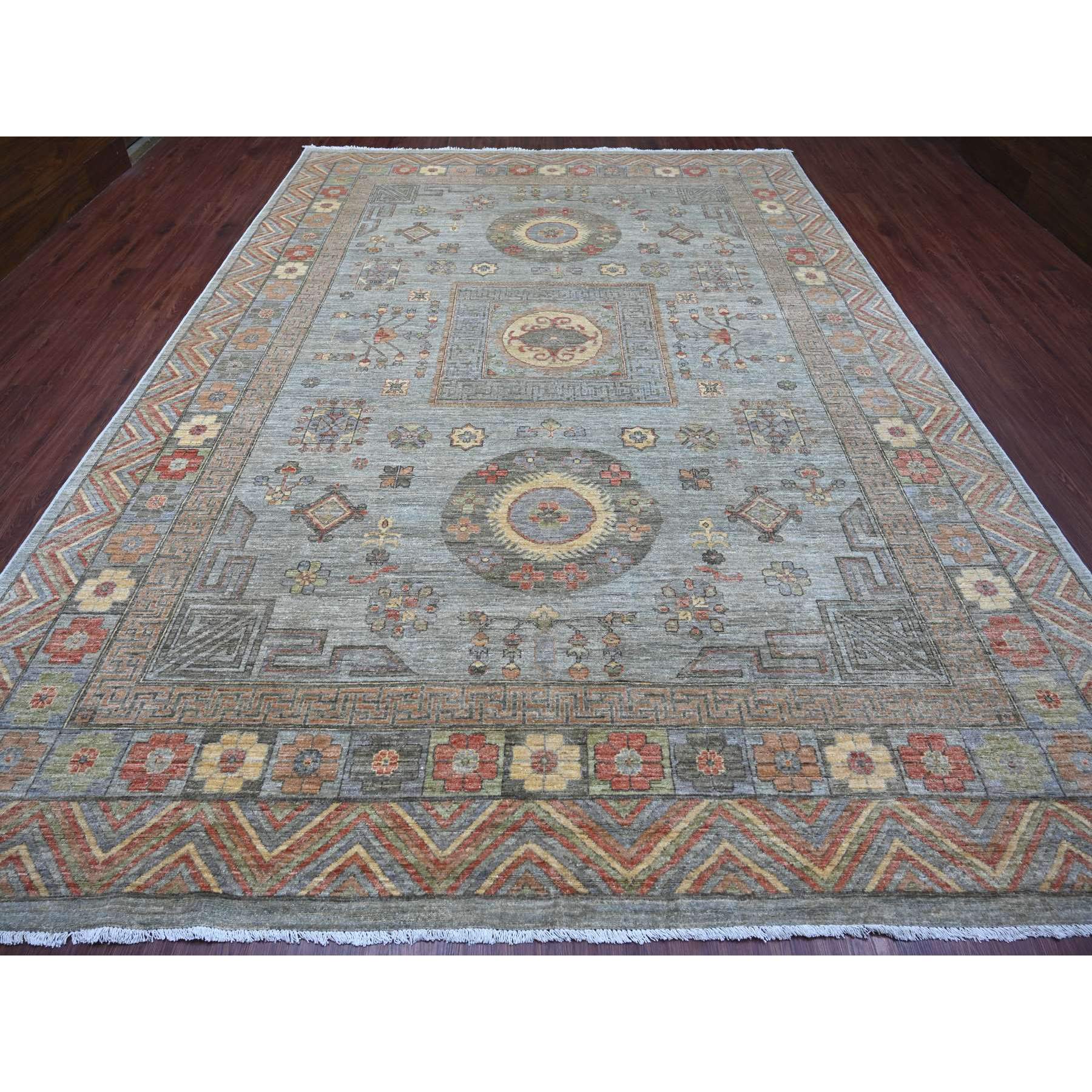 9'10"x13'9" Misty Gray, Peshawar With Khotan Design, Hand Knotted, Natural Dyes, Pure Wool, Oriental Rug FWR126258