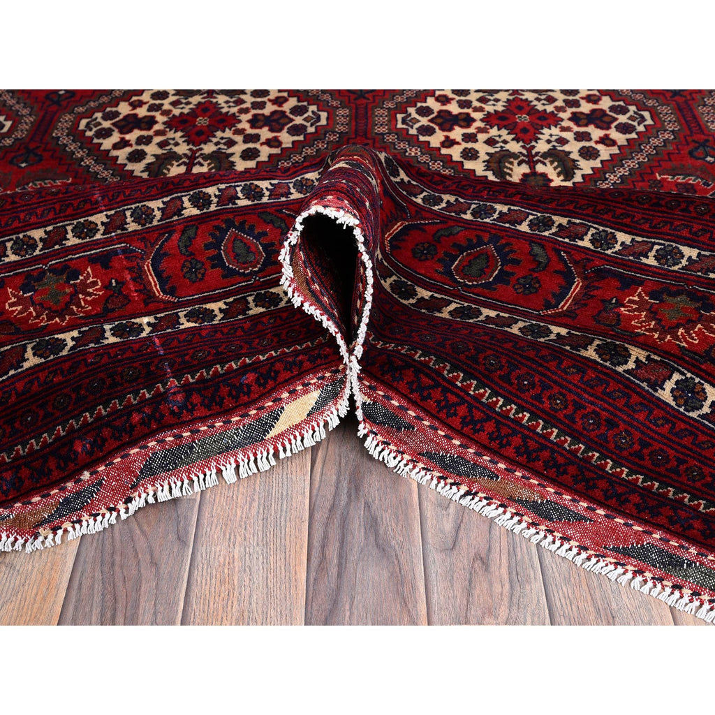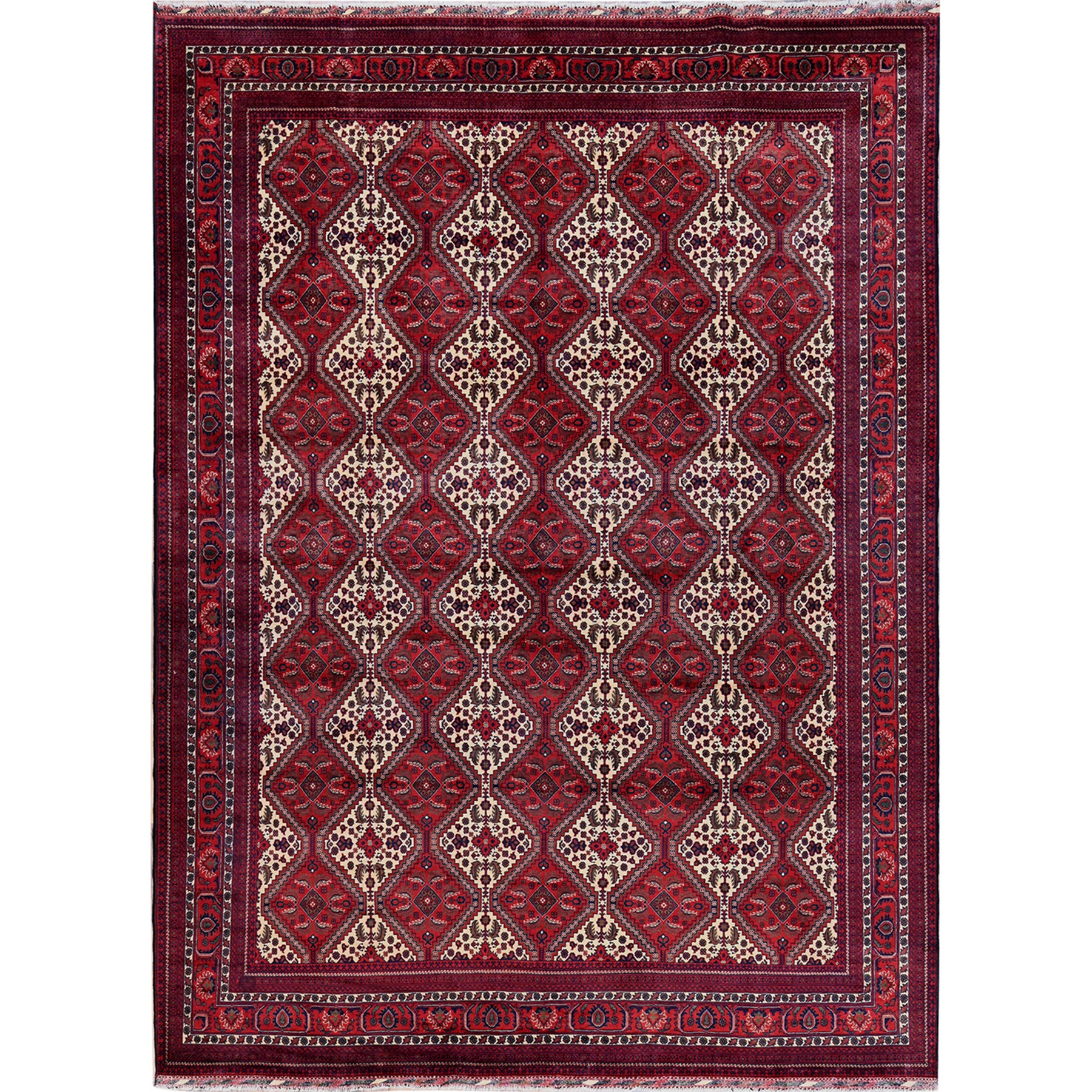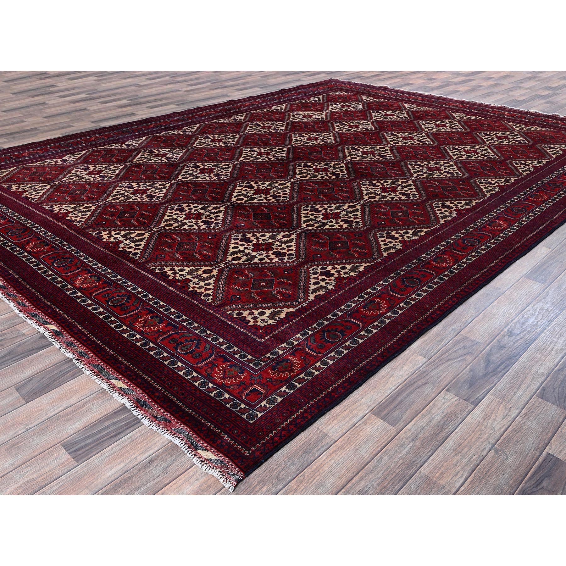 9'10"x13' Scarlet Red, Afghan Khamyab With Geometric Design, Hand Knotted, Soft And Velvety Wool, Vegetable Dyes, Oriental Rug FWR4596