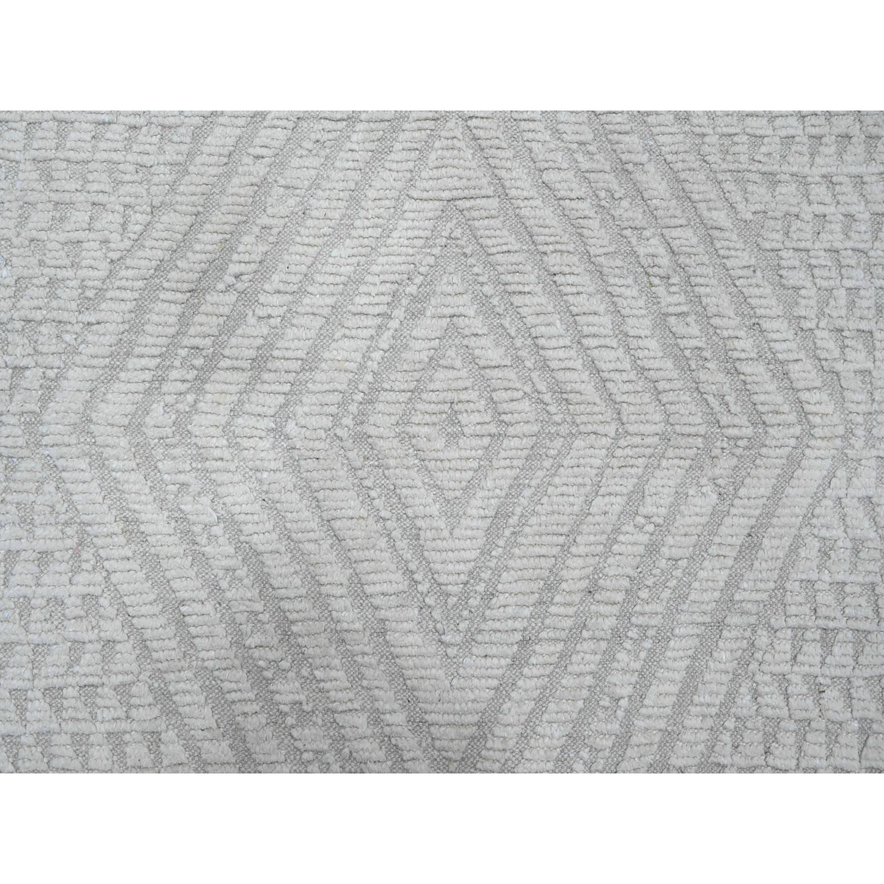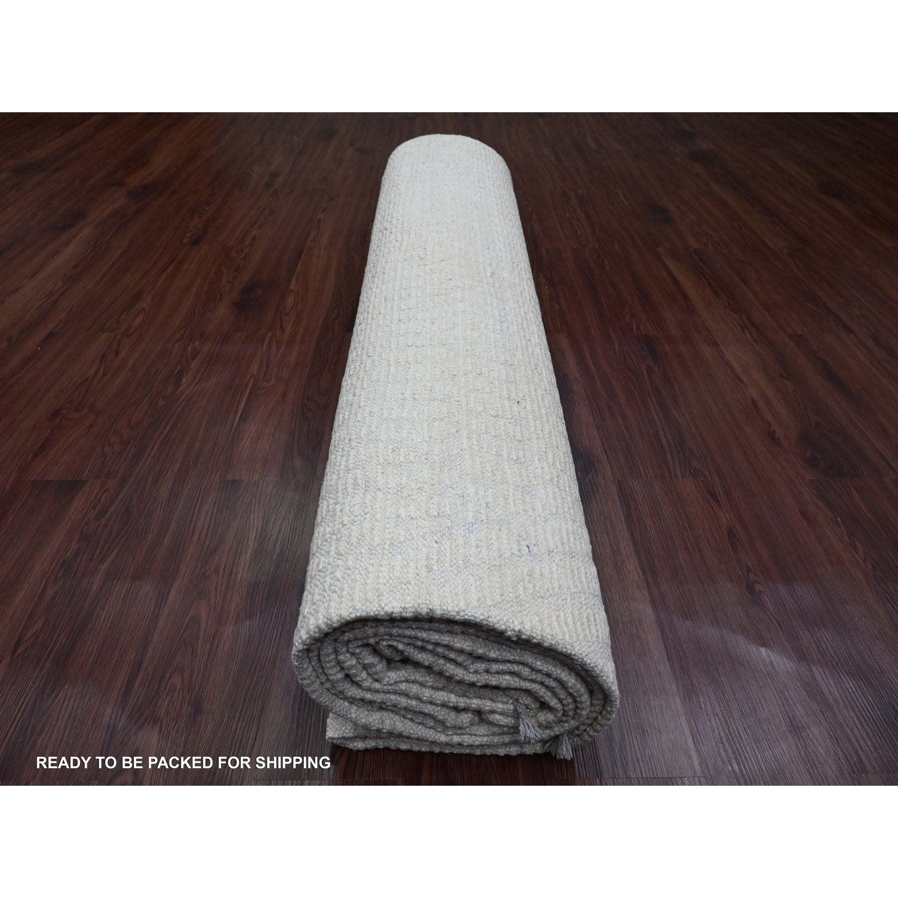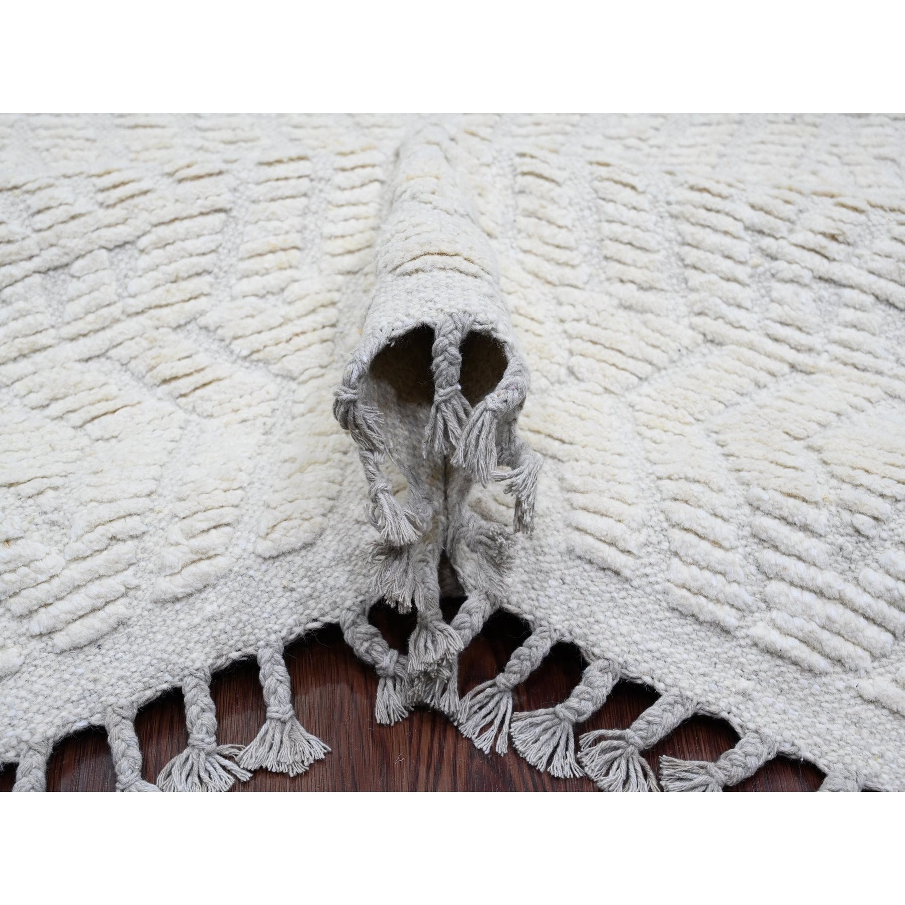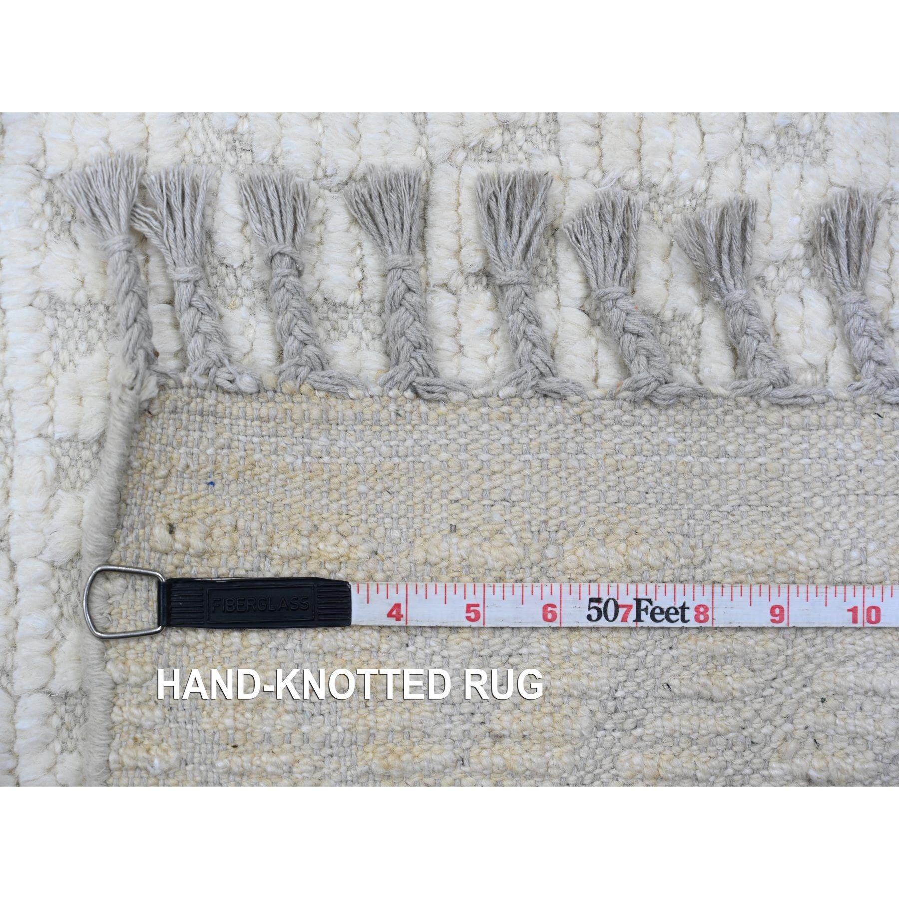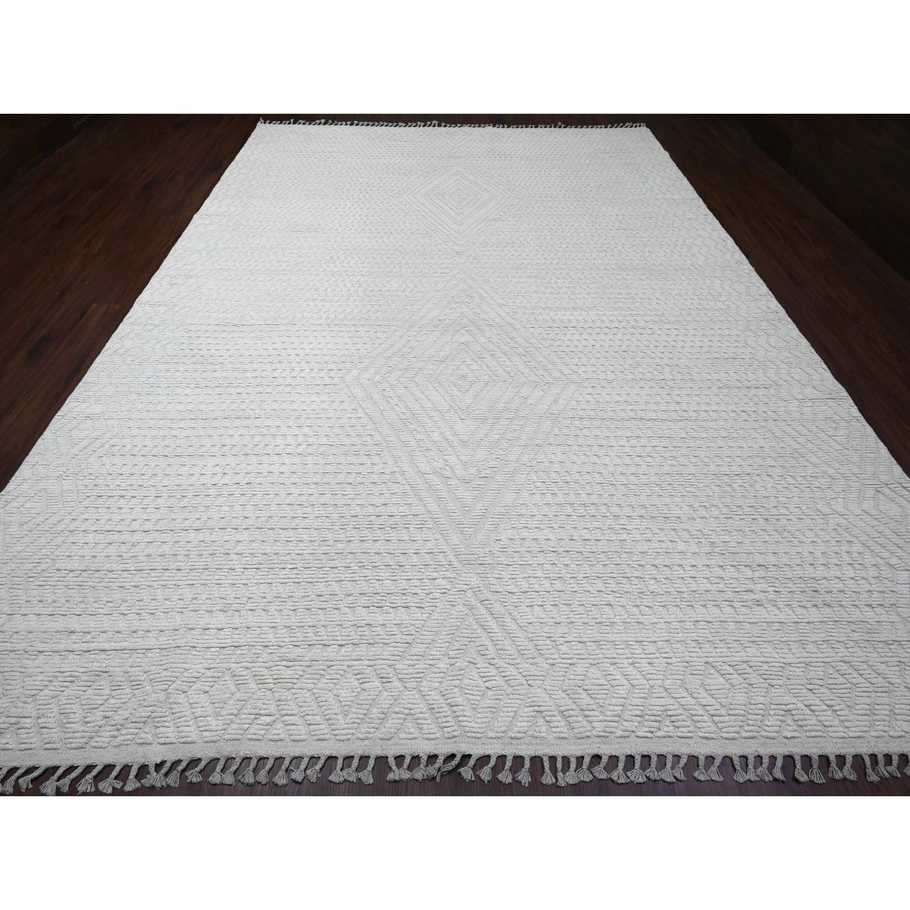 9'10"x14'1" Pearl White, Moroccan Weave, Tone On Tone, Intricate Diamond Pattern, Hand Knotted, 100% Wool, Oriental Rug FWR120480