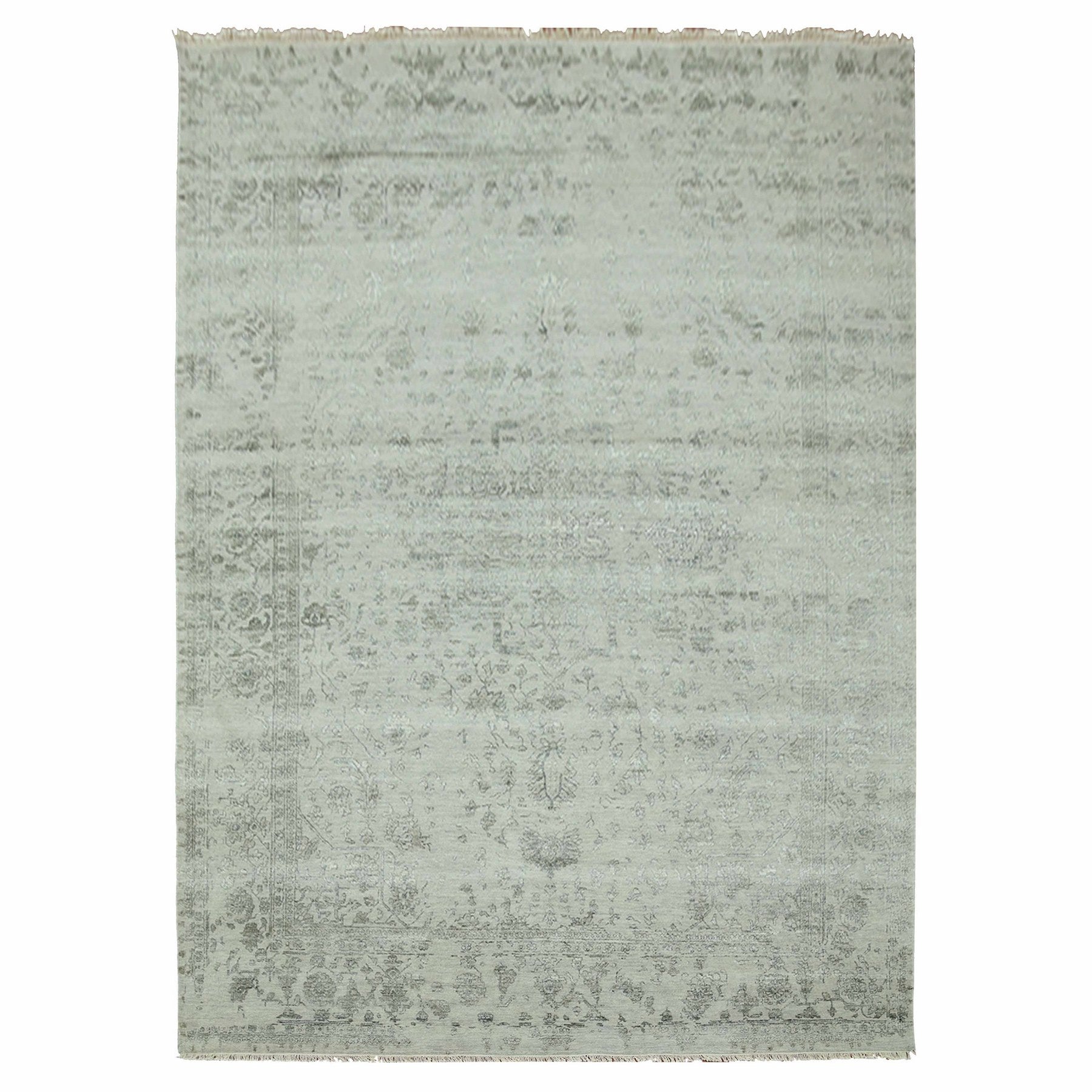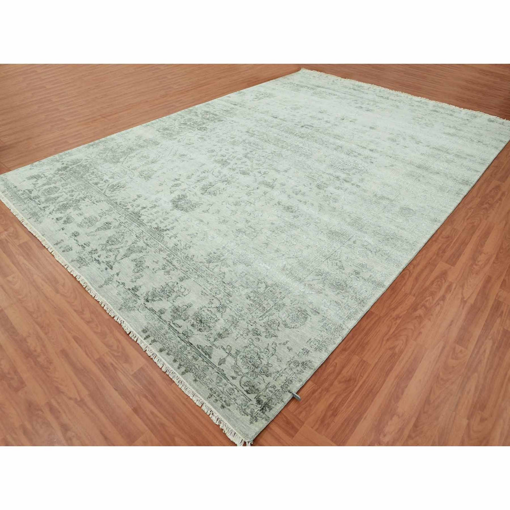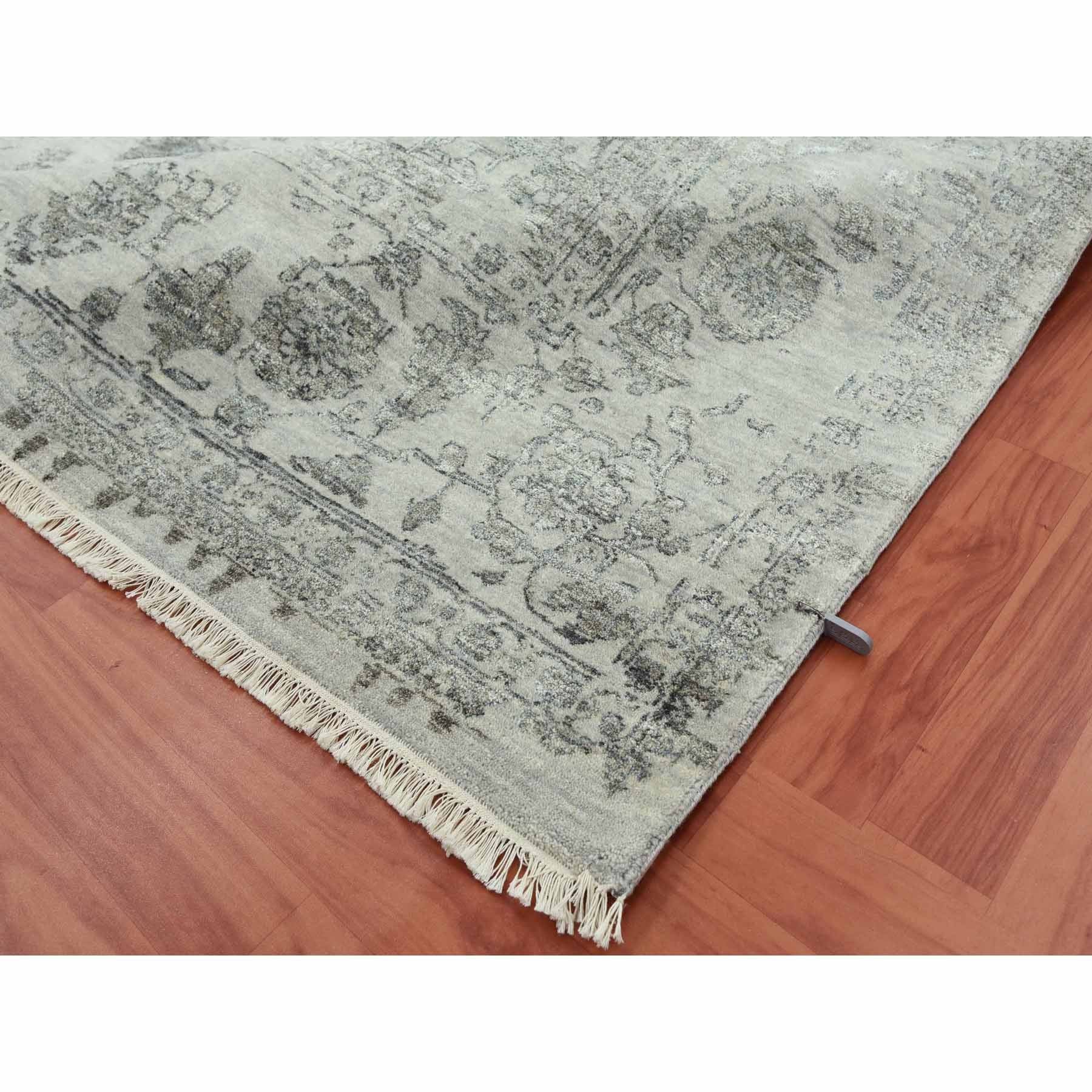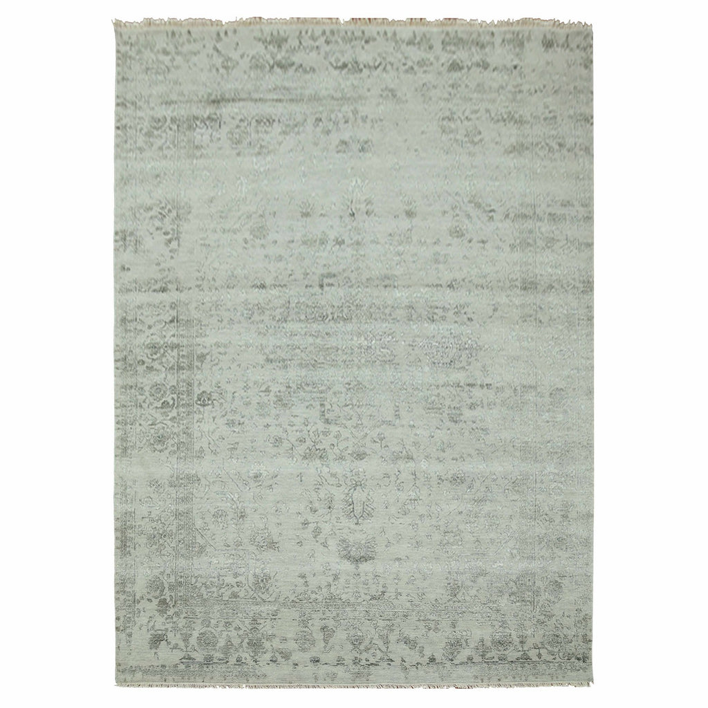 9'10"x14'3" Gainsboro Gray, Wool And Silk Hand Knotted, Broken Persian Erased Heriz Design, Oriental Rug FWR475728