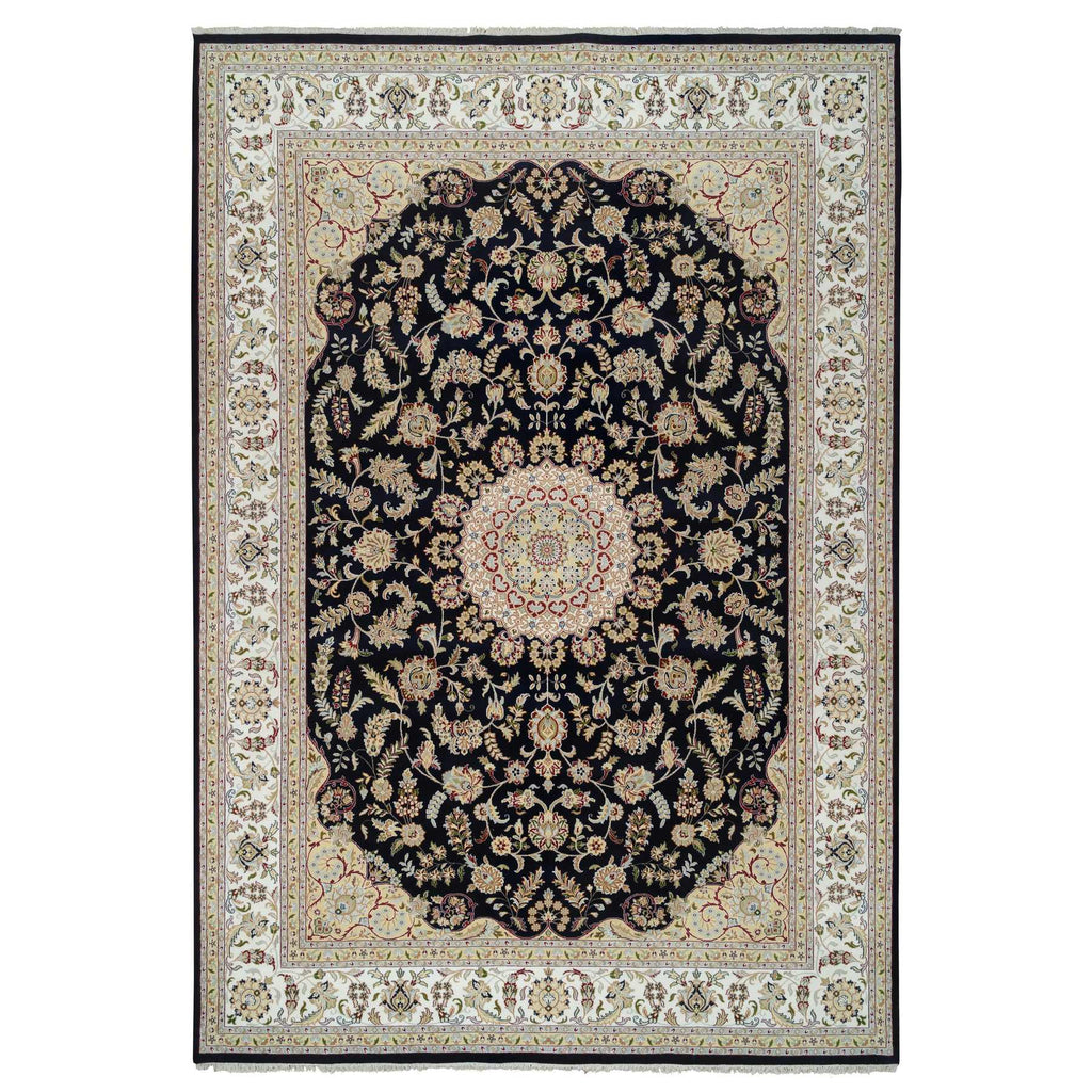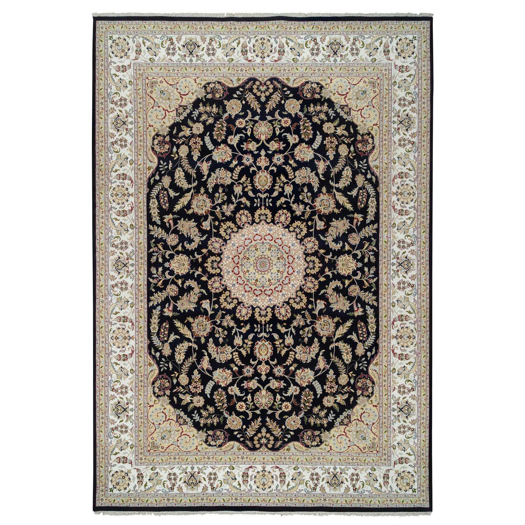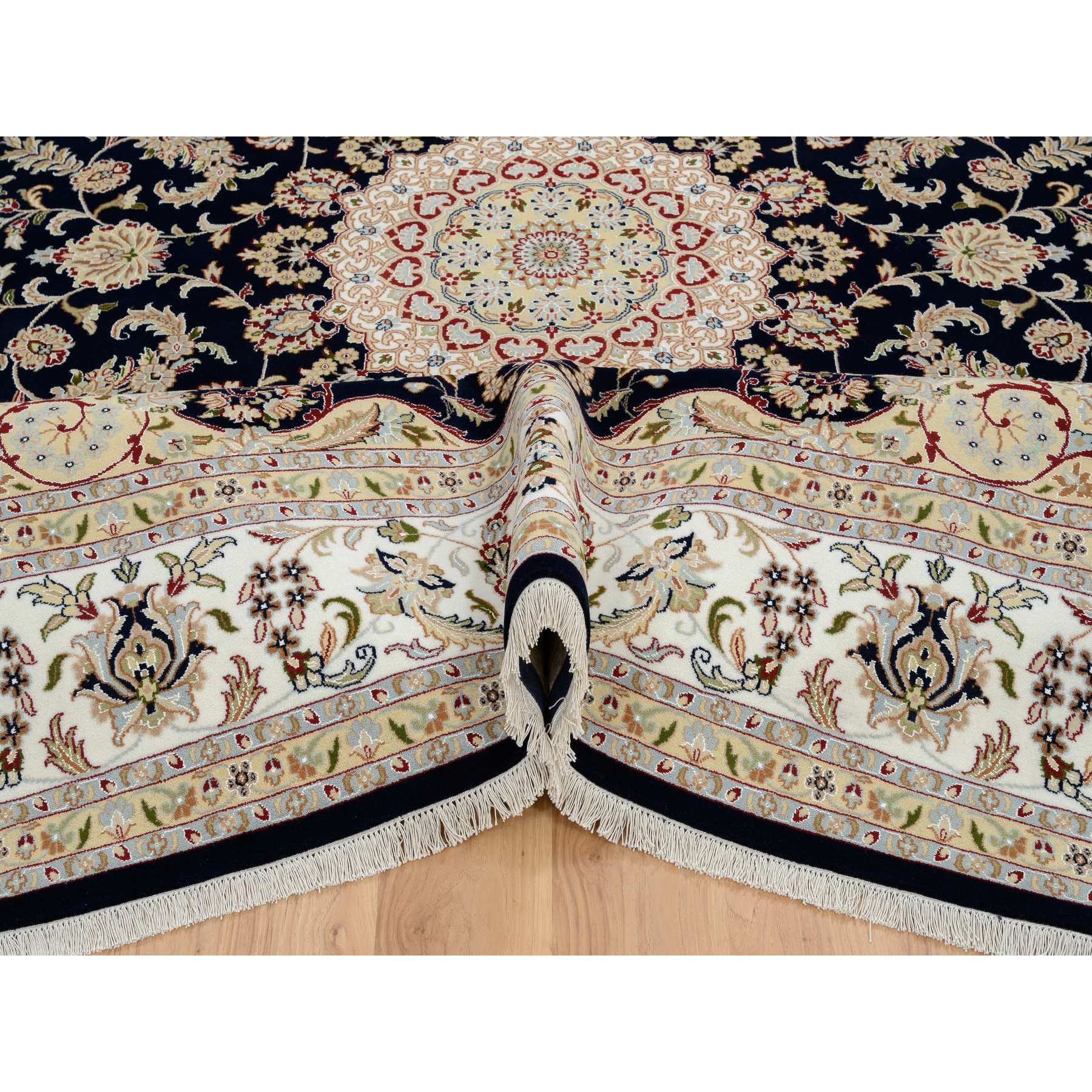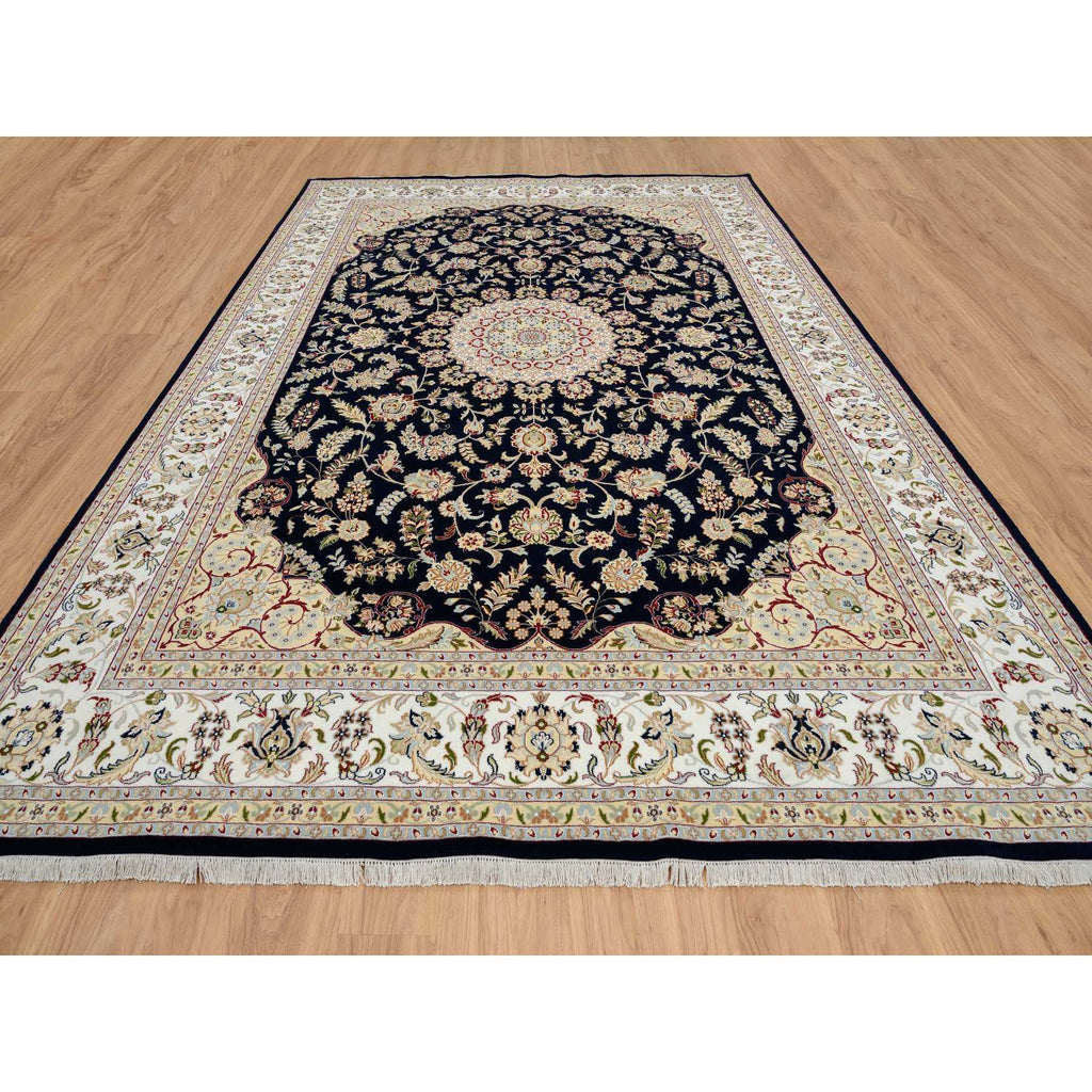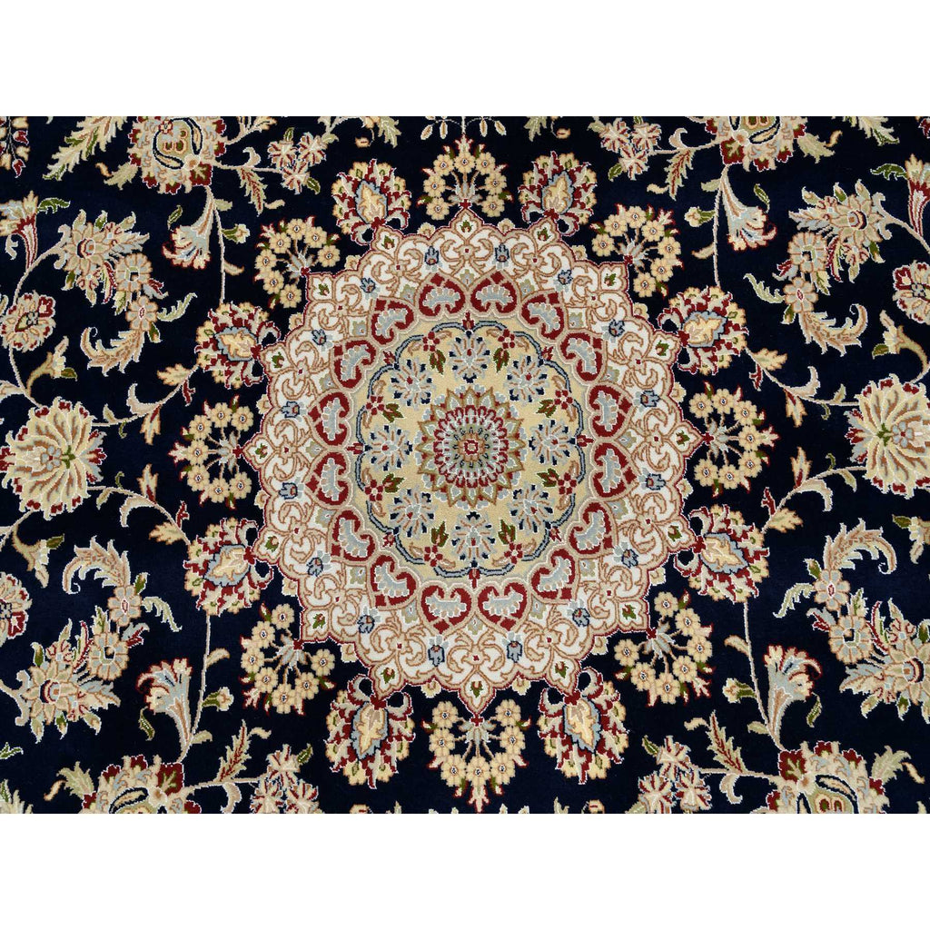 9'10"x14'3" Midnight Blue, Hand Knotted, Nain With Flower Medallion Design, Wool, 250 Kpsi, Oriental Rug FWR388464