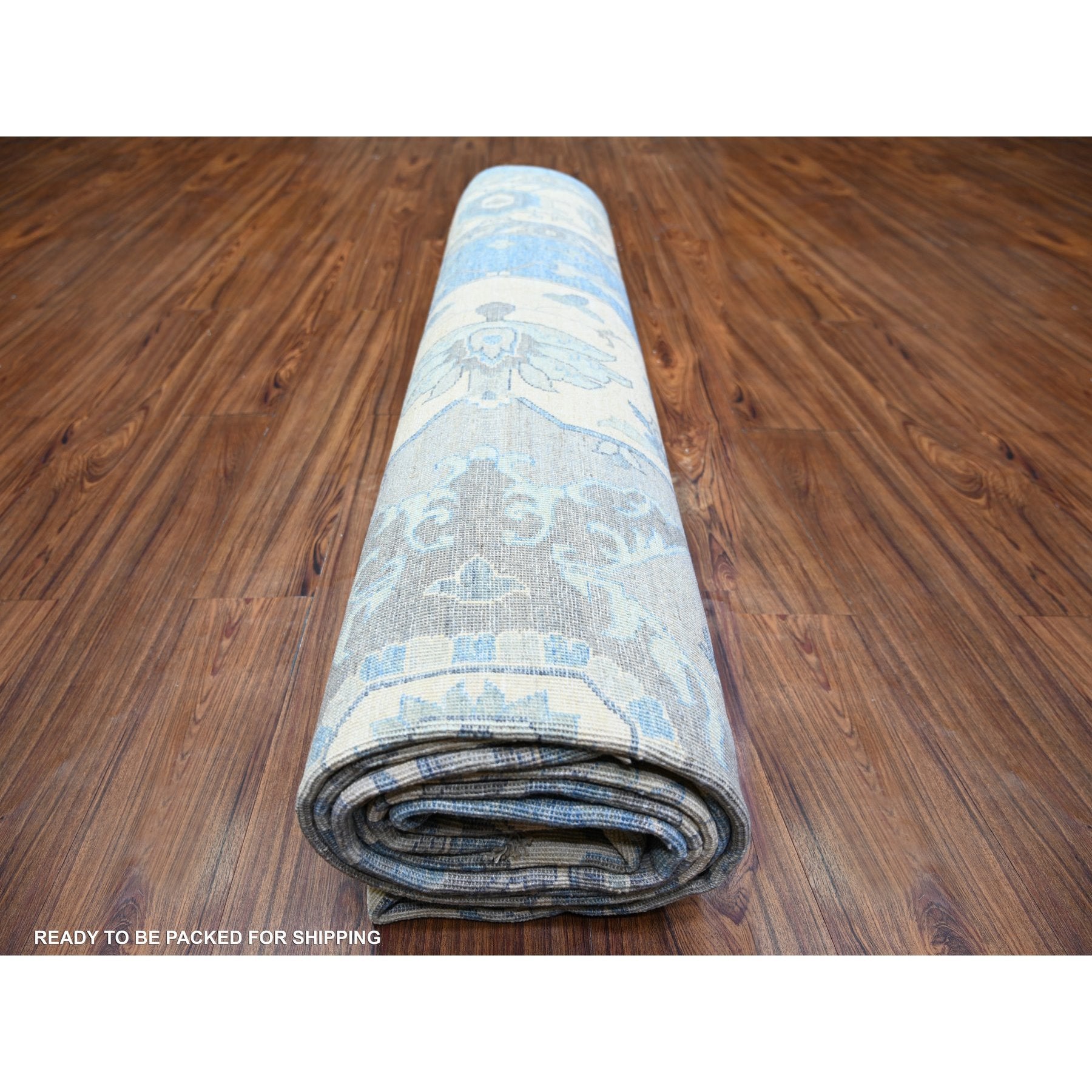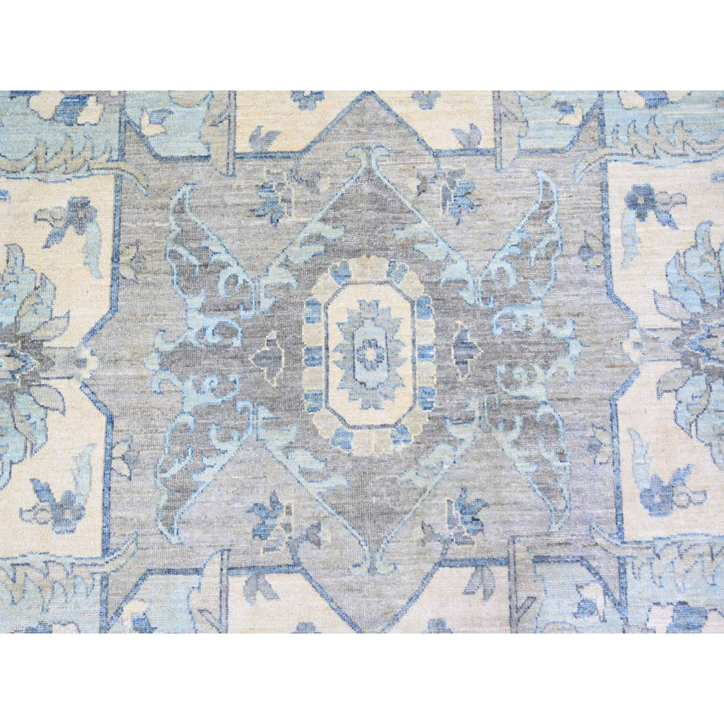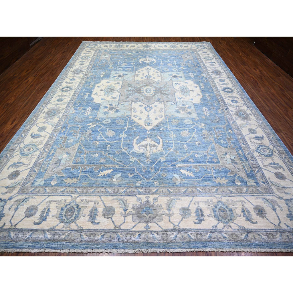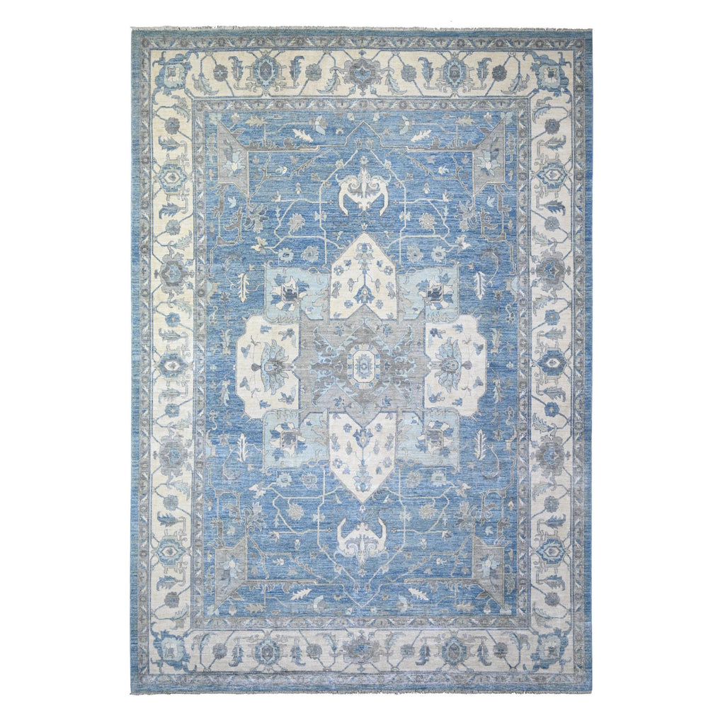 9'10"x14' Cerulean Blue, Vegetable Dyes Organic Wool, Hand Knotted Finer Peshawar With Heriz Medallion Design, Dense Weave, Oriental Rug FWR438774