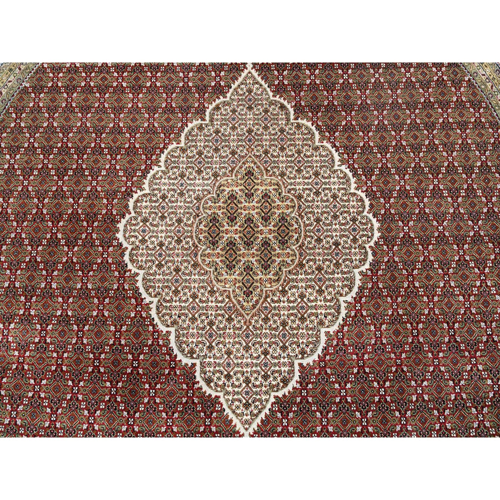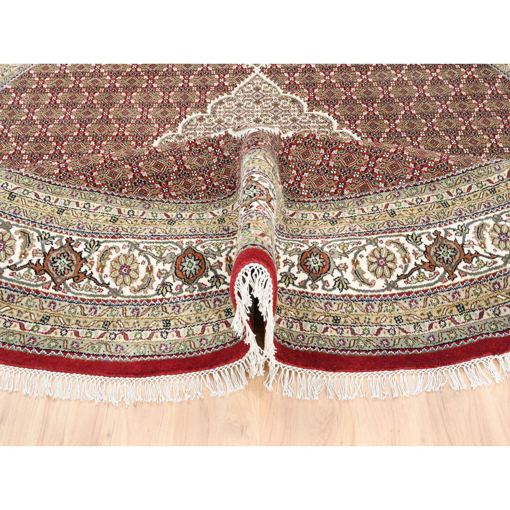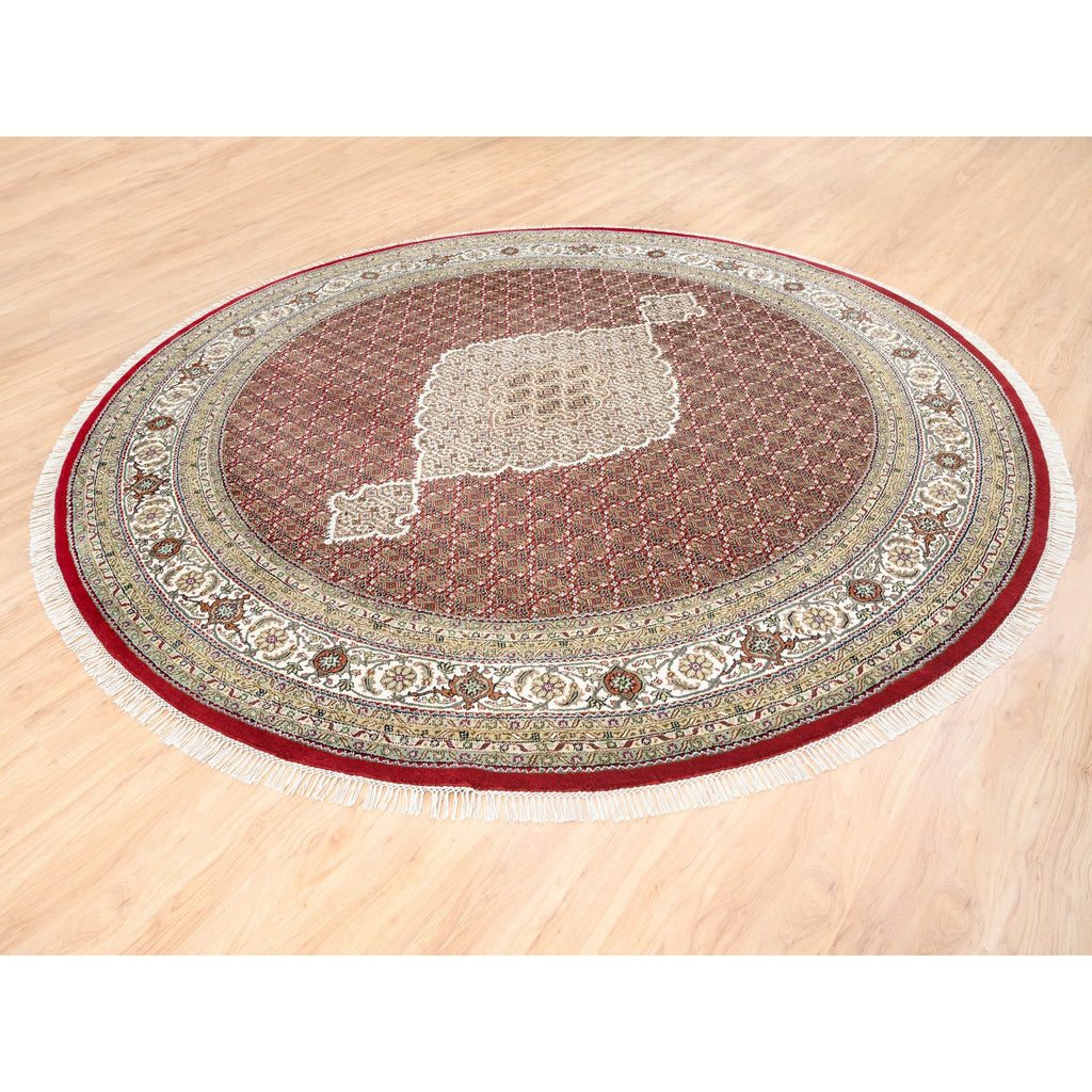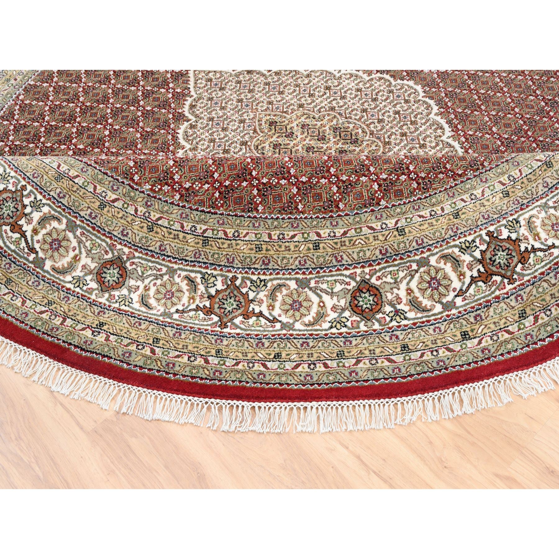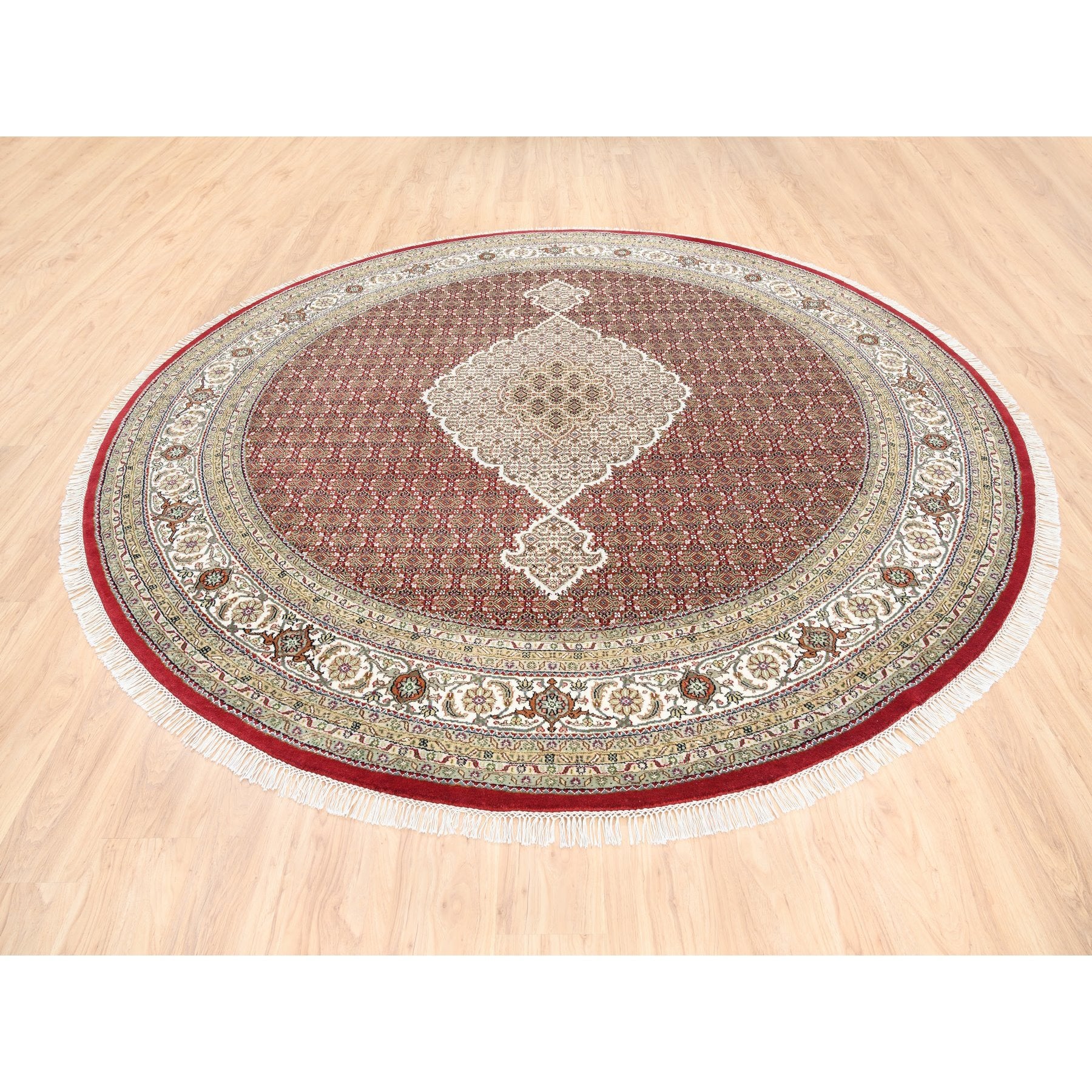 9'10"x9'10" Hand Knotted Red Tabriz Mahi Fish Medallion Design Wool Oriental Round Rug FWR375798