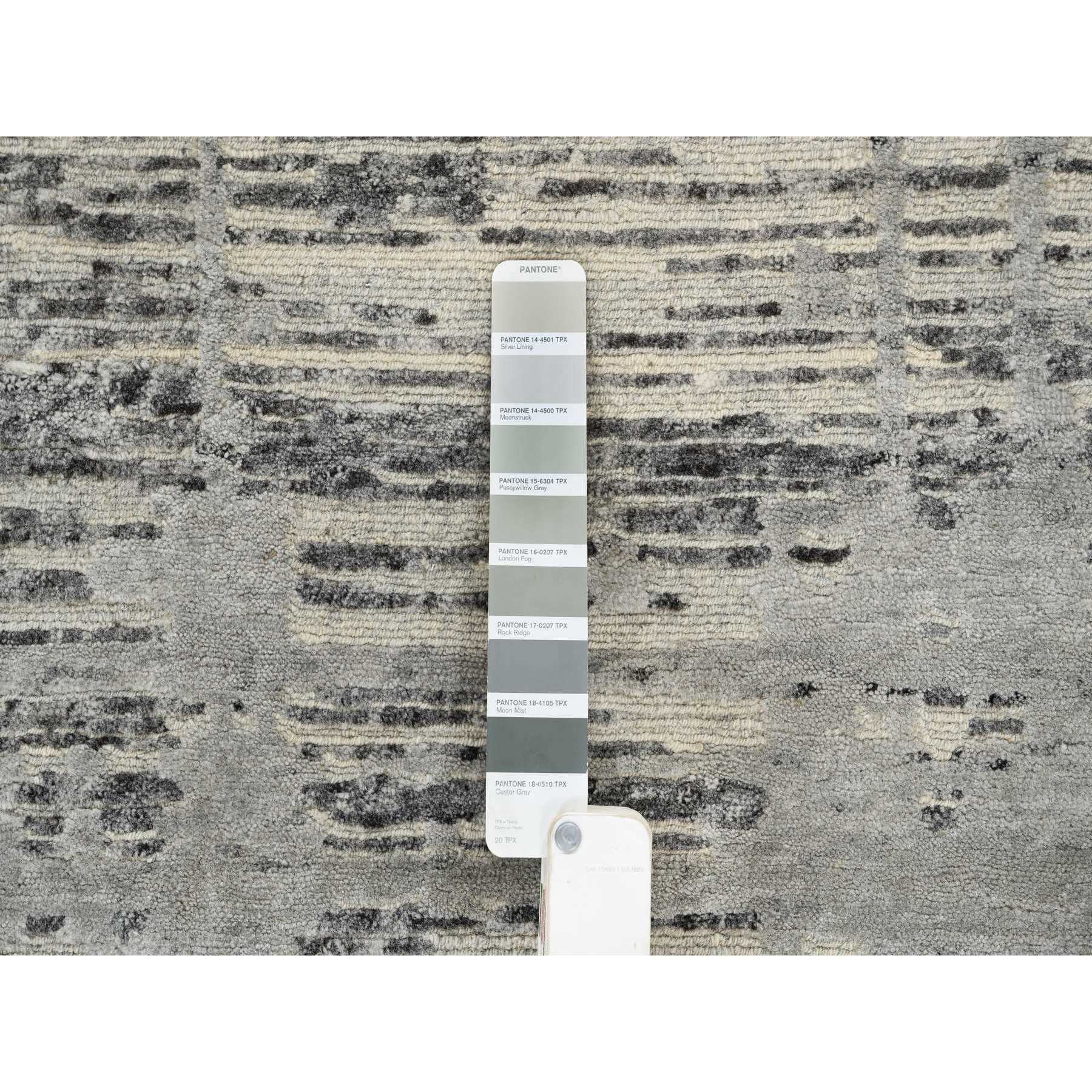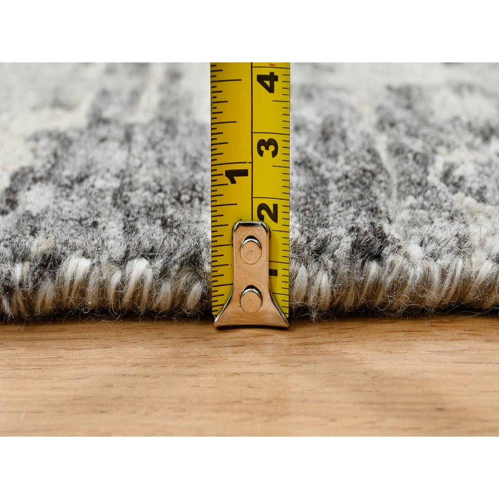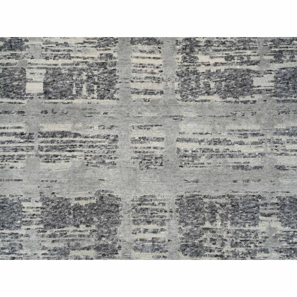 9'2"x11'10" Light Gray, Modern Criss Cross Erased Design, Hand Spun Undyed Natural Wool, Hand Knotted, Oriental Rug FWR388224