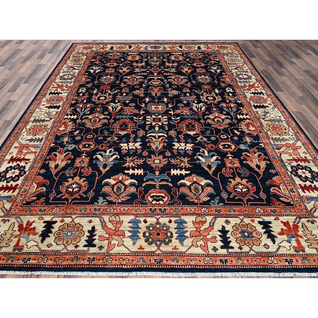 9'2"x11'10" Yale Blue, Northwest Persian All Over Design, Vegetable Dyes, Aryana Grade, Soft Pile, High Mountain Wool, Hand Knotted, Densely Woven, Oriental Rug FWR6594