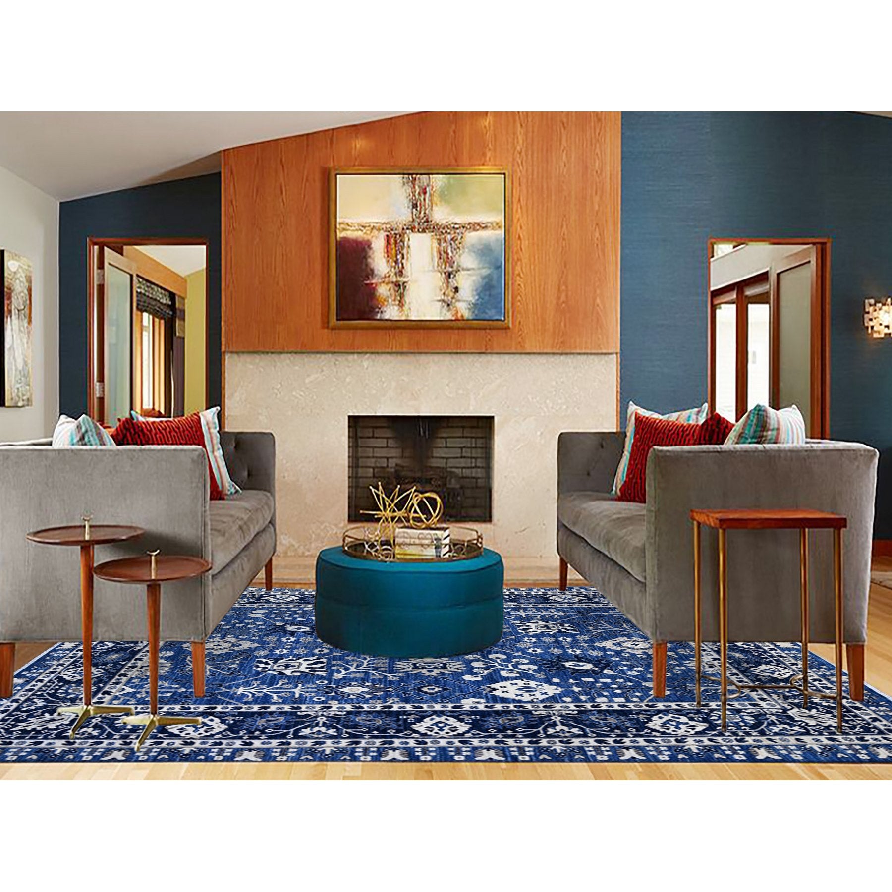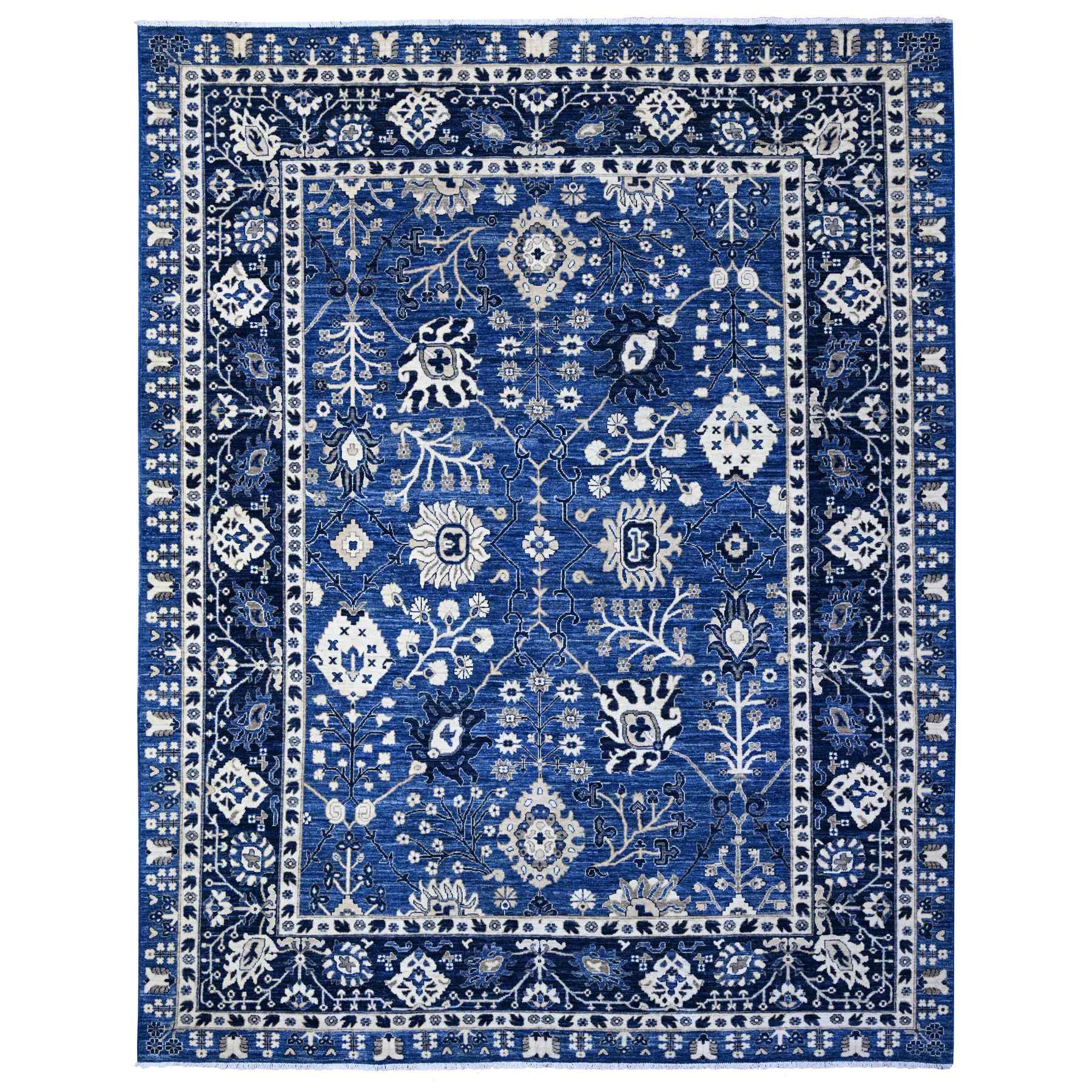 9'2"x11'6" Blue Yonder, Vegetable Dyes, Soft Wool, Fine Peshawar With All Over Mahal Design, Hand Knotted, Oriental Rug FWR537984