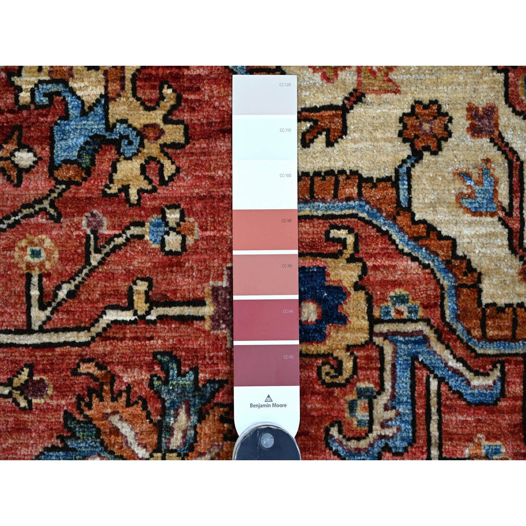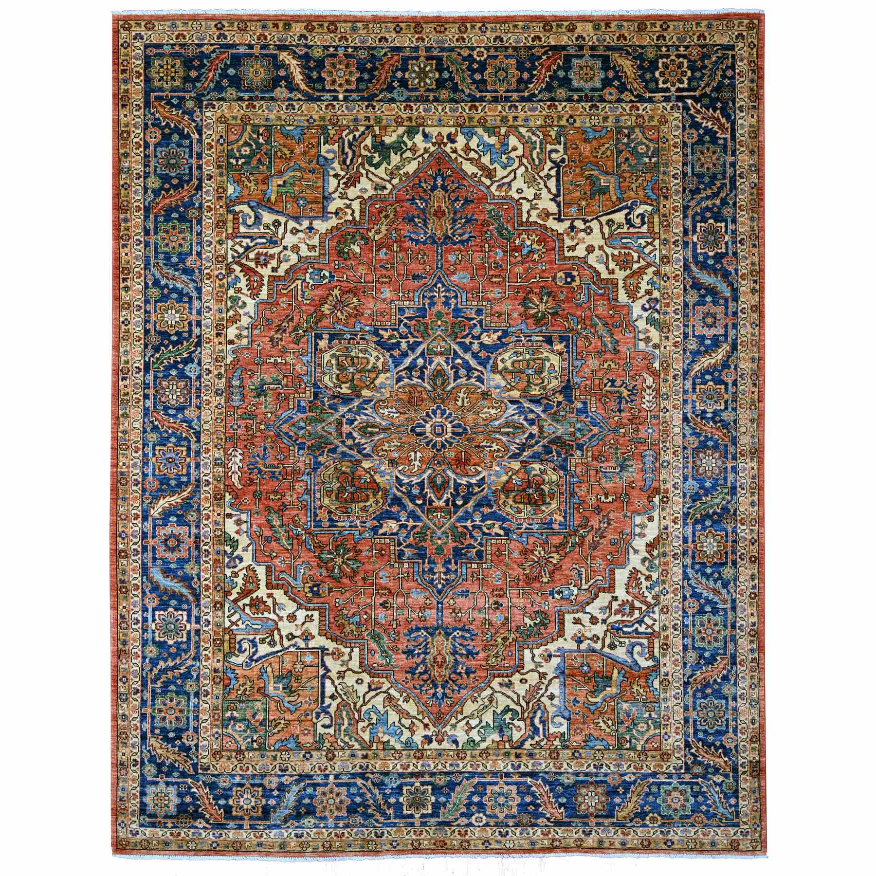 9'2"x11'7" Crimson Red, Aryana Grade, Serapi Heriz With Large Medallion Design, Vegetable Dyes, High Mountain Wool, Hand Knotted, Soft Pile, Densely Woven, Oriental Rug FWR126684