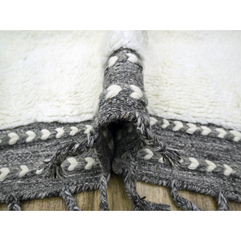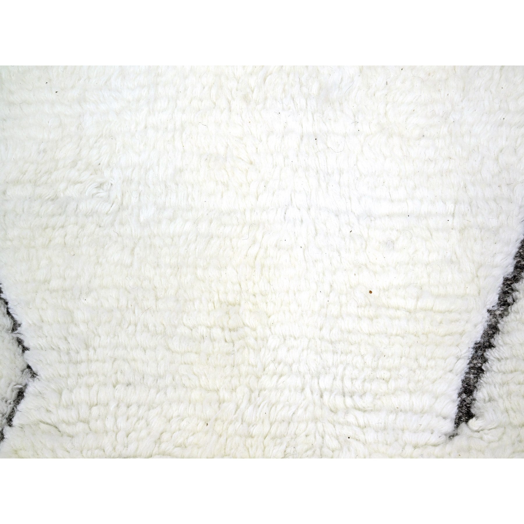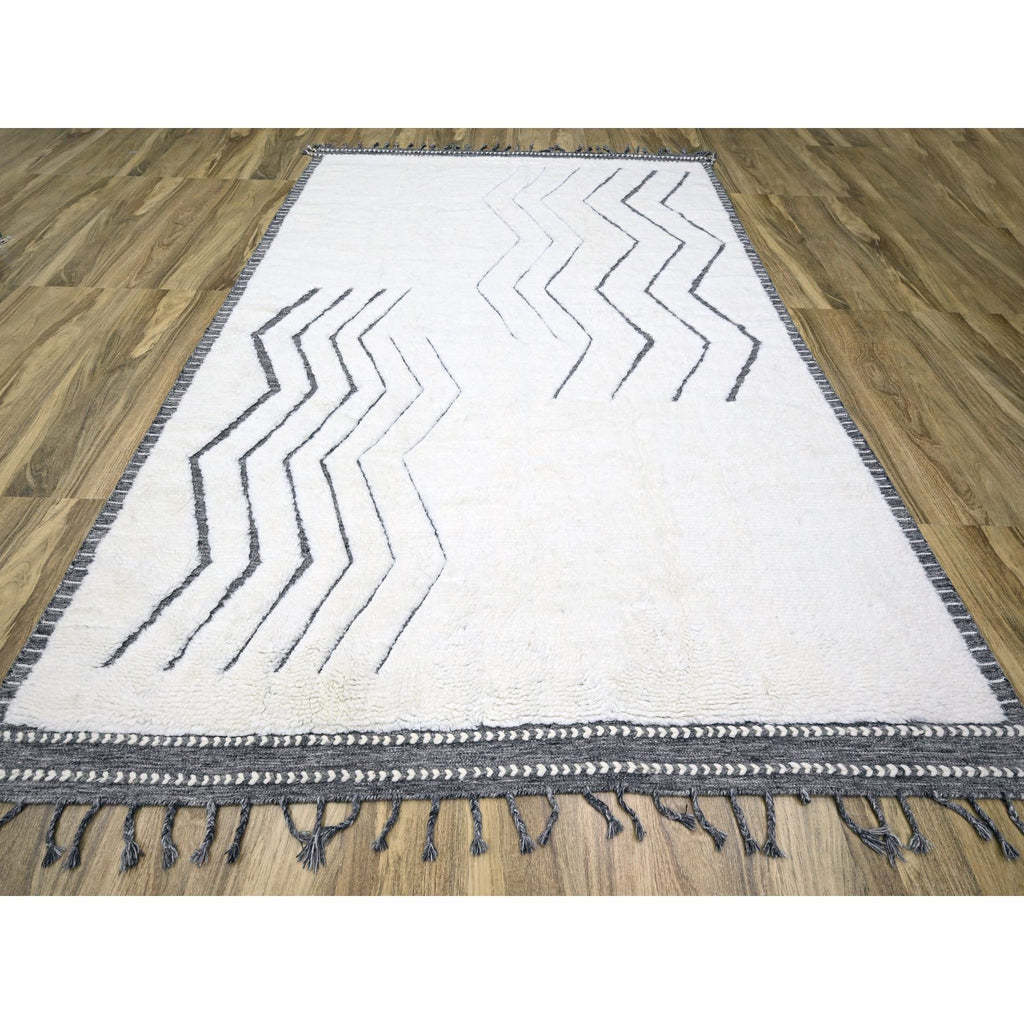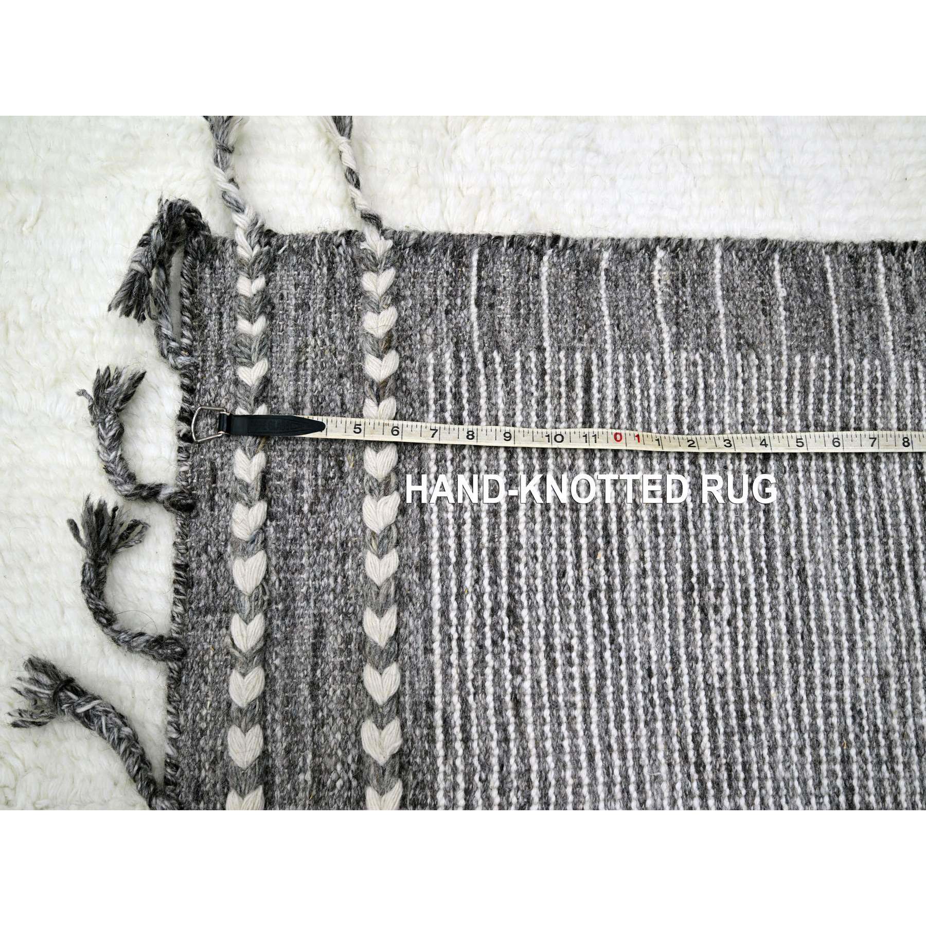 9'2"x12'1" Daisy White, Moroccan Weave With Geometric Line Design, Modern, Textured Pile, Natural Undyed Wool, Shabby Chic, Hand Knotted, Oriental Rug FWR457332