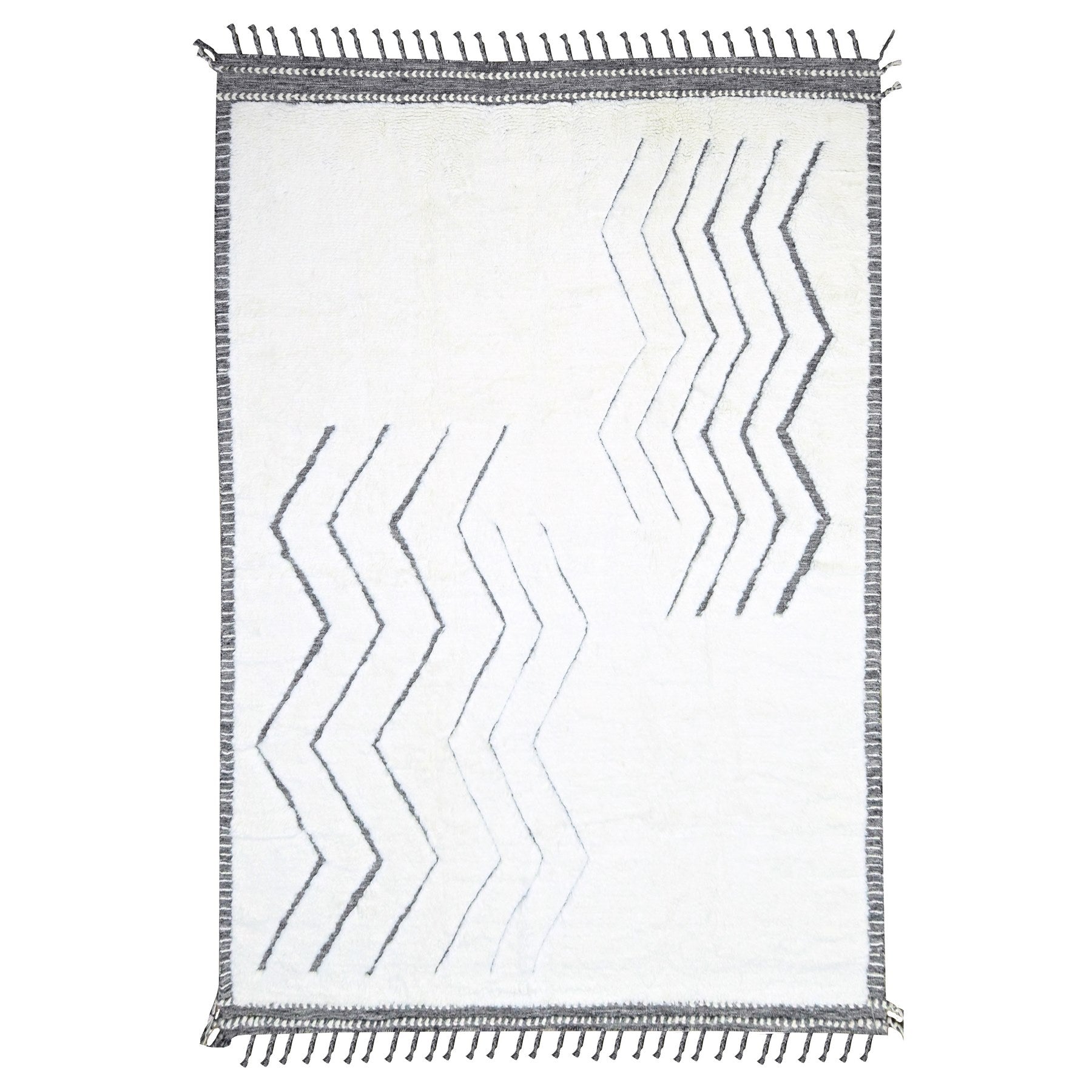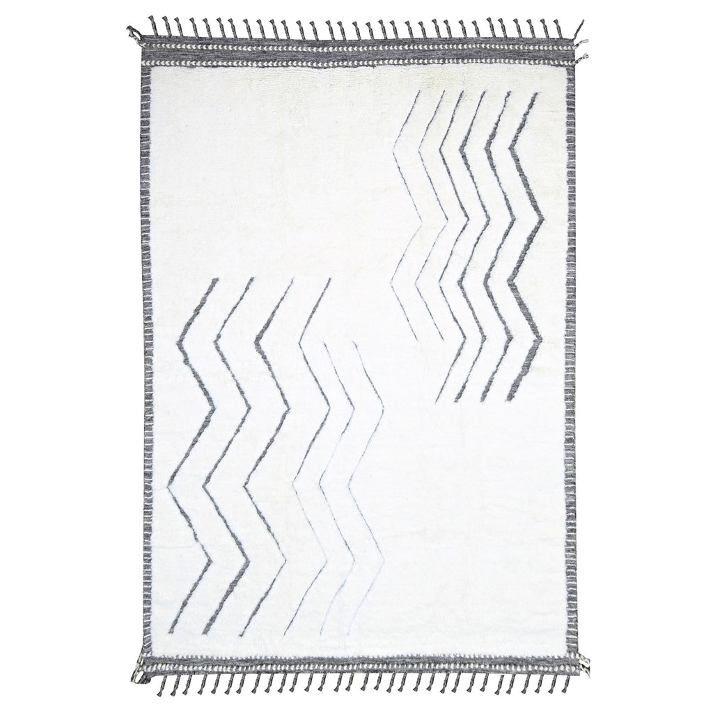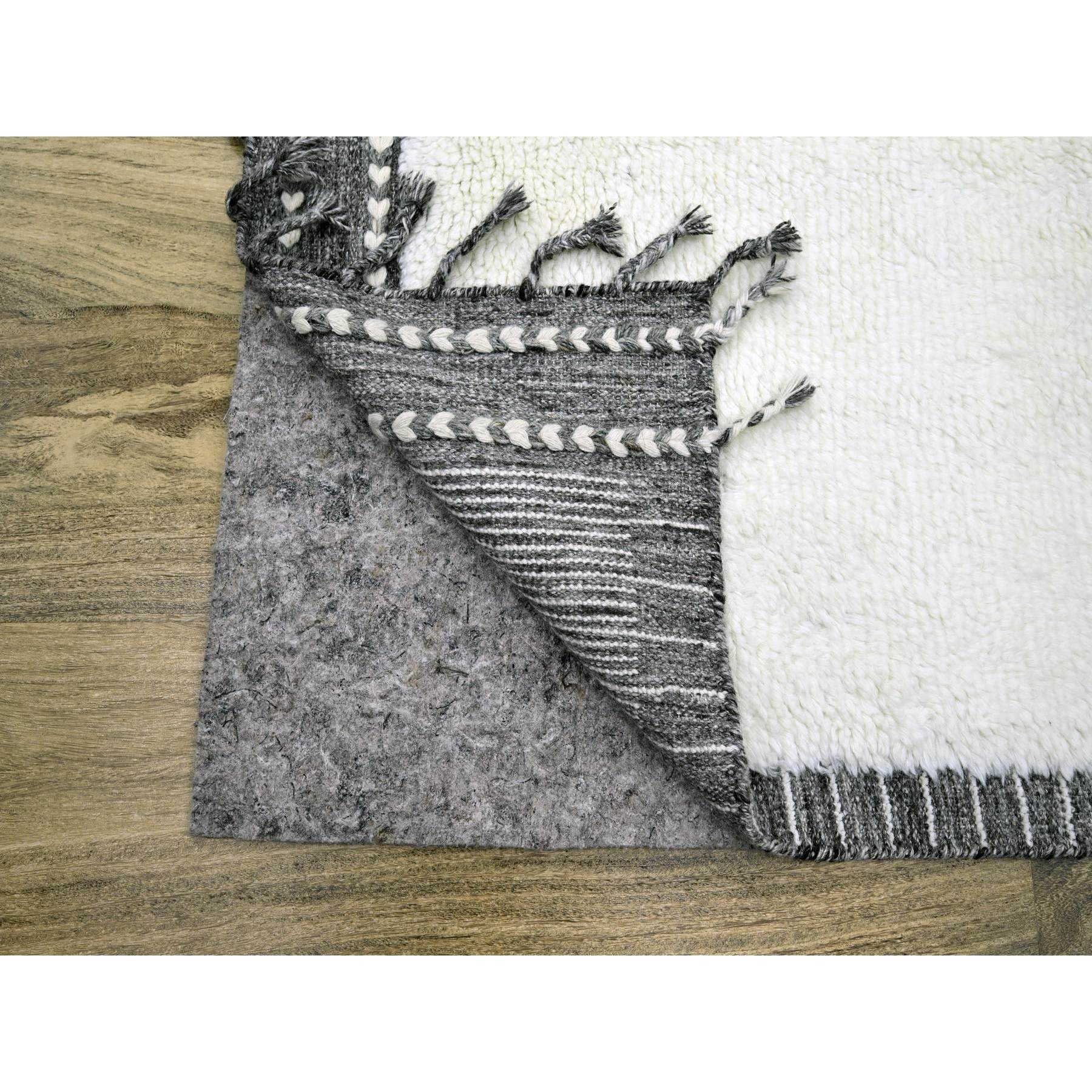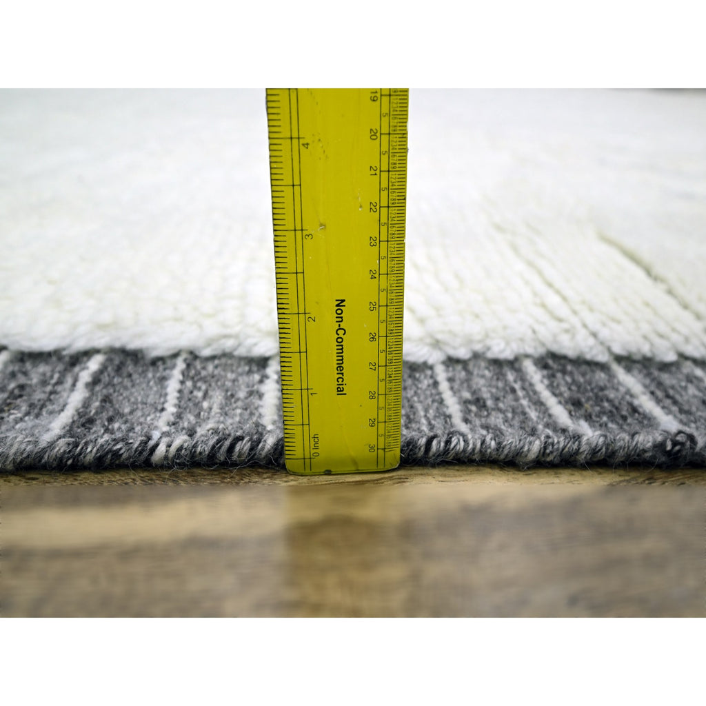 9'2"x12'1" Daisy White, Moroccan Weave With Geometric Line Design, Modern, Textured Pile, Natural Undyed Wool, Shabby Chic, Hand Knotted, Oriental Rug FWR457332