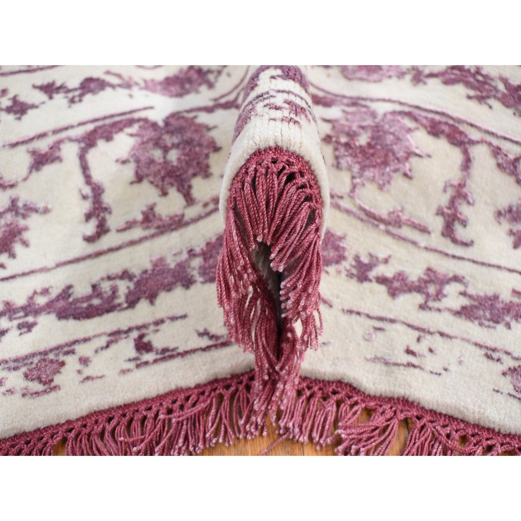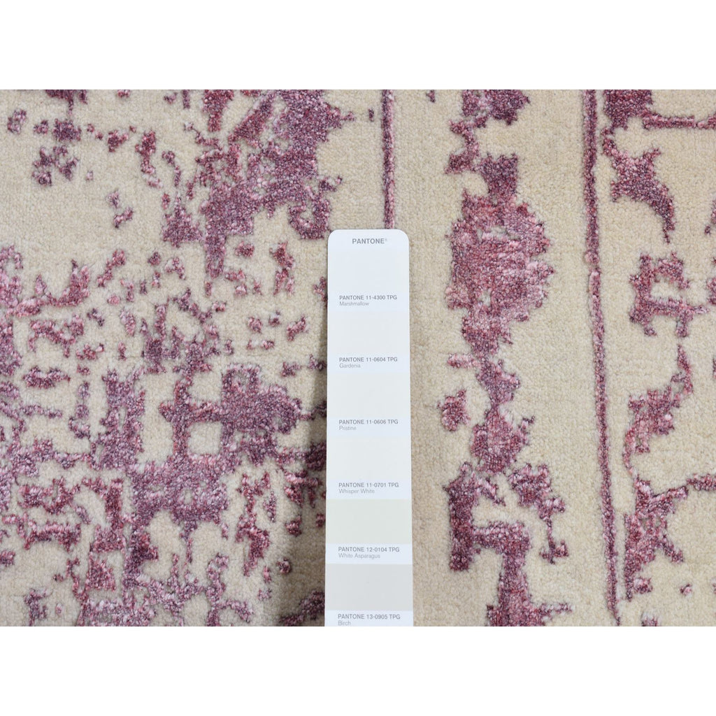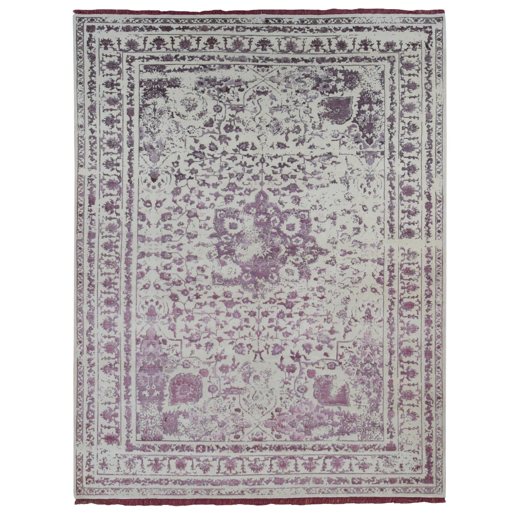 9'2"x12'1" Ivory, Wool And Silk, Handmade, Broken And Erased Persian Medallion Design, Oriental Rug FWR485460
