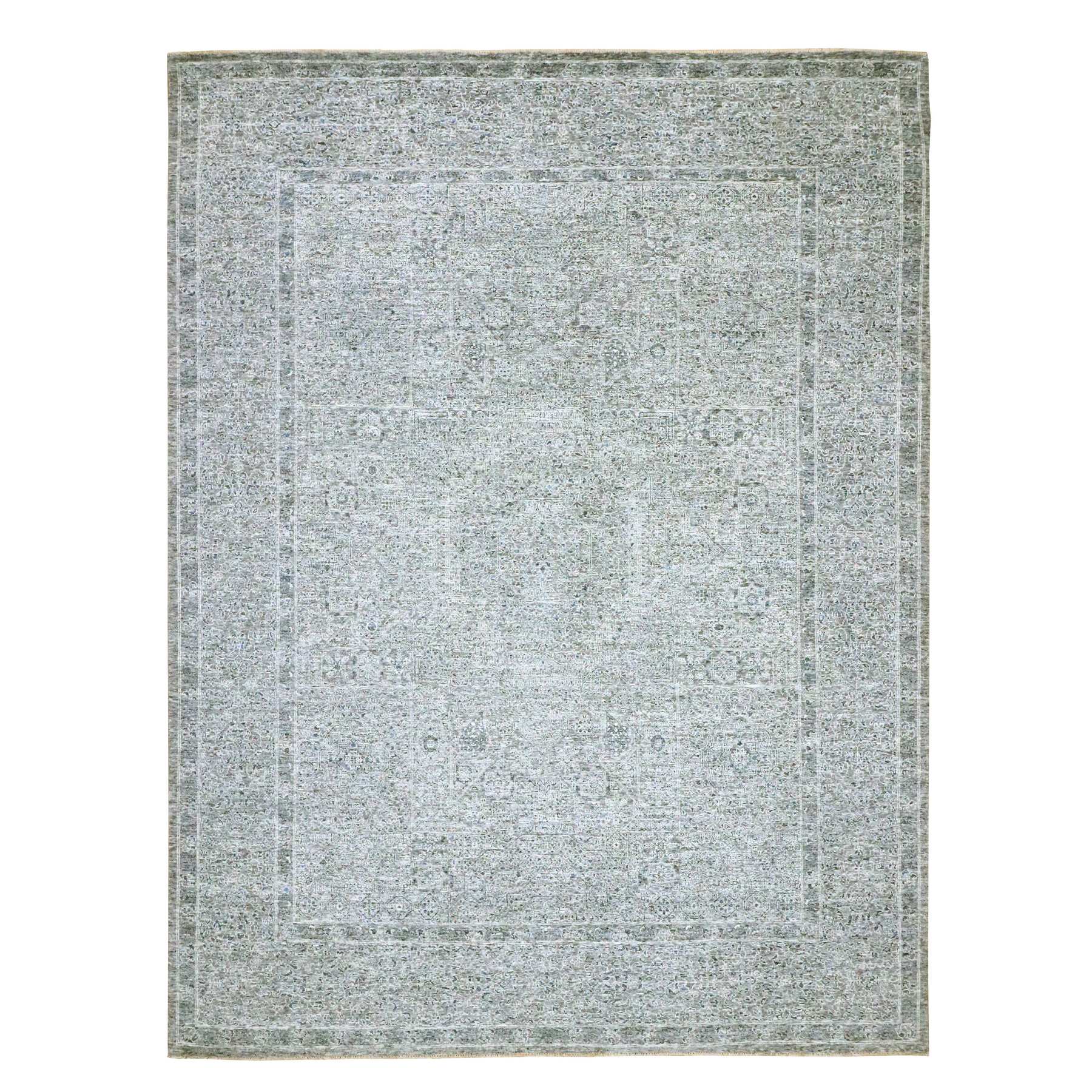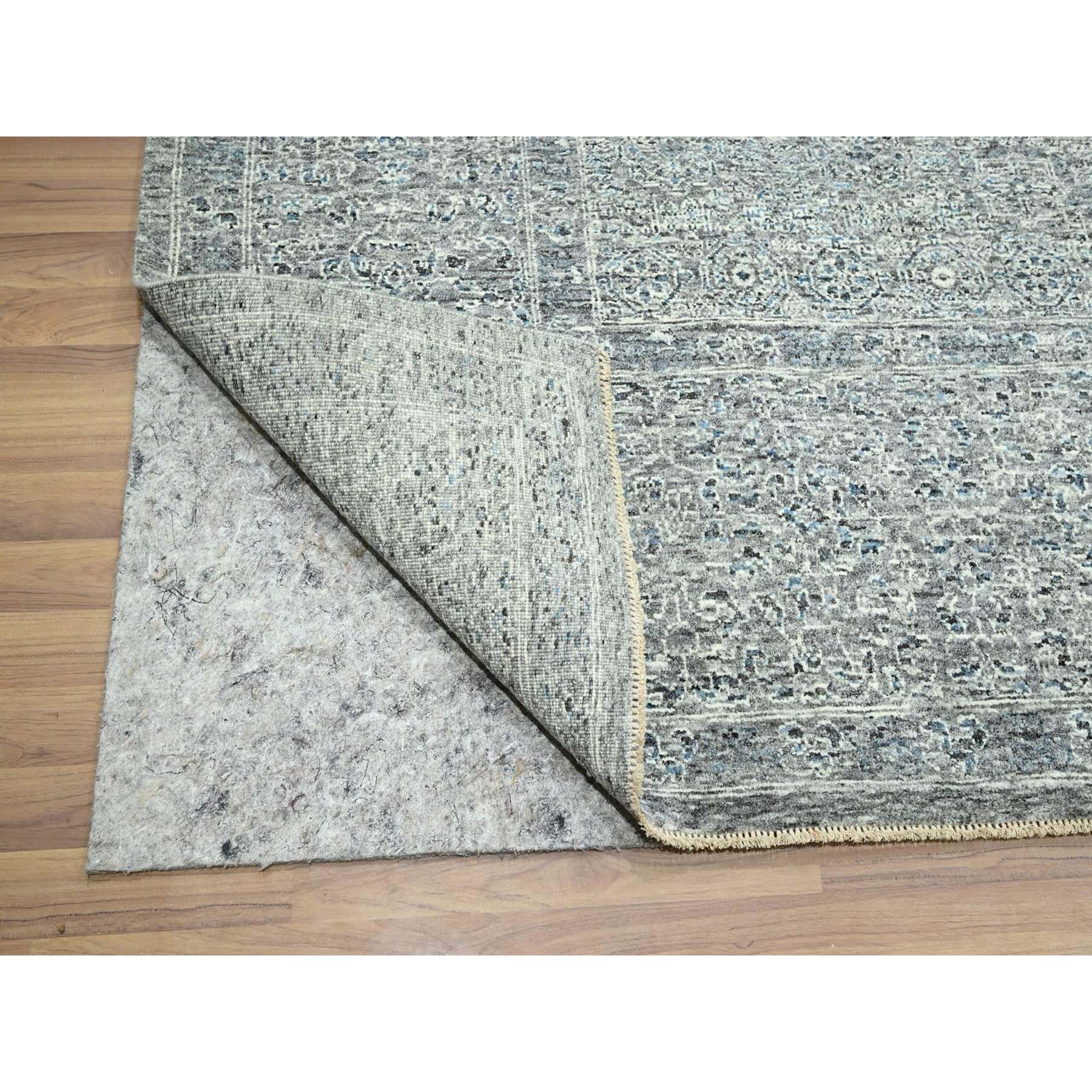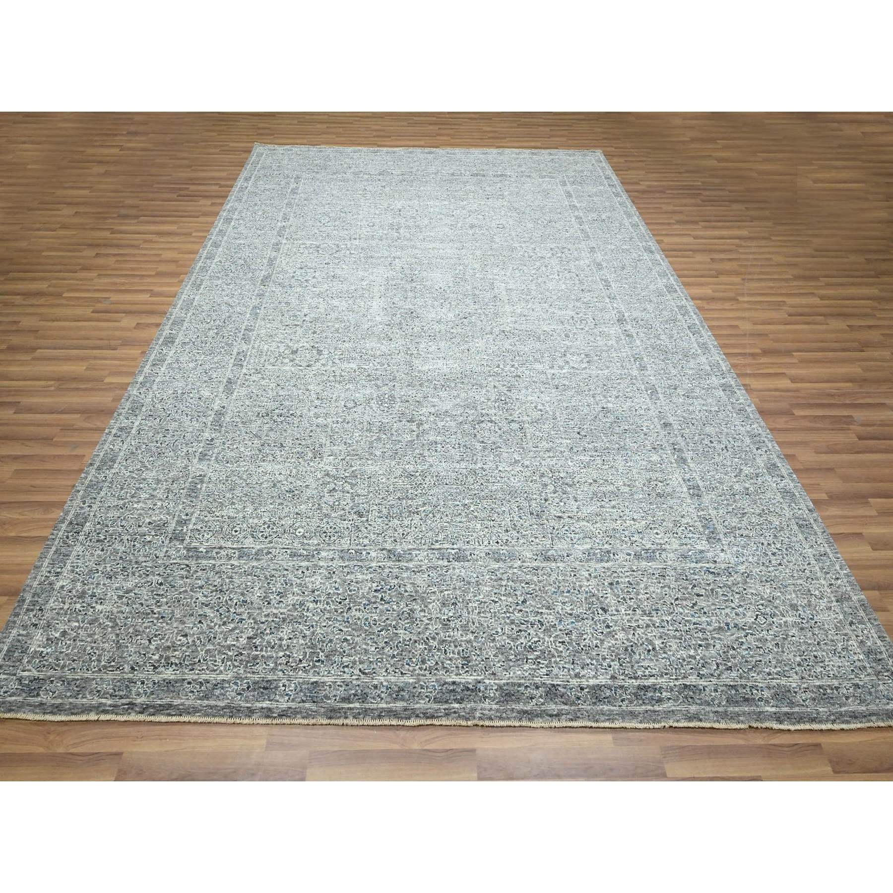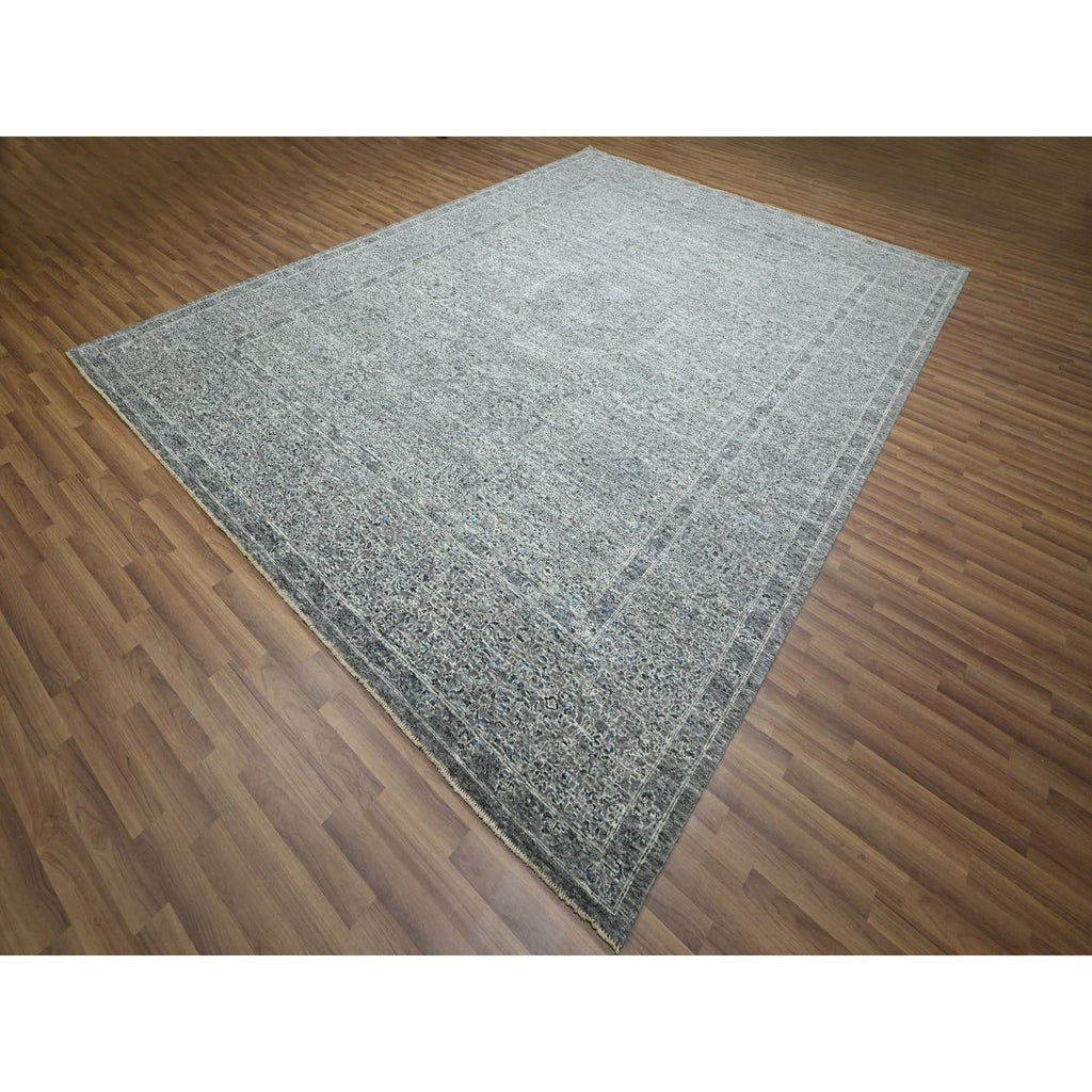 9'2"x12'1" Neutral Gray, Pre Historic 14th Century Influence Mamluk Design, Natural Dyes, Hand Knotted, Pure Wool, Oriental Rug FWR459246