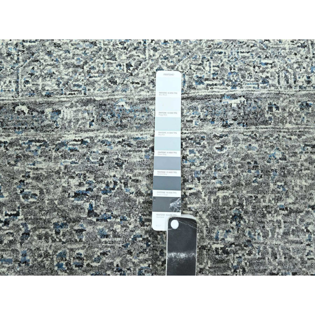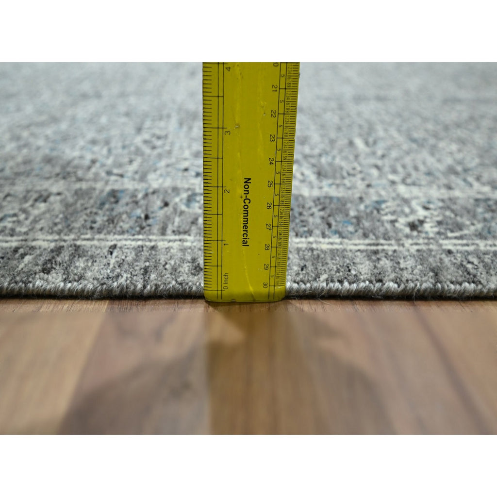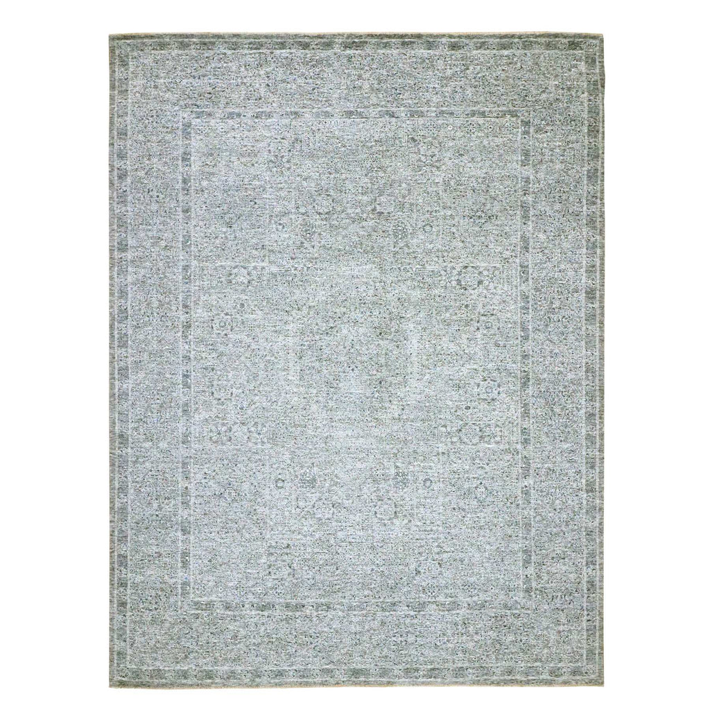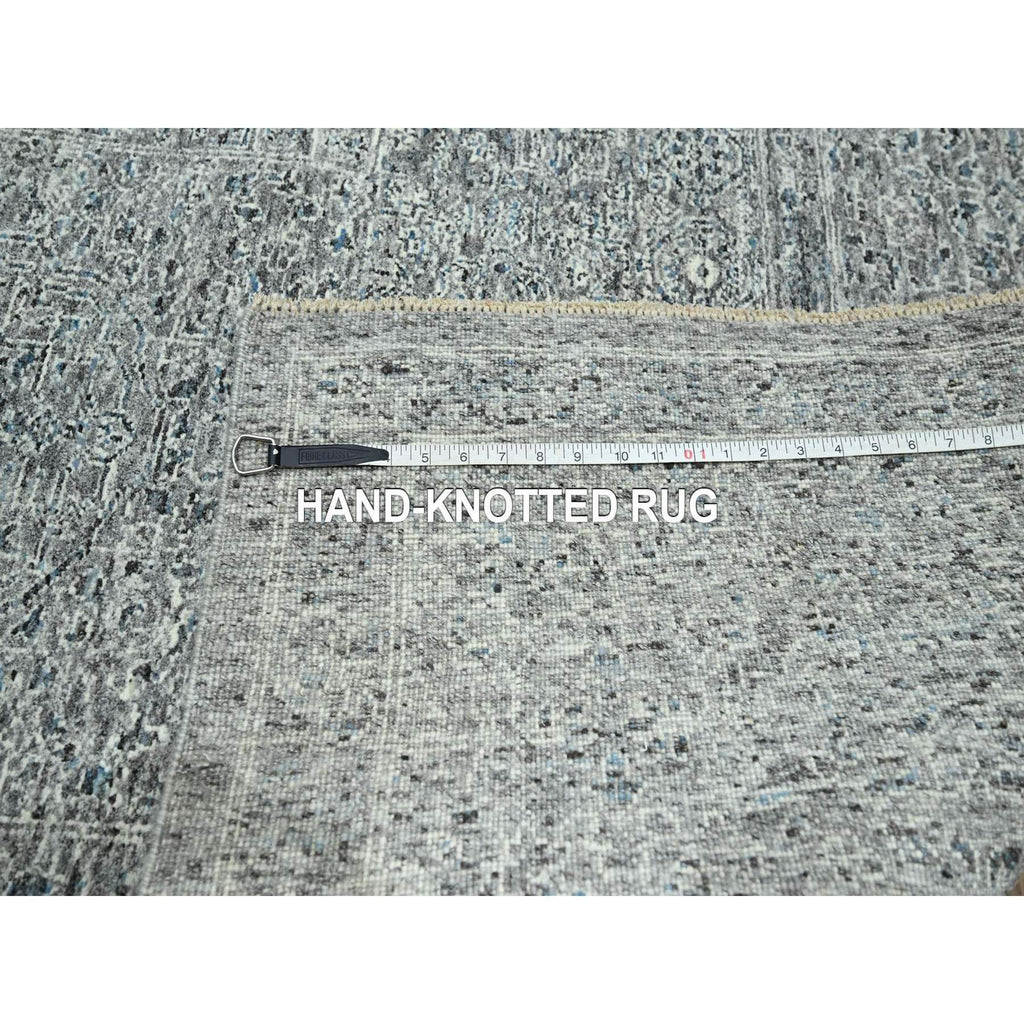 9'2"x12'1" Neutral Gray, Pre Historic 14th Century Influence Mamluk Design, Natural Dyes, Hand Knotted, Pure Wool, Oriental Rug FWR459246