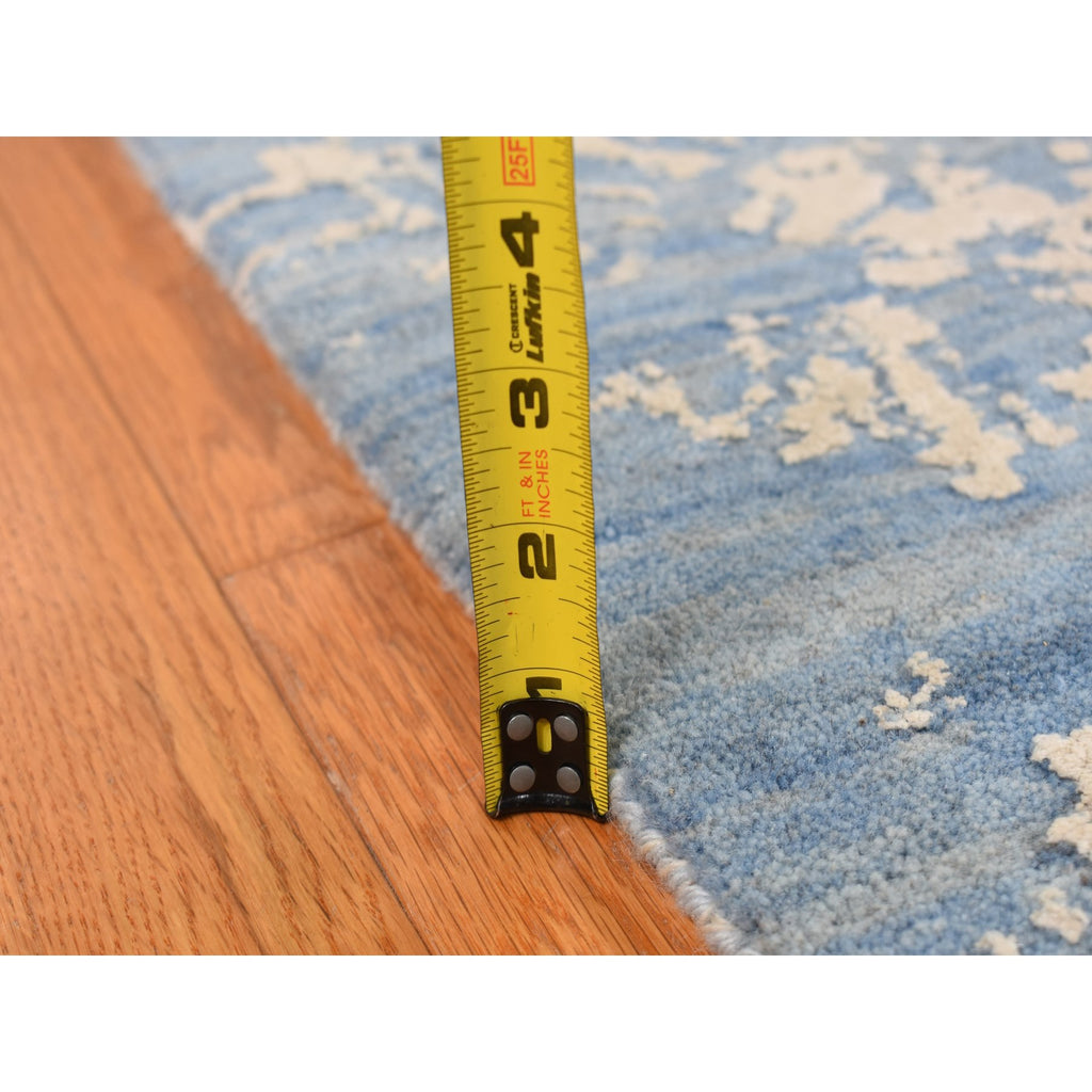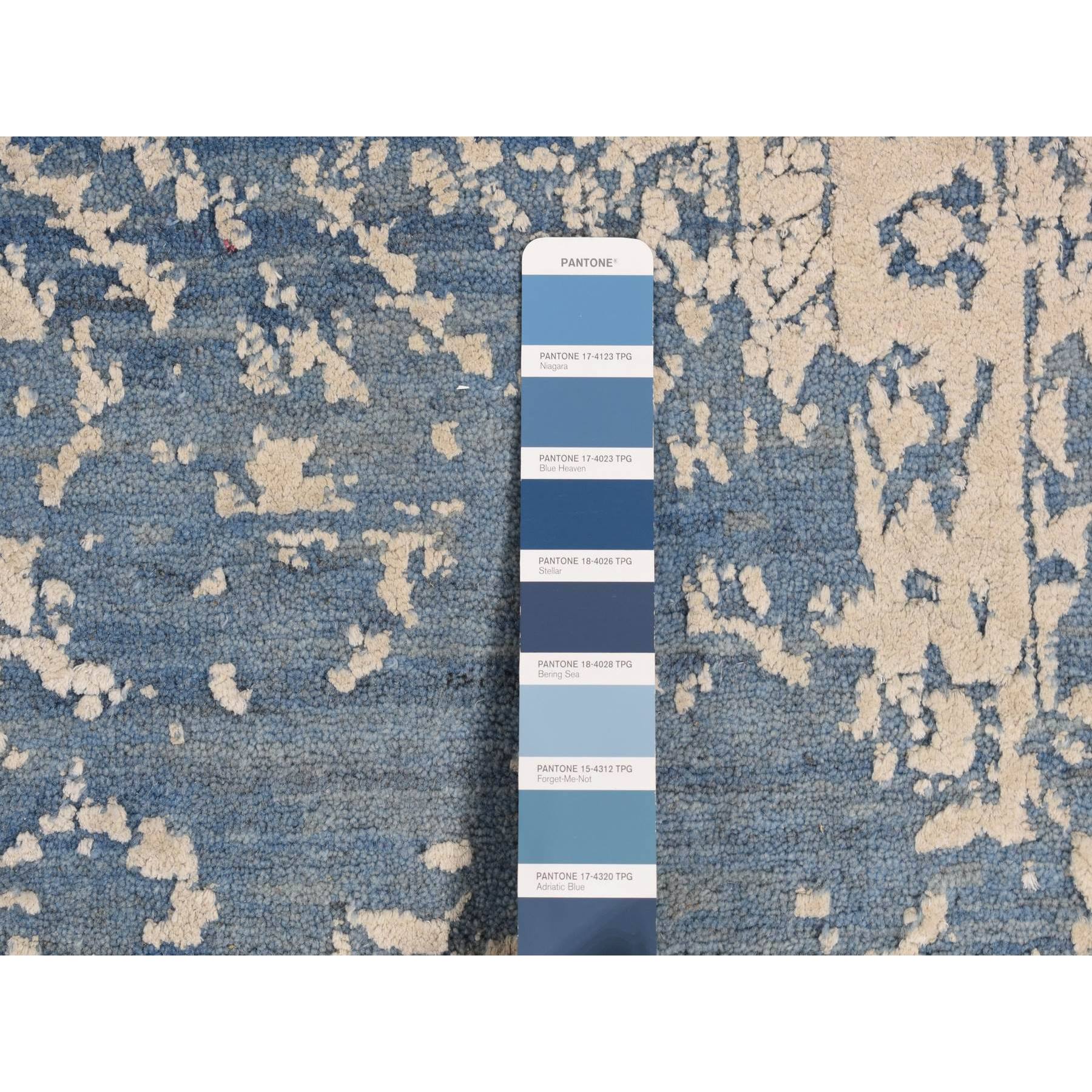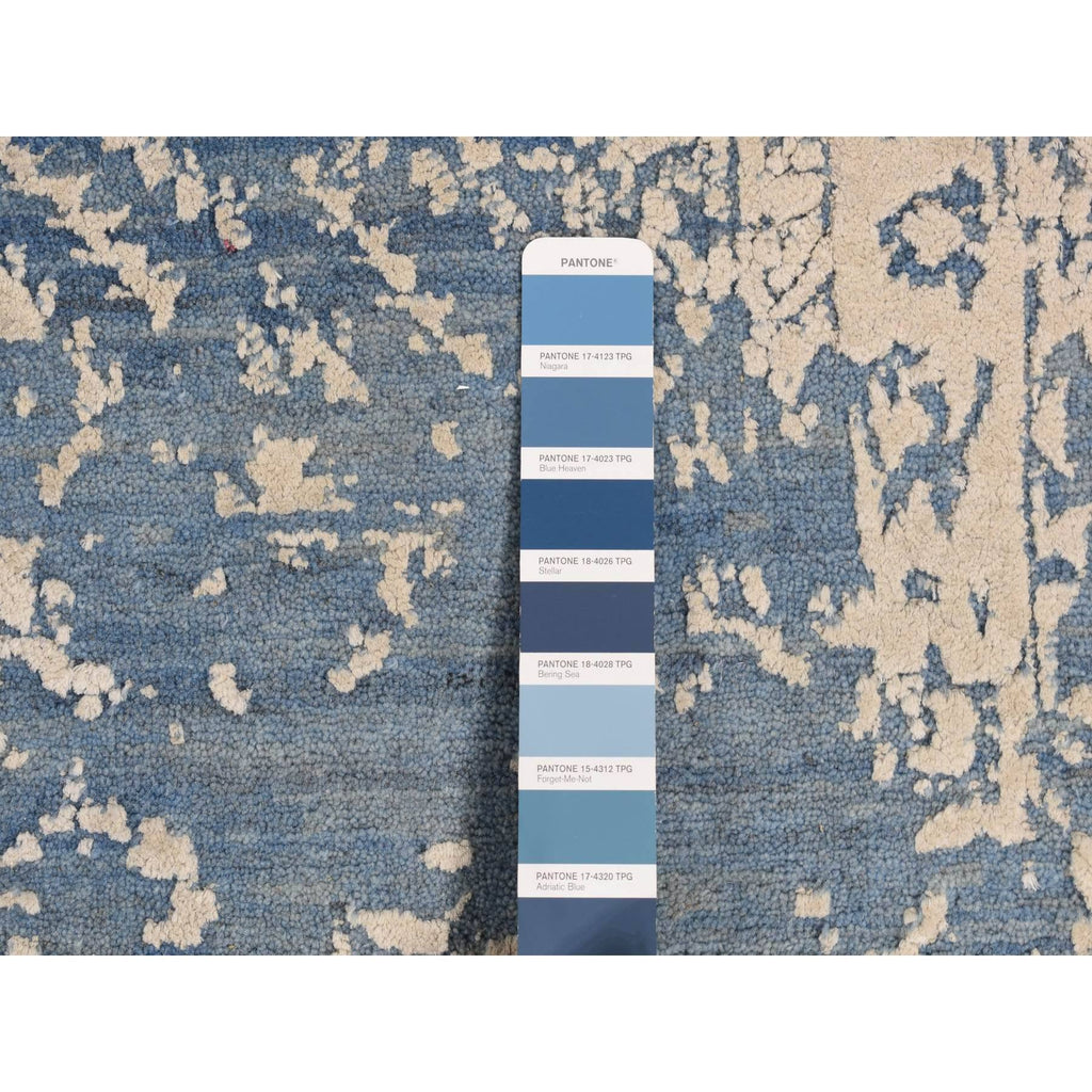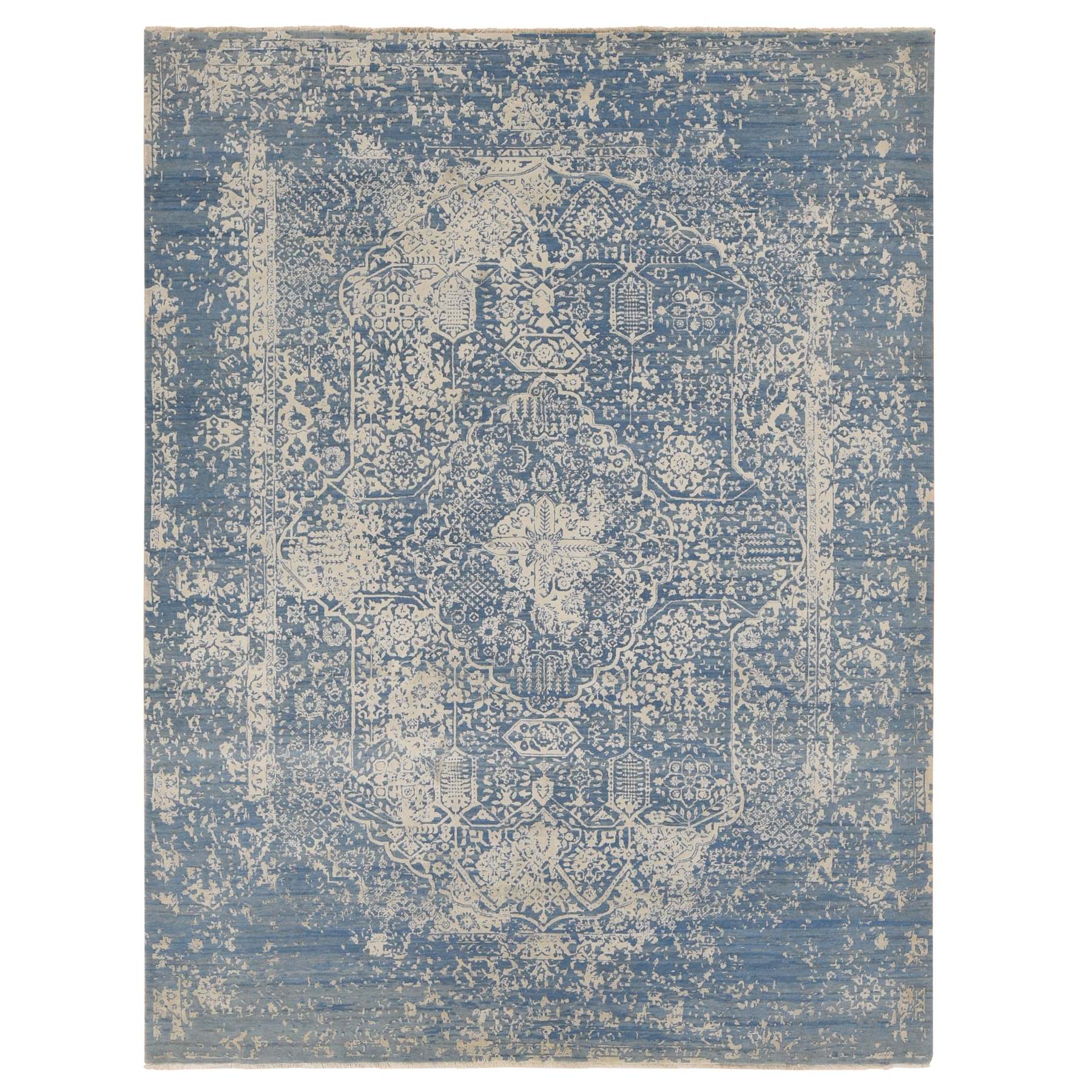 9'2"x12'1" Steel Blue, Broken And Erased Persian Design, Wool And Pure Silk, Hand Knotted, Oriental Rug FWR522378