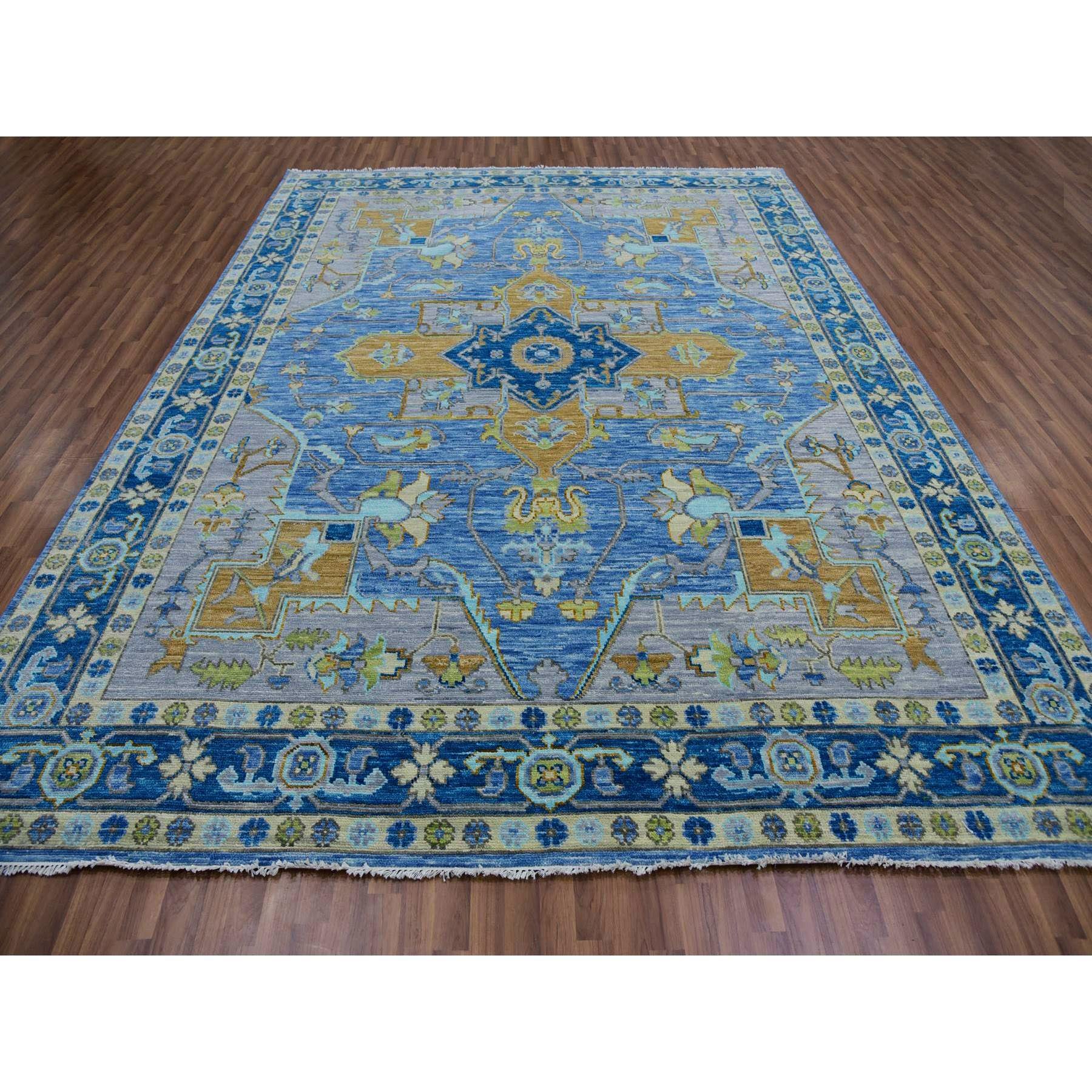 9'2"x12'2" Denim Blue, Heriz Design, Soft To The Touch, Hand Knotted, 100% Wool, Vegetable Dyes, Oriental Rug FWR479556