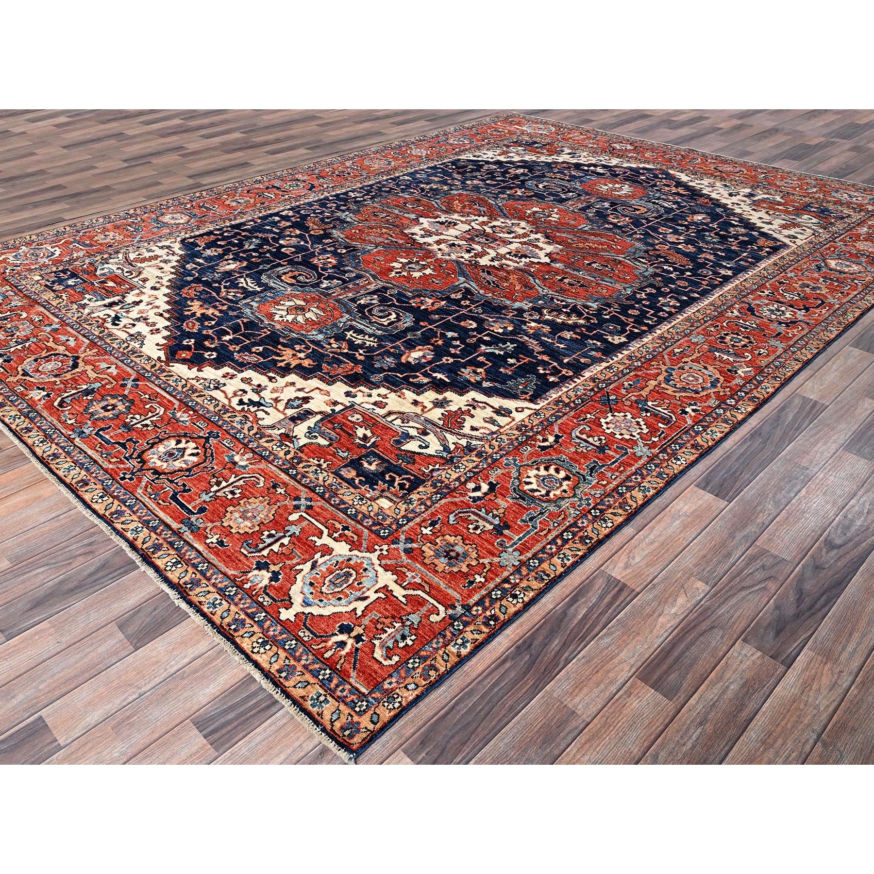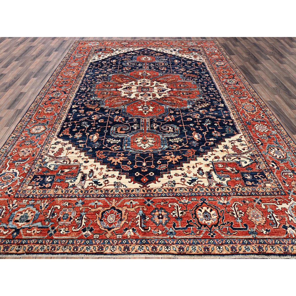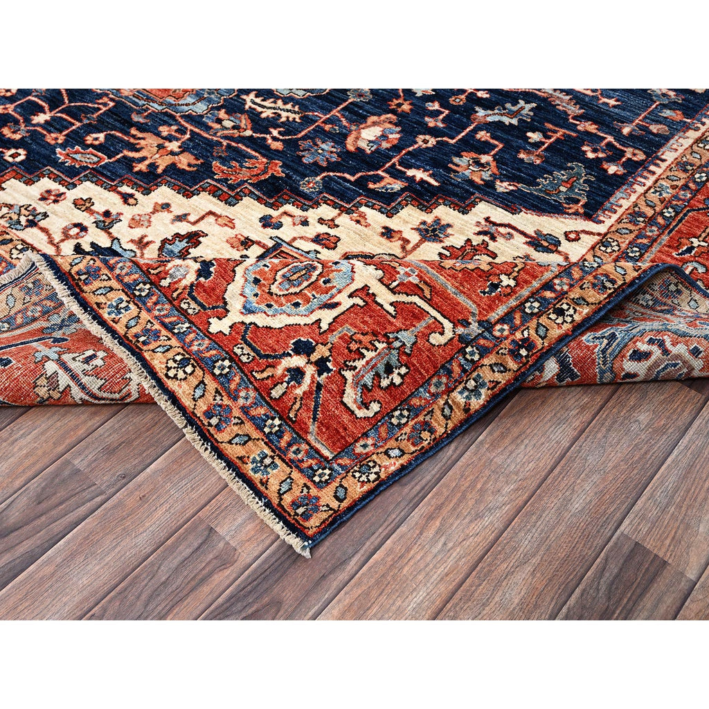 9'2"x12'8" Midnight Blue, Aryana Grade, Serapi Heriz With Flower Medallion Design, Vegetable Dyes, Hand Knotted, High Mountain Wool, Soft Pile, Densely Woven, Oriental Rug FWR6282