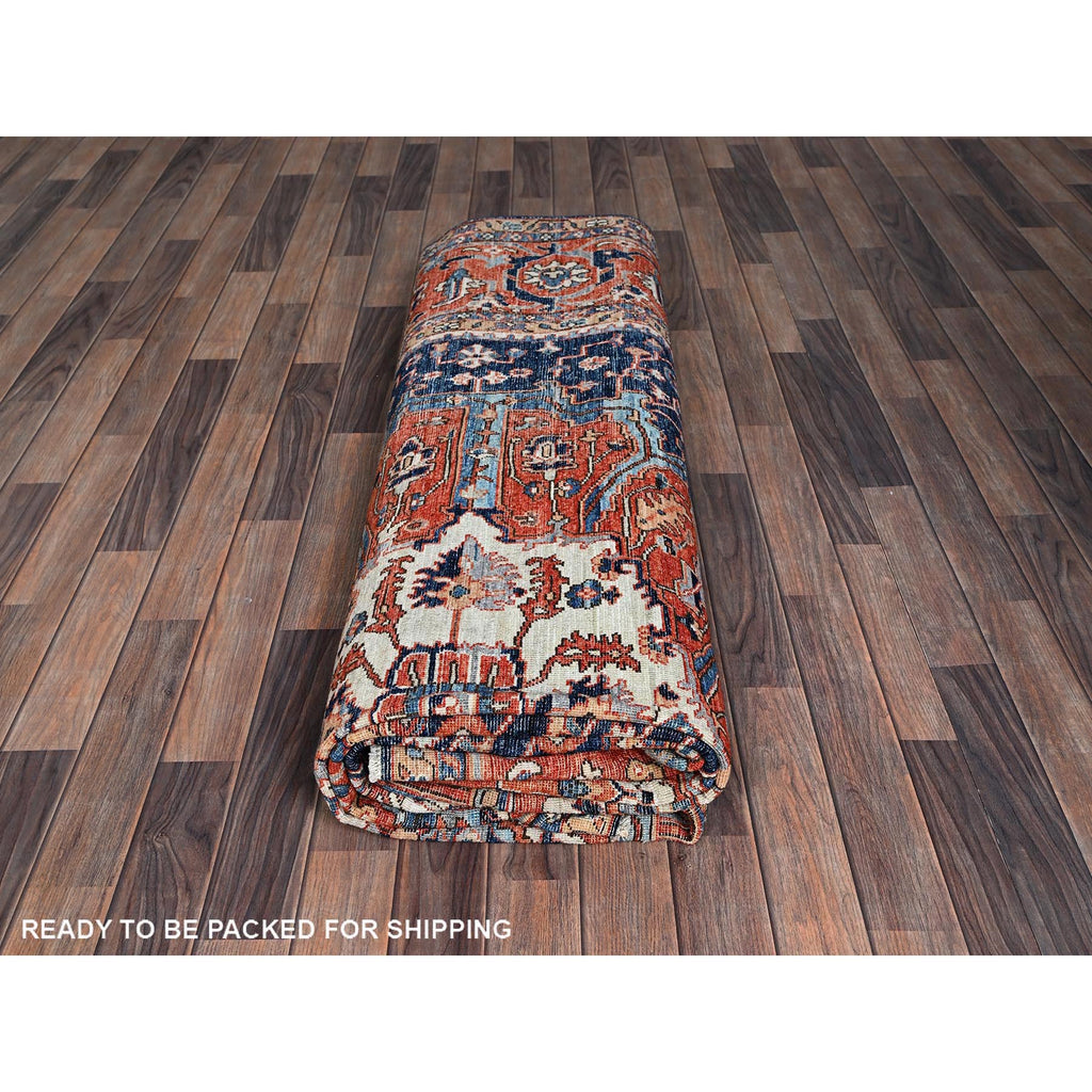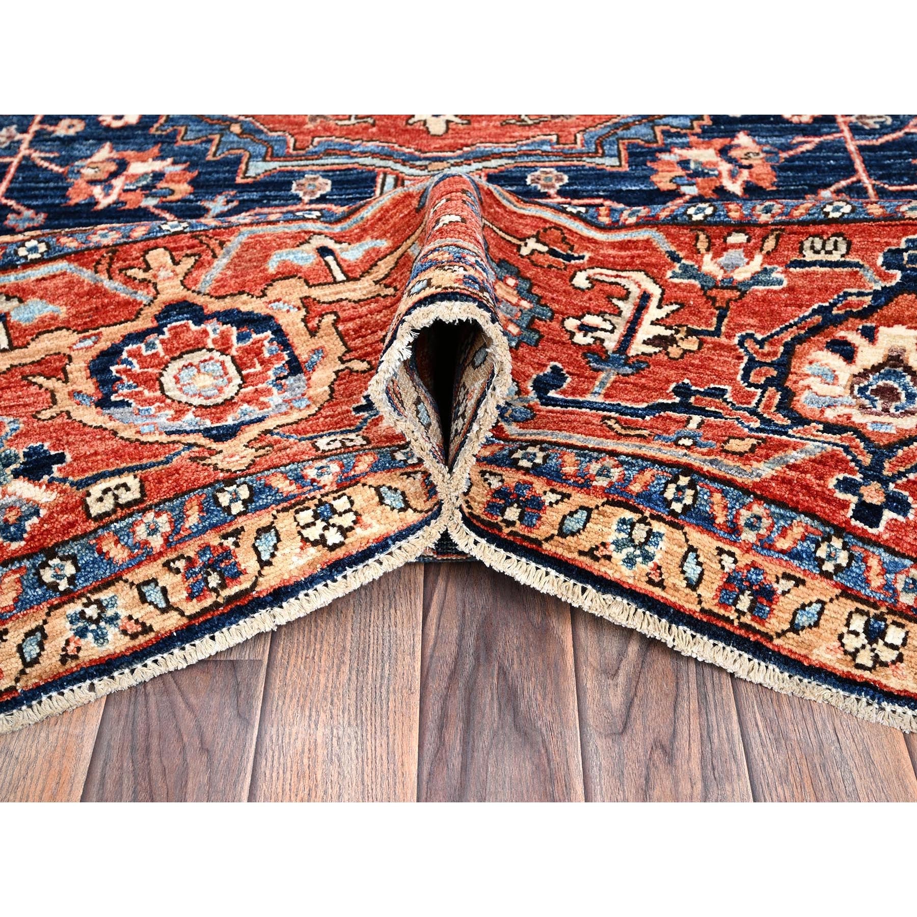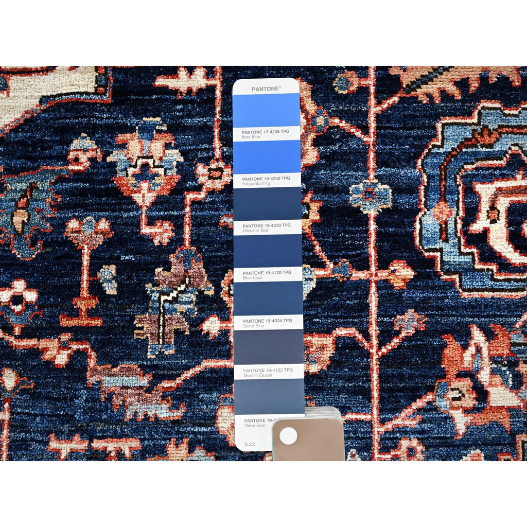 9'2"x12'8" Midnight Blue, Aryana Grade, Serapi Heriz With Flower Medallion Design, Vegetable Dyes, Hand Knotted, High Mountain Wool, Soft Pile, Densely Woven, Oriental Rug FWR6282