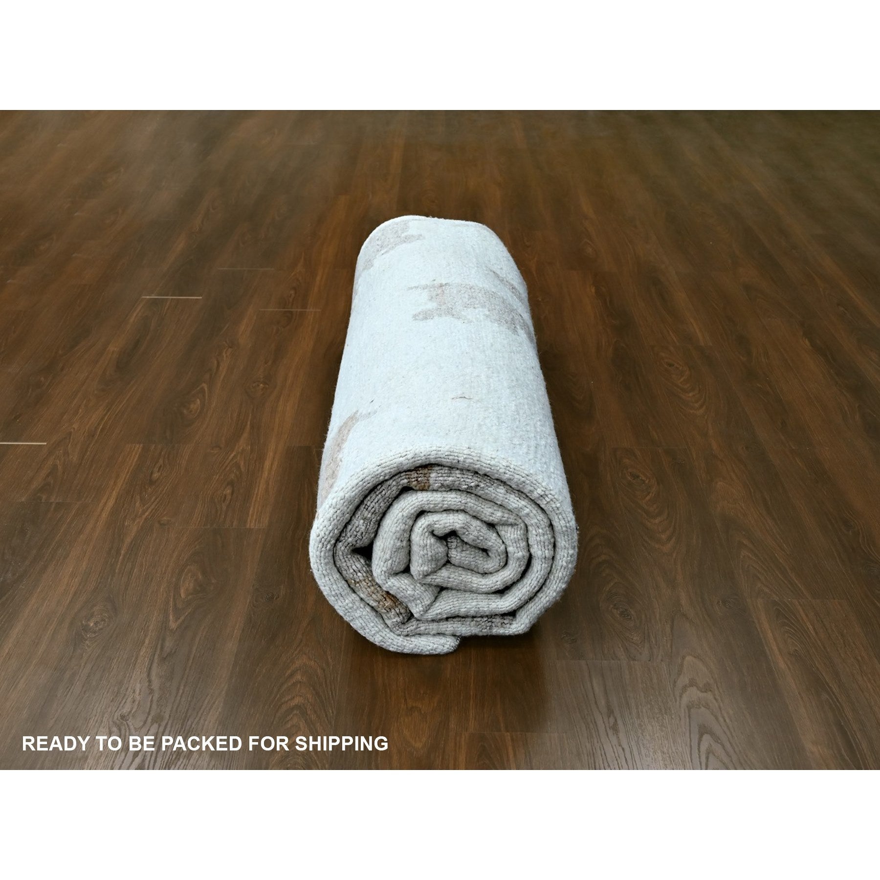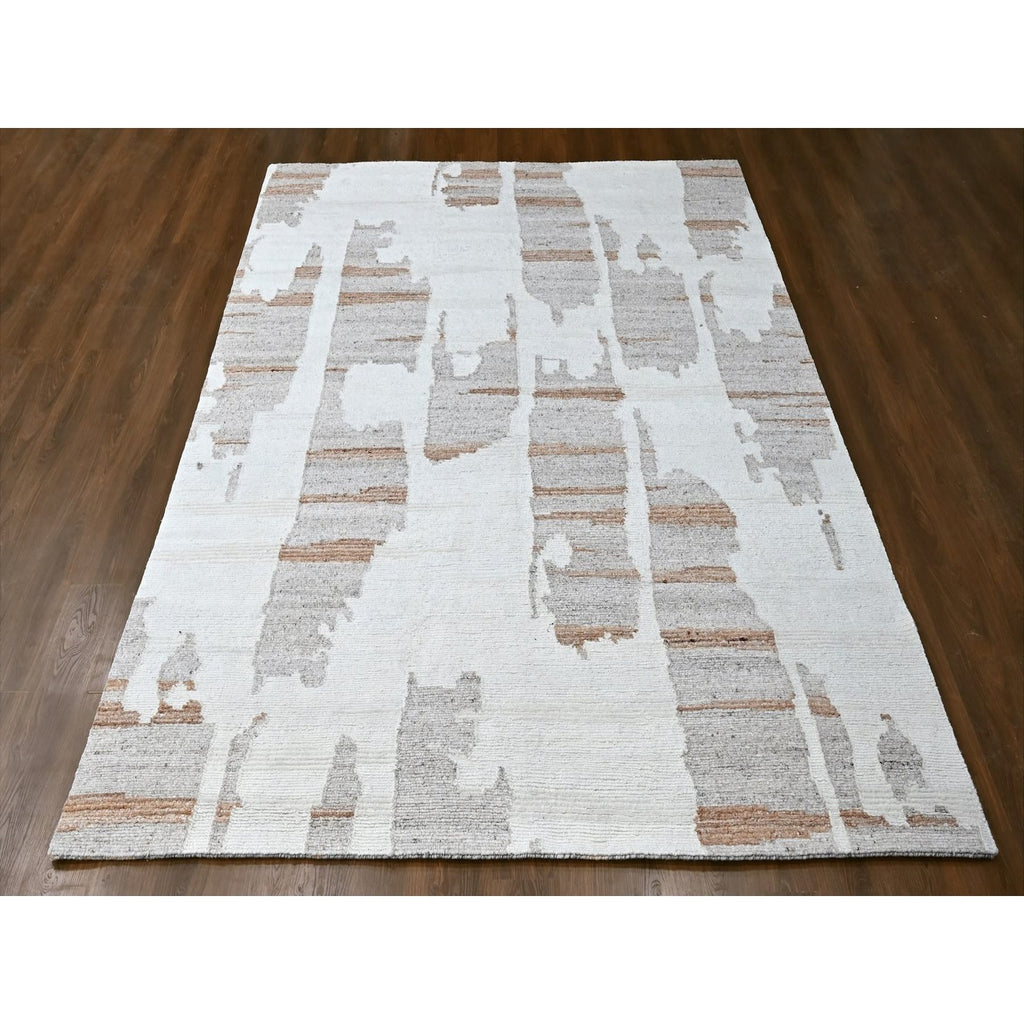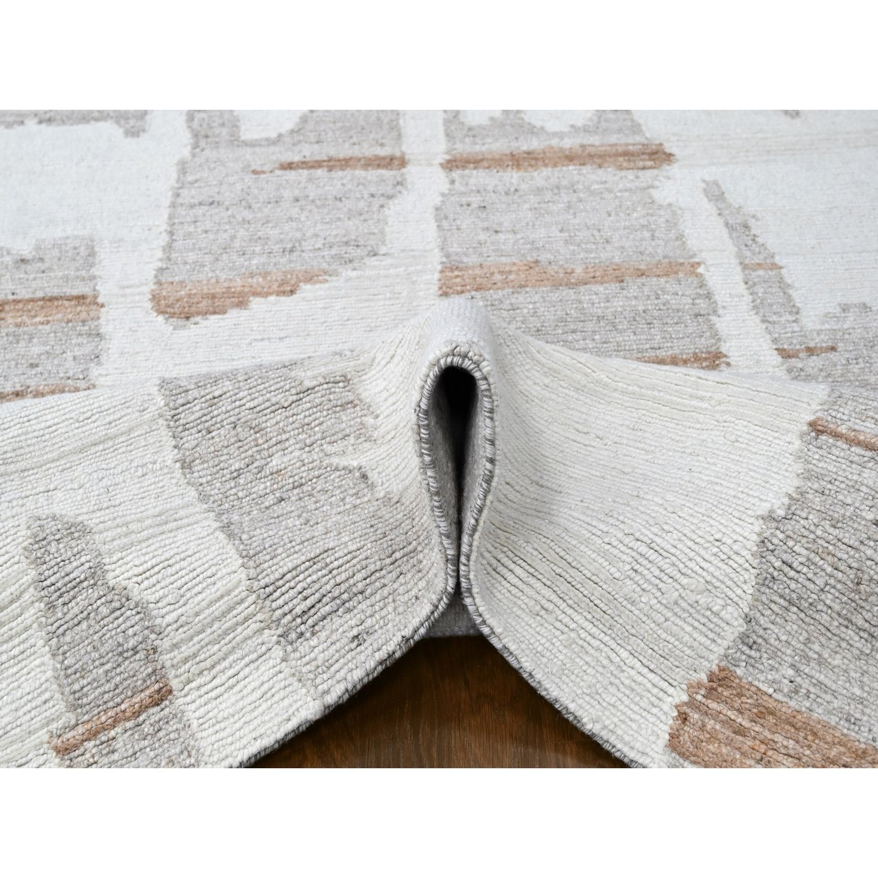 9'2"x12' Bone White, Hand Knotted, Minimalist Swedish Design, 100% Wool, Oriental Rug FWR62004