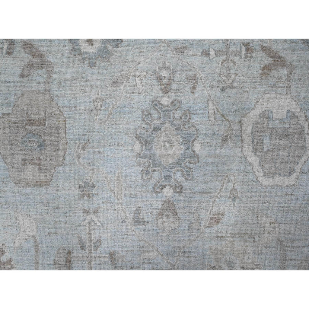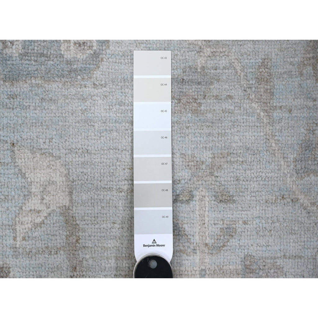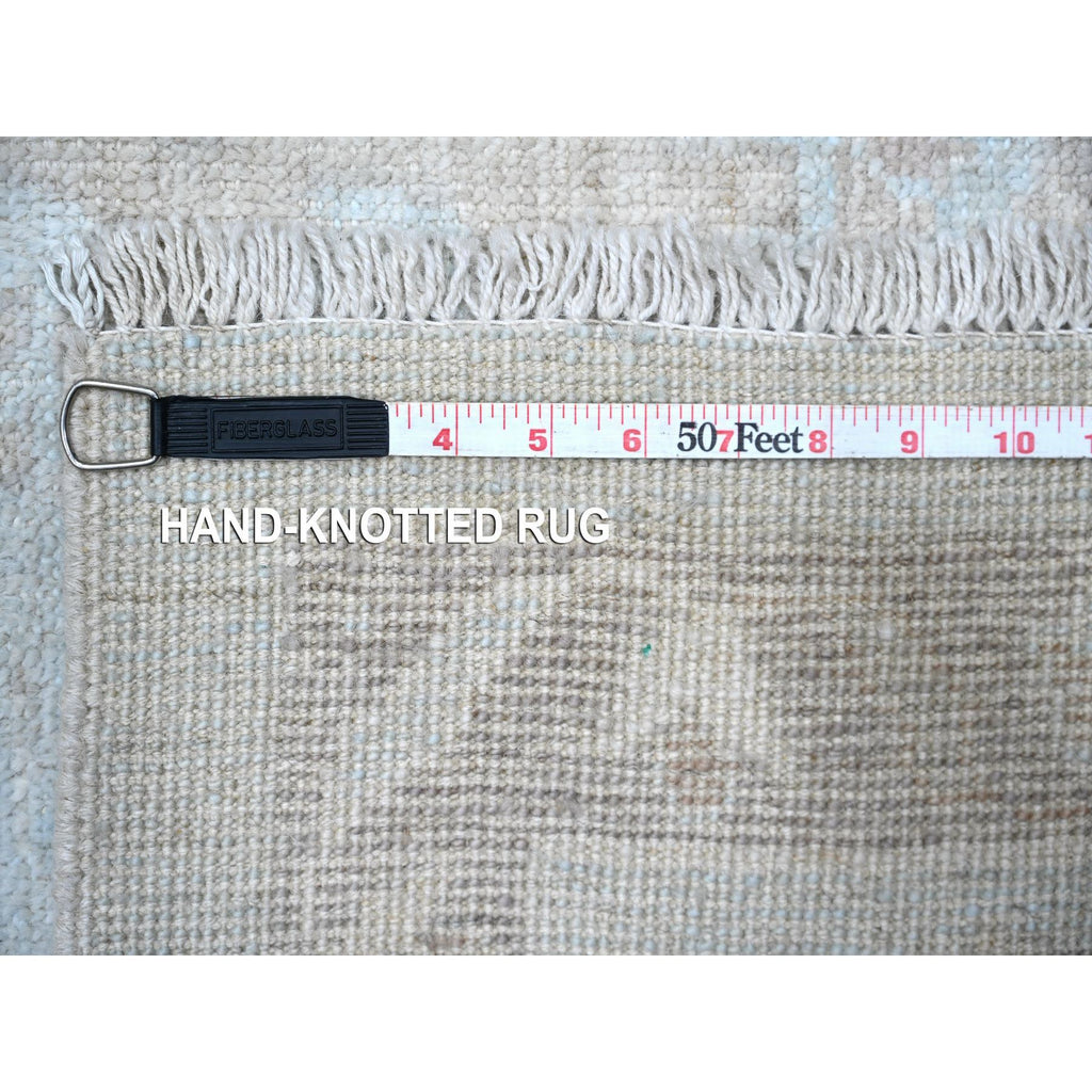 9'2"x12' Cloud Gray, Vegetable Dyes, Wool Weft, Hand Knotted, Faded Out Angora Oushak, All Over Tribal Elements, Oriental Rug FWR532014