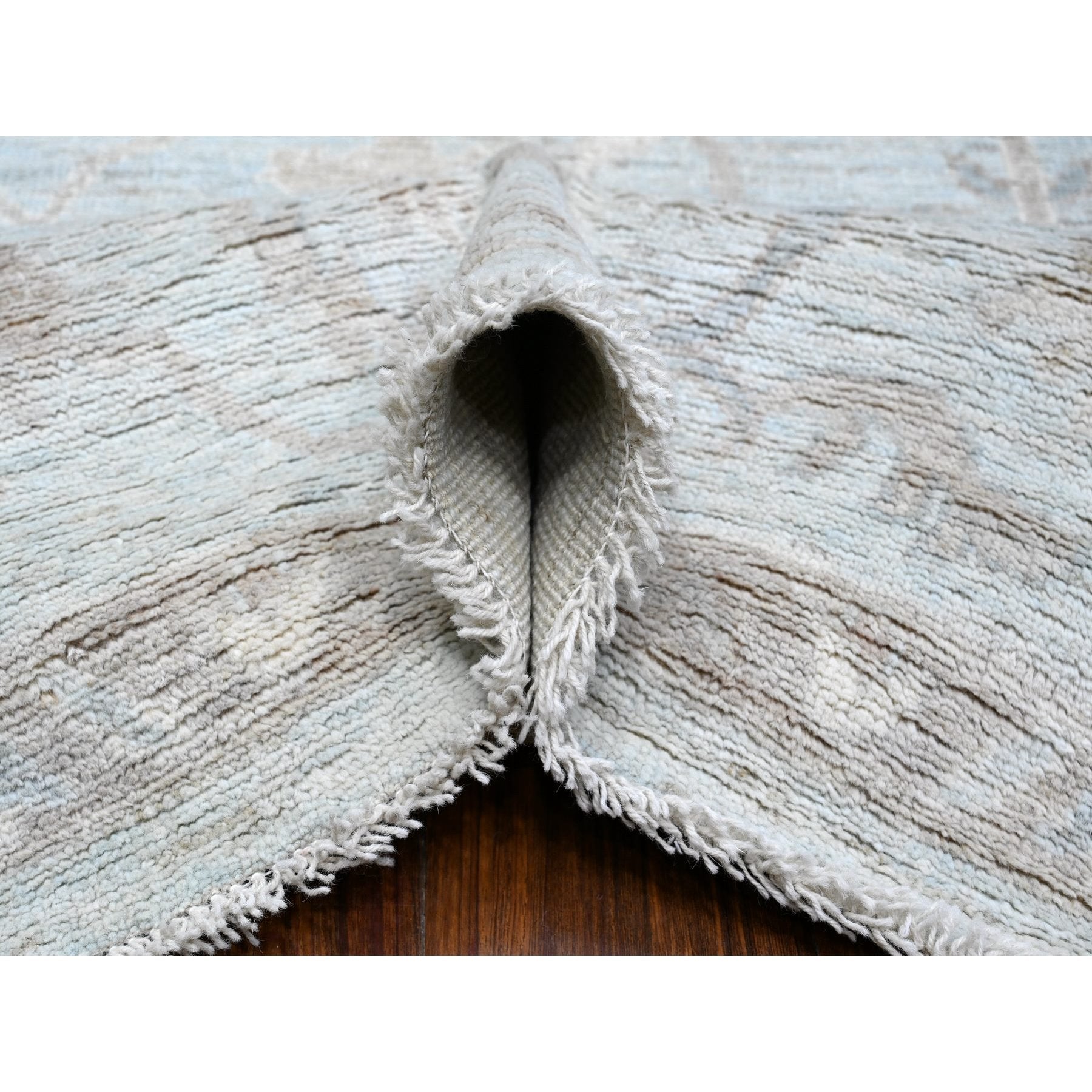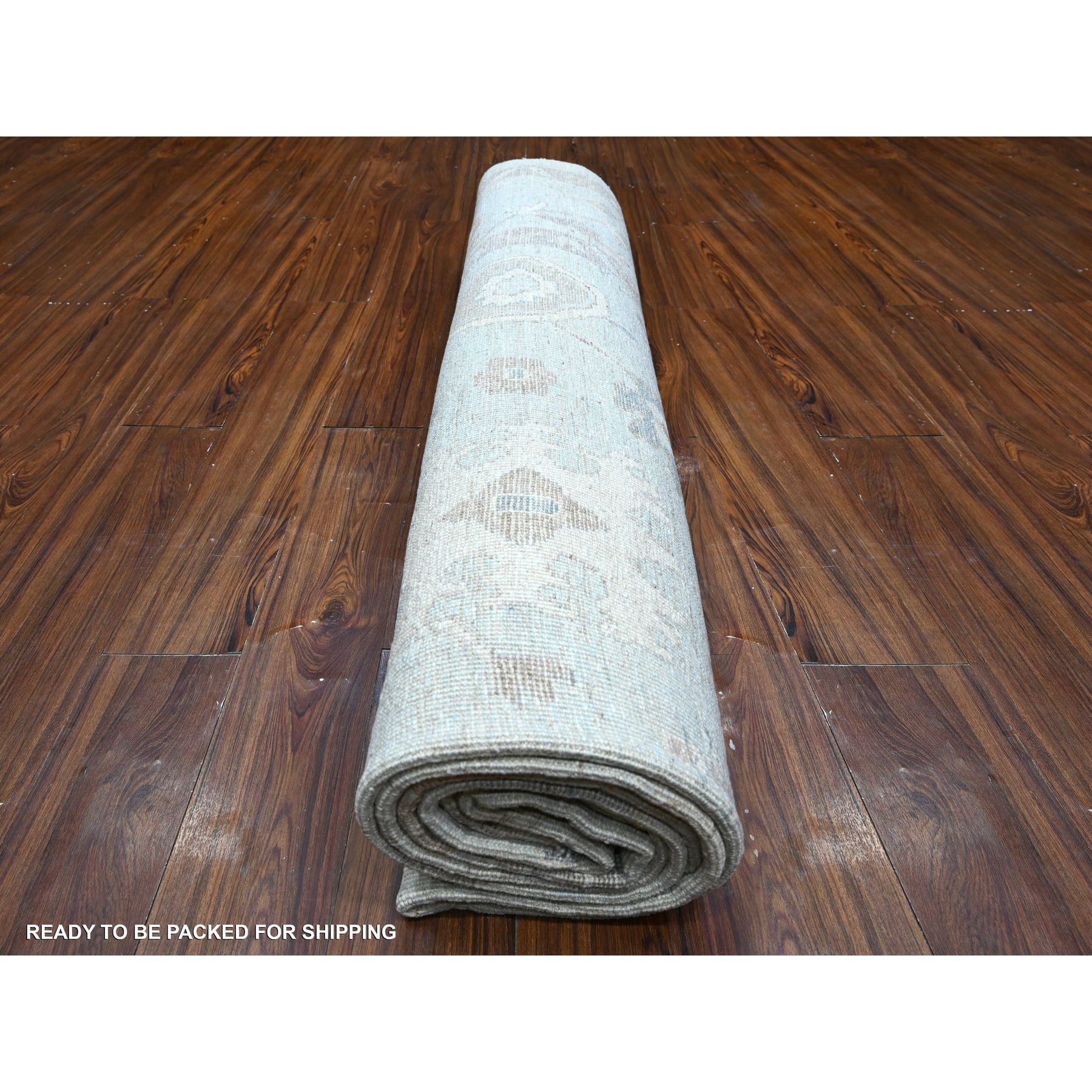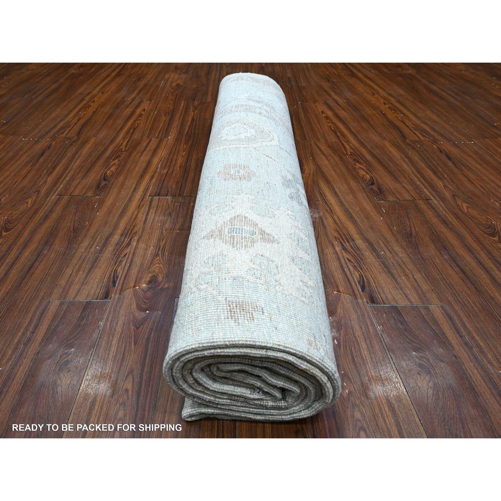 9'2"x12' Cloud Gray, Vegetable Dyes, Wool Weft, Hand Knotted, Faded Out Angora Oushak, All Over Tribal Elements, Oriental Rug FWR532014