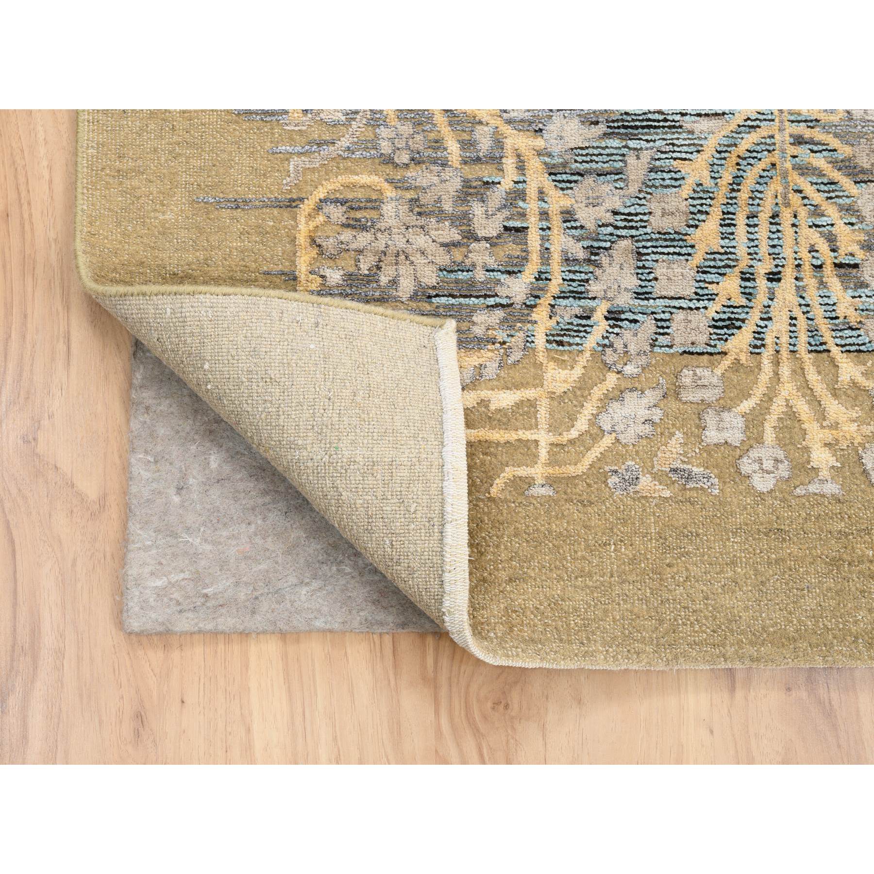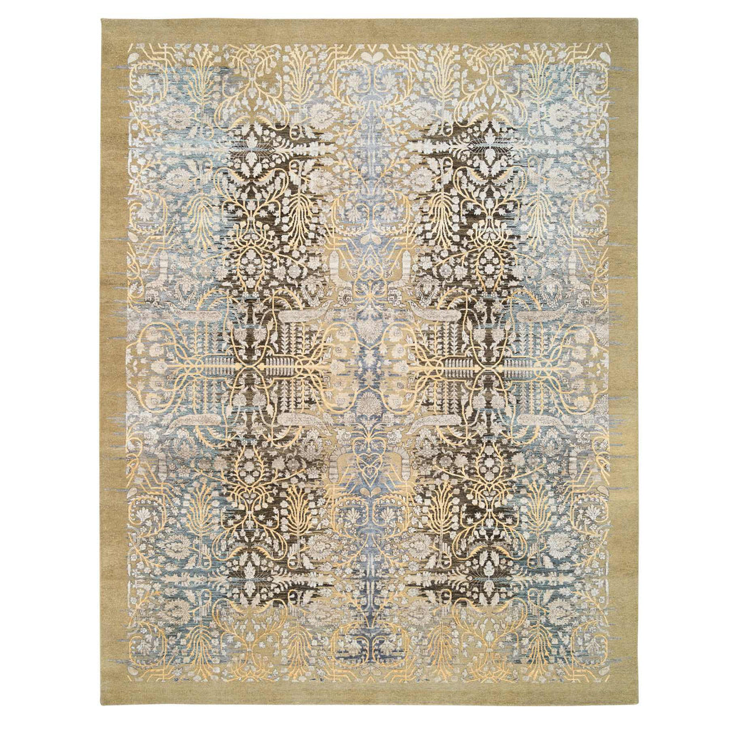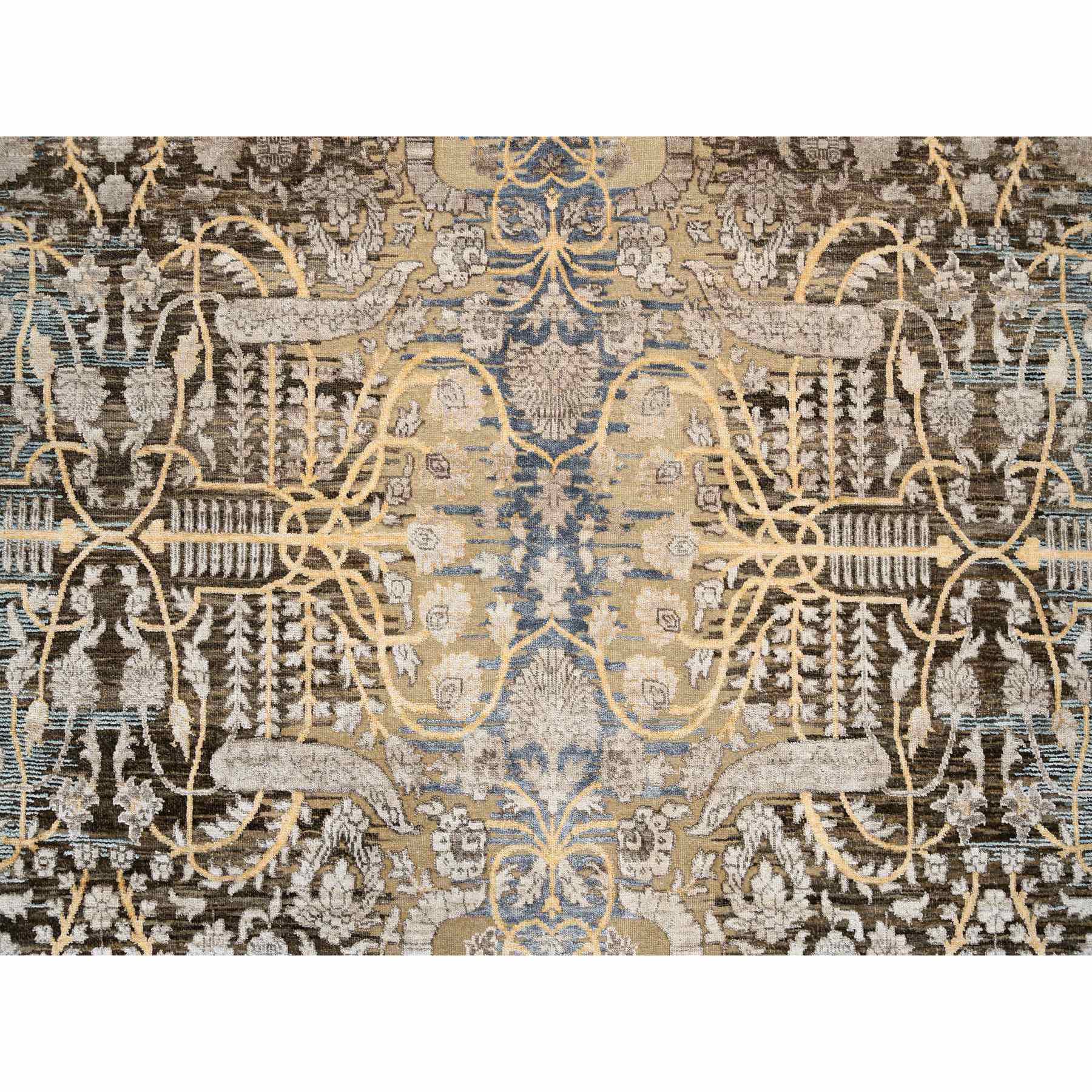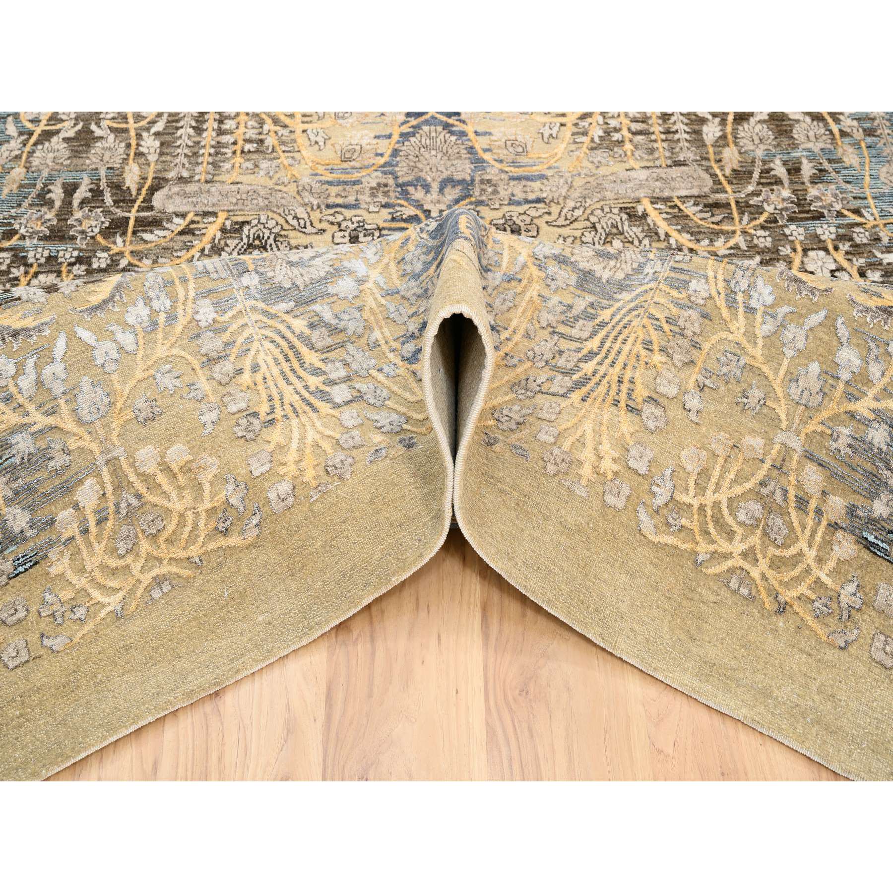 9'2"x12' Gold Brown, Silk With Textured Wool, Hand Knotted, Transitional Sarouk, Oriental Rug FWR382080
