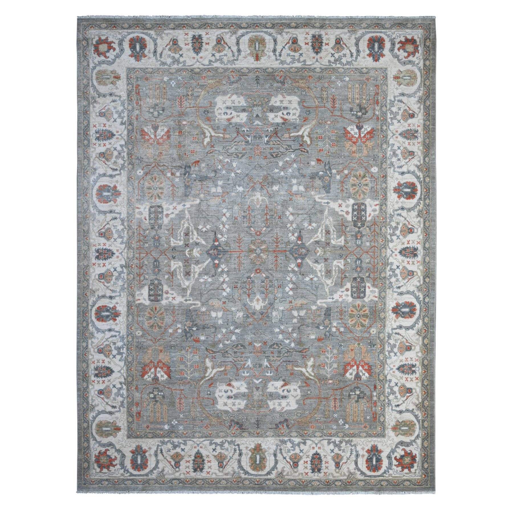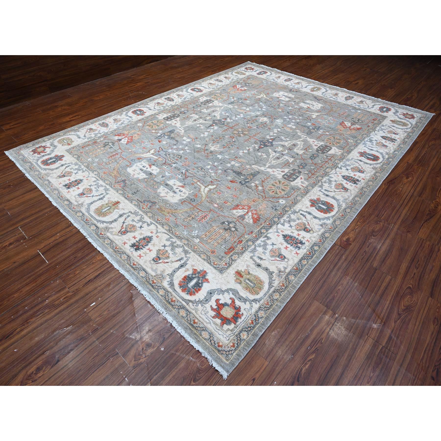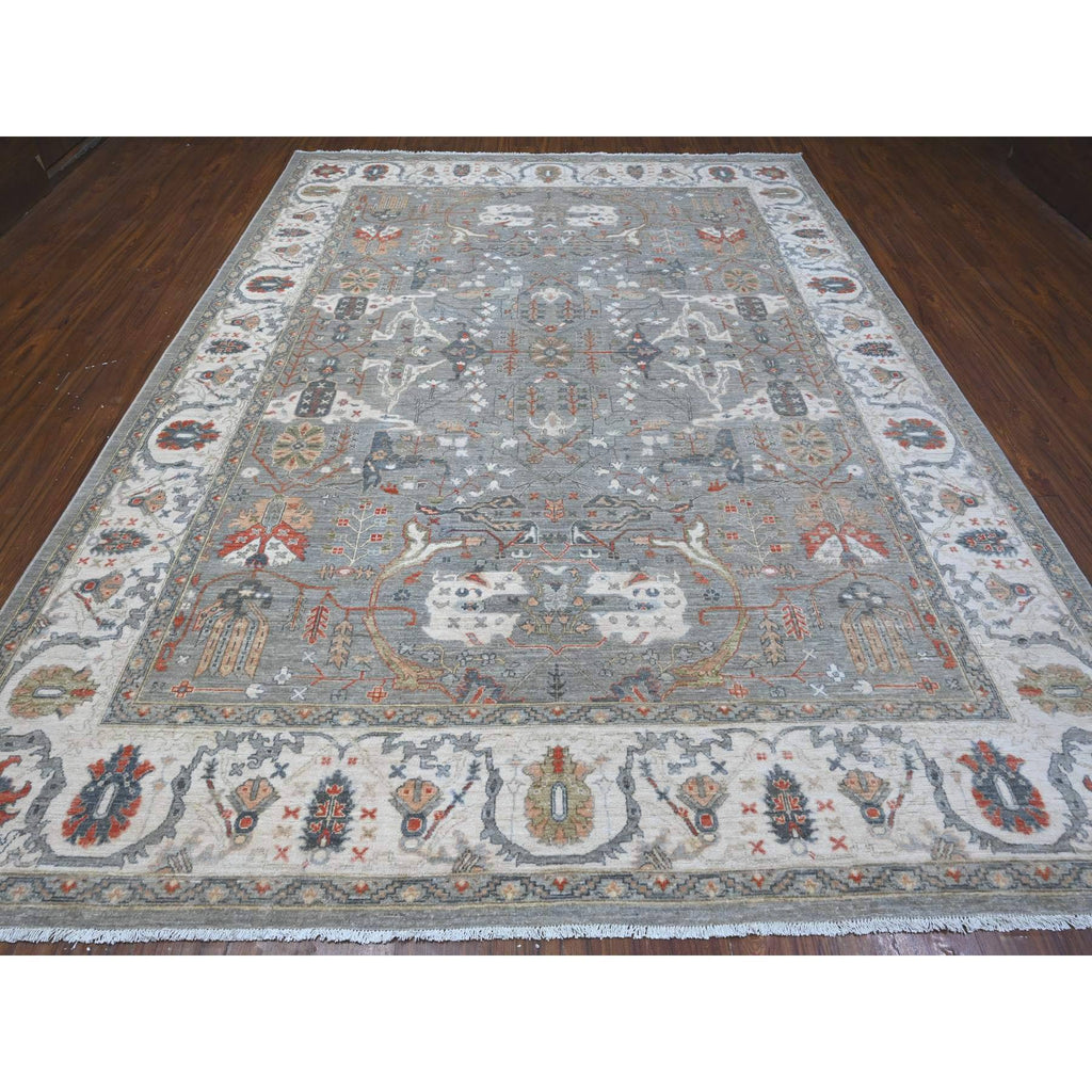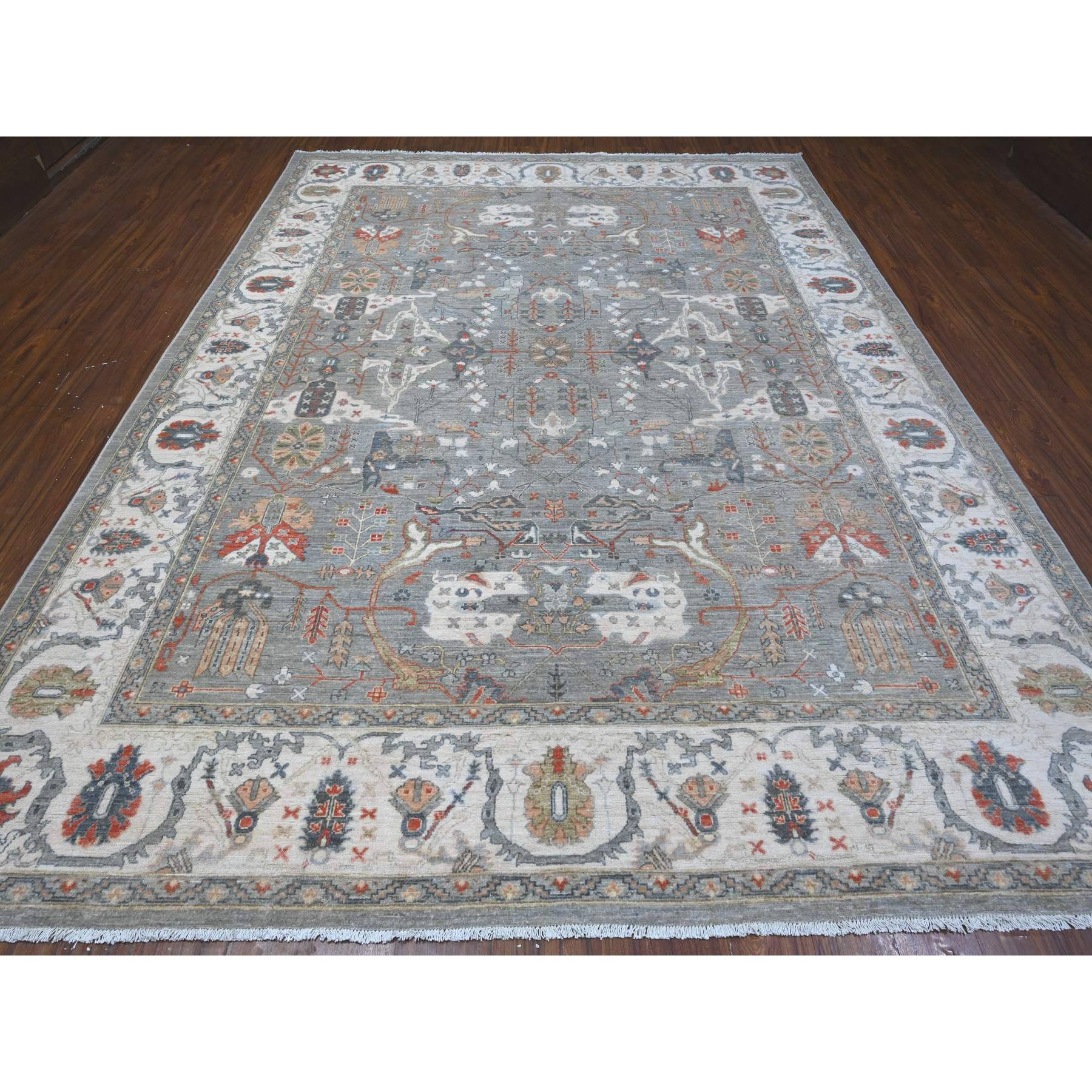 9'2"x12' Parma Gray, Fine Aryana Heriz All Over Design, Soft And Vibrant Wool, Natural Dyes, Peshawar Hand Knotted Oriental Rug FWR533730